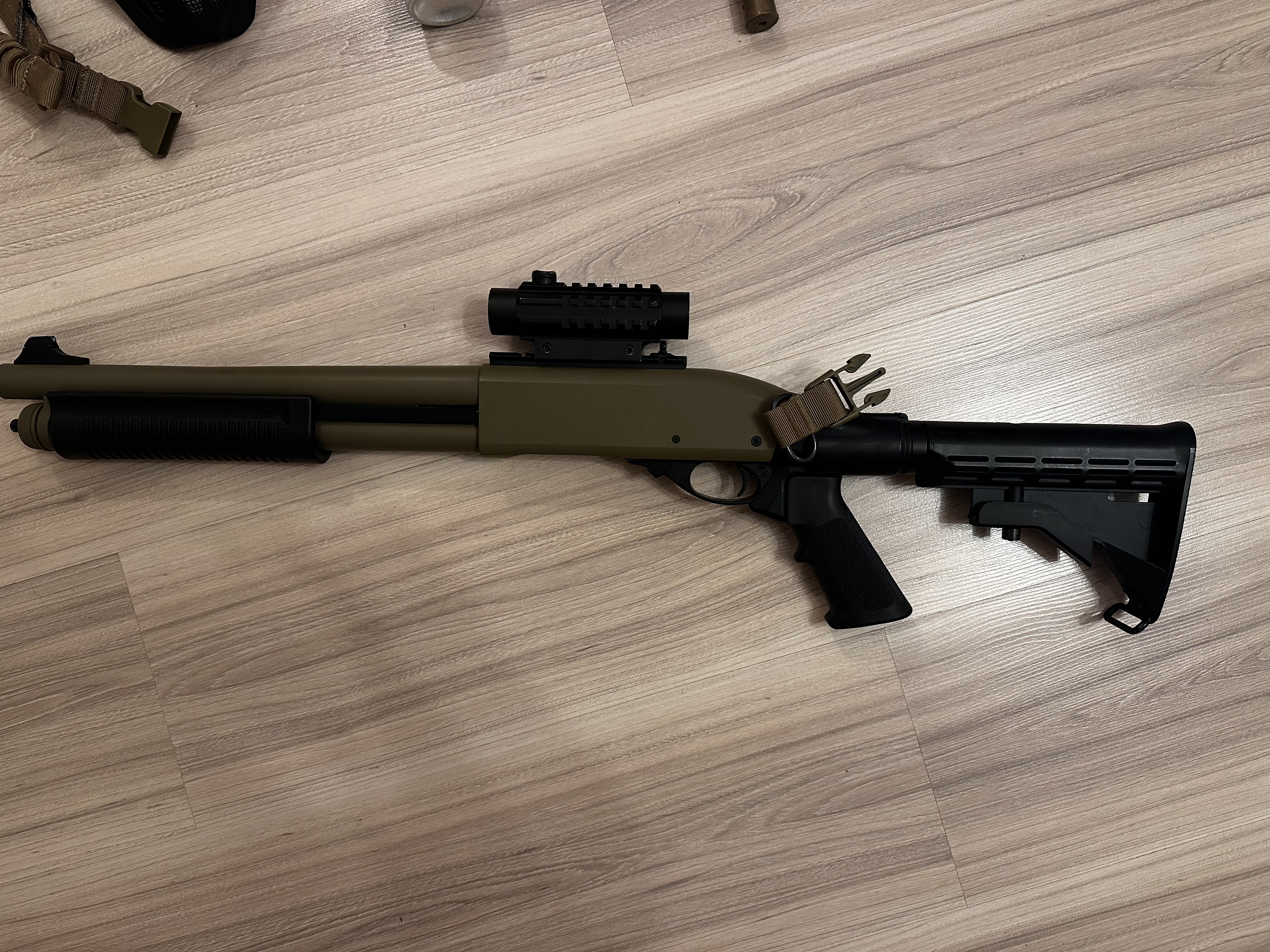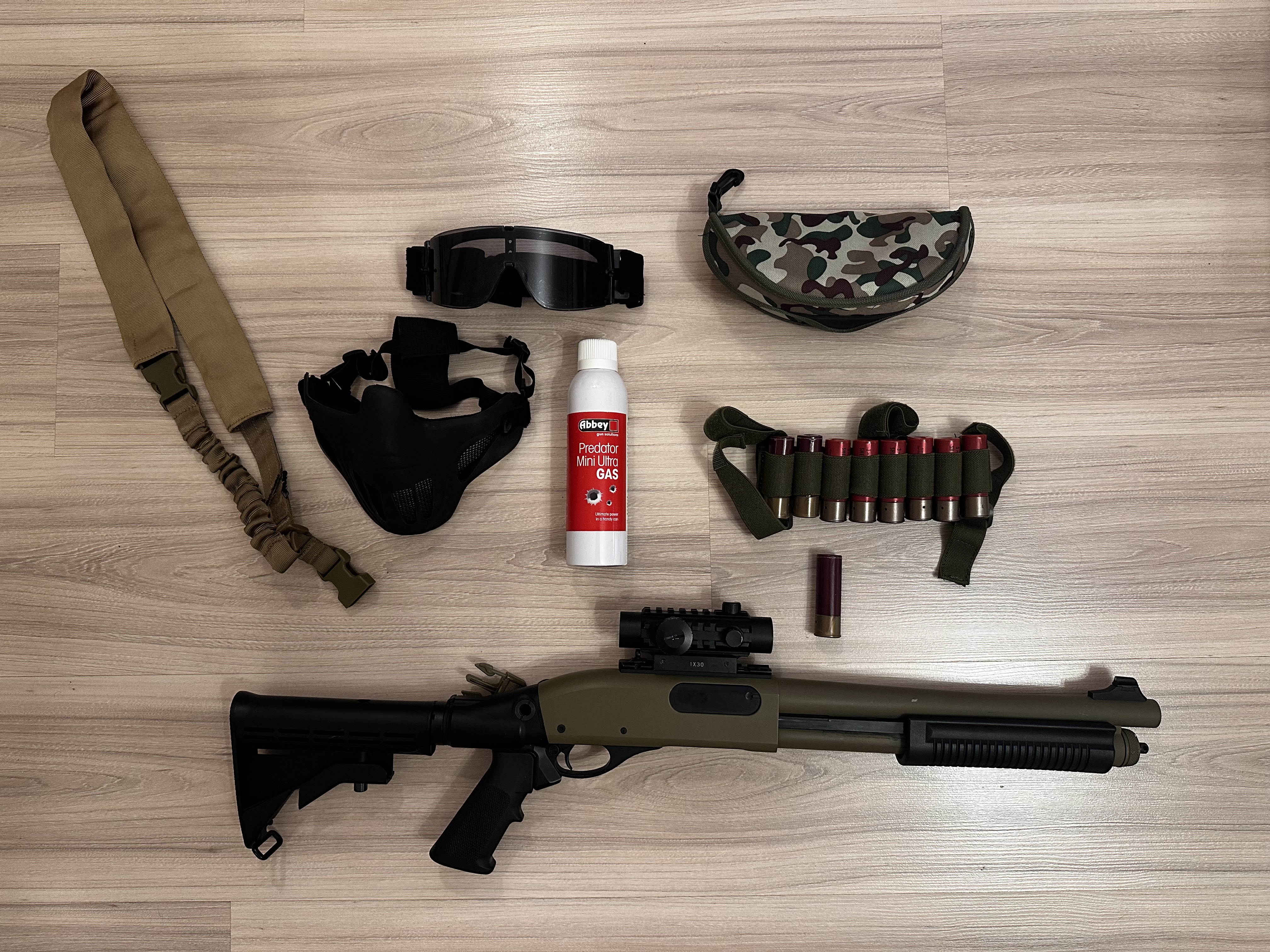 Na sprzedaż mam używaną strzelbę green Gas m8871 firmy Golden Eagle [przebieg: niecały 1000 kulek) Do zestawu dołączam: kolimator jak na zdj. + 9 shellsów + ładownice na przedramię na 8 shells, wycior, zawieszenie jednopunktowe + pas w kolorze coyote + maskę ochronna + google W kwestii ewentualnej dostawy mogę podwieźć w okolicy Piaseczna, Warszawy Dla zdecydowanych cena do negocjacji. https://www.taiwangun.com/pl/strzelba-green-gaz/strzelba-m8871-zasilana-green-gazem-black-golden-eagle