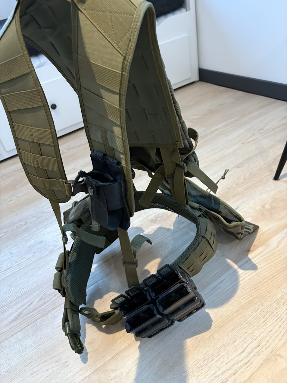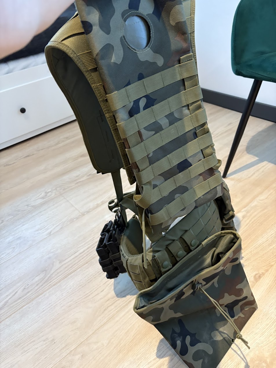 W skład zestawu wchodzi: Pas Modułowy Helikon Competition Modular Belt Sleeve - Olive Green - Rozmiar : M Pas Taktyczny Zewnetrzny Helikon Defender Security Belt - Olive Green - Rozmiar : L/XL oraz szelki Szelki oporządzeniowe - Zielone Ładownica cargo z kieszonką - wz.93 pantera leśna Podwójna ładownica pistoletowa - wz.93 Pantera leśna Torba zrzutowa na magazynki - wz.93 Pantera leśna Pokrowiec z wkładem hydracyjnym - wz.93 Całość w nowości wyniesie ok 600 PLN, zestaw brał udział w jednej strzelance. Odkąd mam dzieciaki sprzęt leży, sprzedaję z bólem serca.
