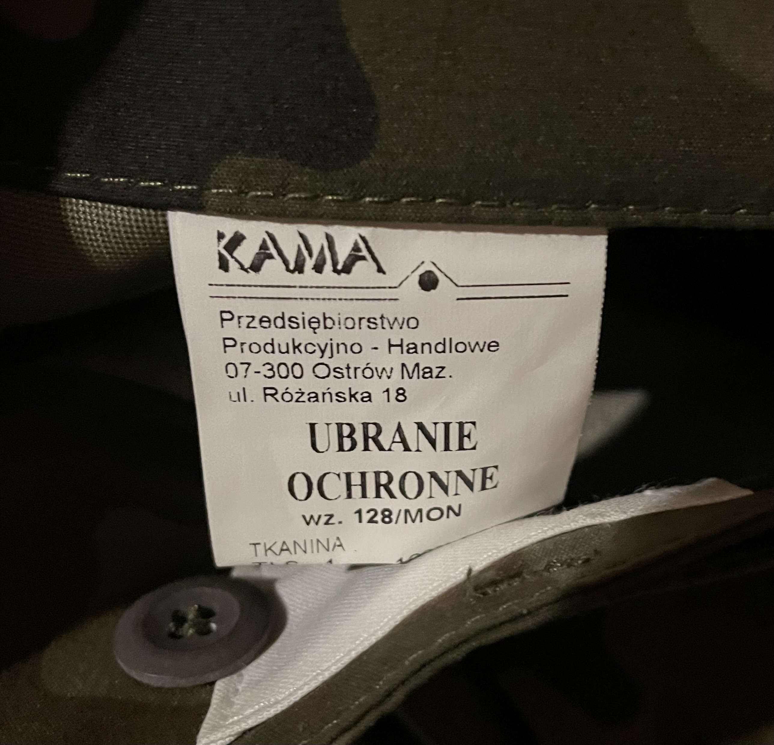 Nowe spodnie ubrania ochronnego wz.128/Mon Rozmiar 90/166 Producent Kama Rok produkcji 05/2008r Wymiary zmierzone Pas 41-49cm x2 spodnie mają ściągacze na rzep i wszytą gumę w pasie Długość całkowita 102cm Długość nogawki od kroku 70cm Możliwa wysyłka Olx https://m.olx.pl/1041742839/?bs=olx_pro_listing