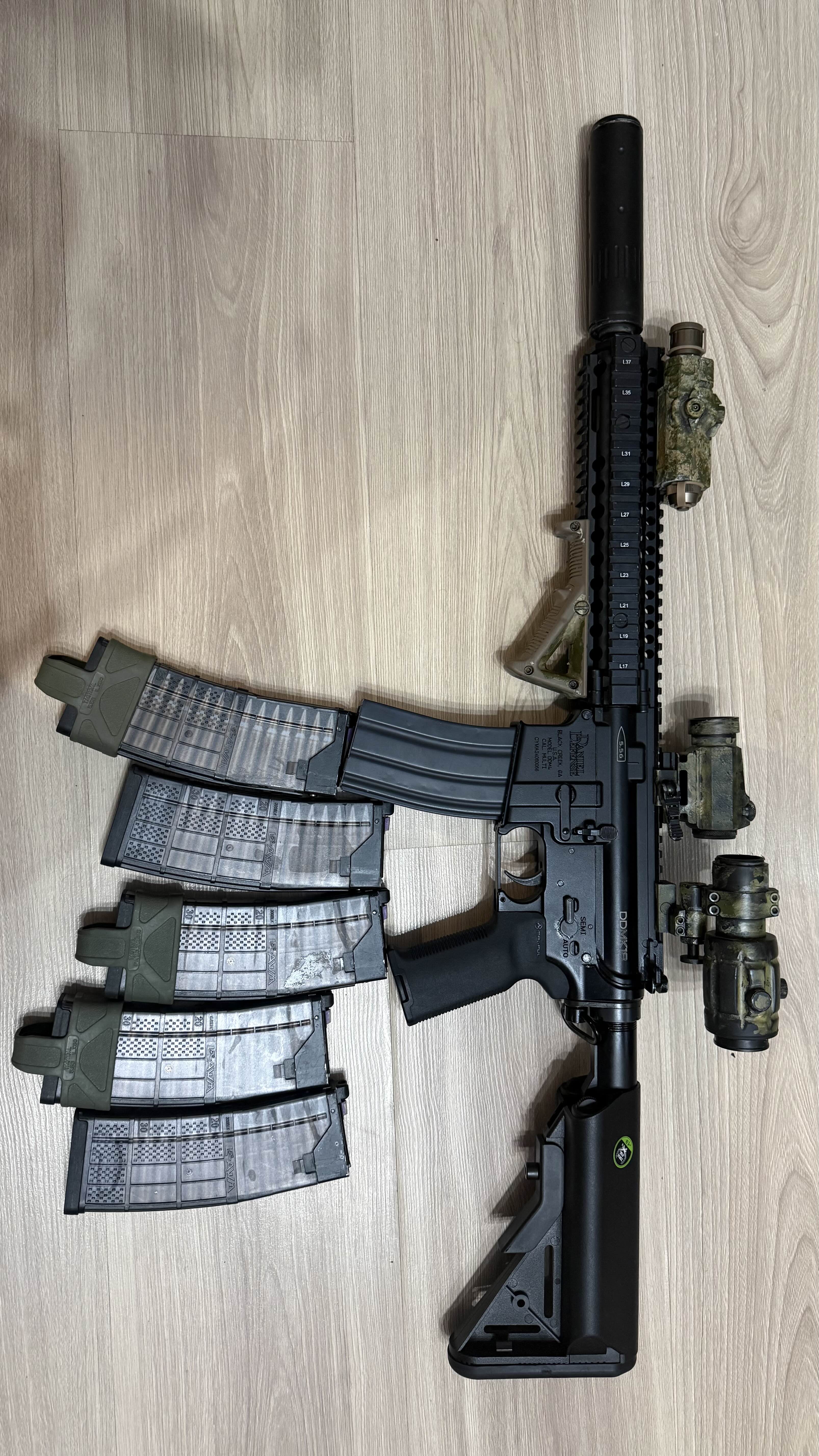 Witam posiadam na sprzedaż Cyma CGS MK18 w środku zostało wymienione: -Dysza na Unicorn (nówka nie widziała ani jednej strzelanki) -Gumka hop up 4quantum Friction Pro High Performance GBB -Chwyt pistoletowy Magpul MOE-K2+ -dodam sześć szczelnych w pełni sprawne magazynki - puszkę pequ WADSN z funkcjami latarka/laser -Powiększalnik Vector Optics Maverick 3x26 SCMF-10 -chwyt skośny Magpull -Red Dot Vector Optics