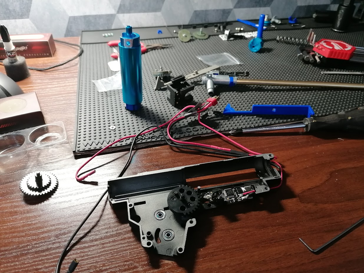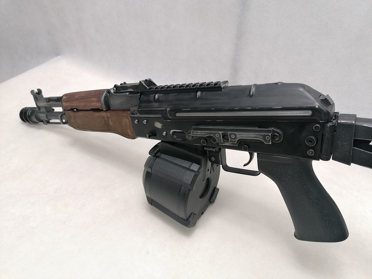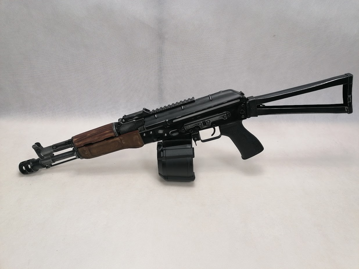 Specna Arms SA-J08 EDGE replika karabinu AK-105 (?) Bardzo fajna replika od specny... w pełni metalowa/stalowa z elementami drewnianymi, układ ASTER, dobrze spasowana brak luzów, jedynie lekki luz na kolbie - kolba jest składana. Lekko zmodyfikowana pod względem wizualnym oraz mechanicznym - replika jest nowa poskładana i trafia na sprzedaż. W wielkim skrócie, pełen serwis, podkładkowanie, smarowanie, zmiana oringów w celu poprawy szczelności, zmieniona gumka hopup - bardzo ładnie i równo kręci 0.25g / 0.32g :) zmienione zębatki na Tornado 13:1 i zrobiony short stroke - szybkostrzelność około 20-22 kulki sek. Układ Aster więc replika ma fajną reakcje na spust pod szturm jest idealnie. mocowo mamy 1.8j dla kulek 0.32g system szybkiej wymiany sprężyny także ewentualne dostosowanie mocy to chwila. Fajny zestaw 5 magazynków, dwie baterie, pudełko, pozostałe części.