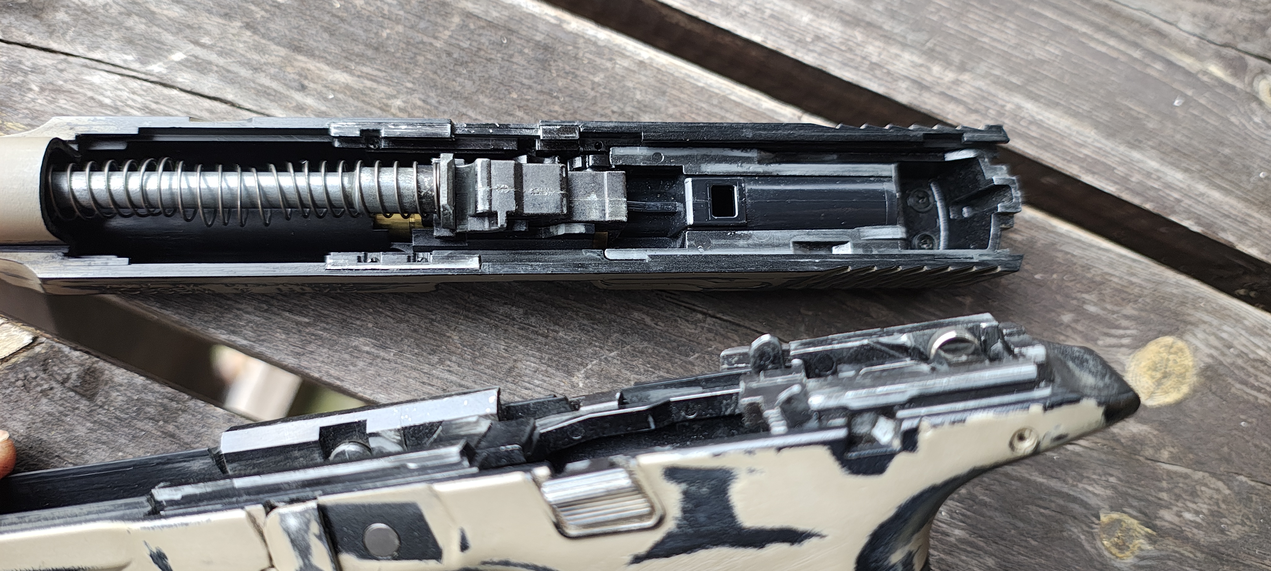 Sprzedam replikę M&P 9 od TMa. Replika z niedużym nastrzałem co widać po stanie części wewnętrznych i magazynkach. Za wyjątkiem ułamanego lewego skrzydełka bezpiecznika w pełni sprawna. Dostępne są w PL stalowe zamienniki skrzydełek od guardera więc można sobie uzupełnić choć ten bezpiecznik jest zbędny. Strzela znakomicie, pewnie łapie zamek i jest celna na całym zasięgu strzału. W zestawie 3 szczelne, oryginalne magazynki TMa, oryginalne pudło z papierami i dodatkami oraz kabura.