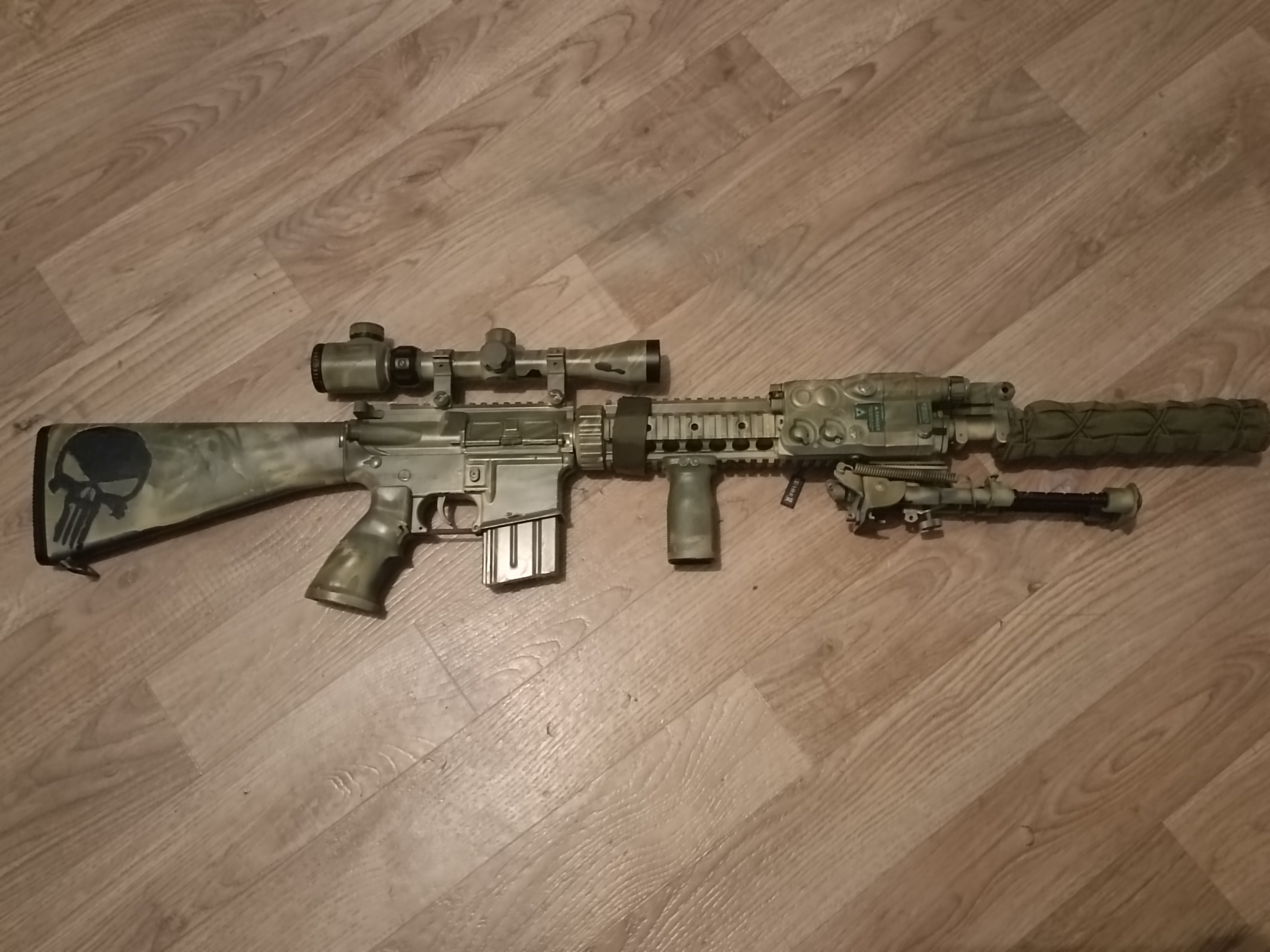 Witam posiadam replikę używaną dwa razy do niej 3 magazynki podświetlana luneta 3-9x32E Puszka peq dwójnóg tylko odbiór osobisty