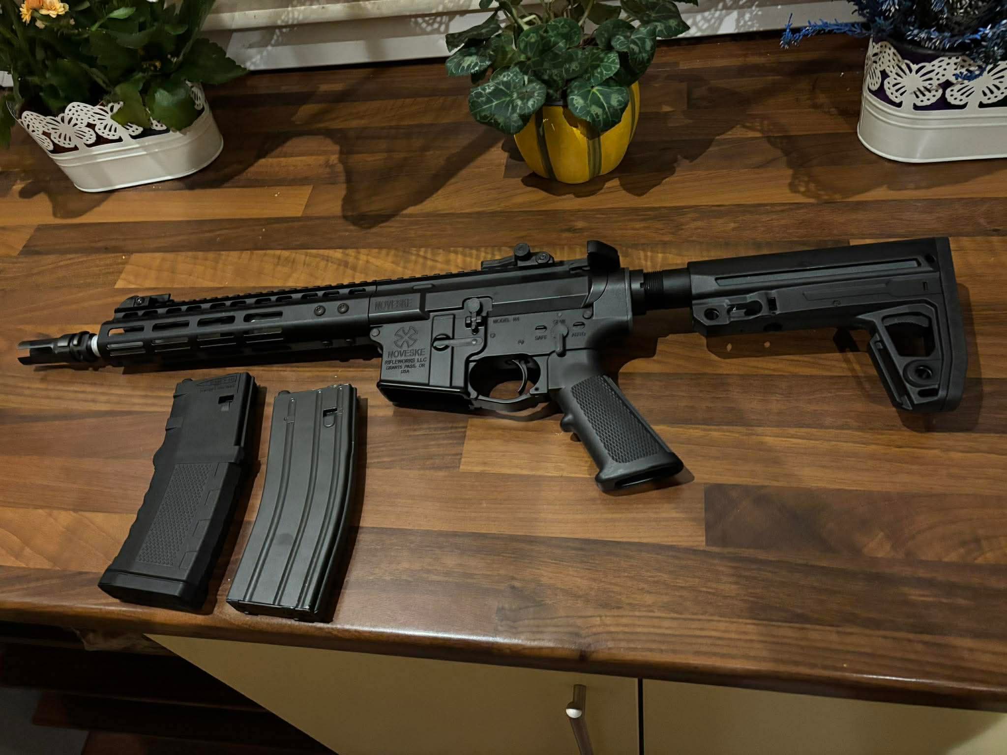 Witam. Sprzedam replikę asg NOVESKE N4 MWS GEN3 GBBR. Przebieg nie jest większy niż 800 kulek (dwie strzelanki). W zestawie z repliką dodatkowy magazynek. Wymieniona gumka hop up oraz dystanser na TNT 60. Replika jest wyczyszczona oraz nasmarowana - gotowa do gry. Wady? Jedna. Brakuje jednego „ucha” od rączki przeładowania. Podczas gry musiał wypaść pin i nie udało się go odnaleźć. Jest to wada estetyczna, która nie wpływa na sprawność repliki. Magazynki szczelne , smarowałem zawory.