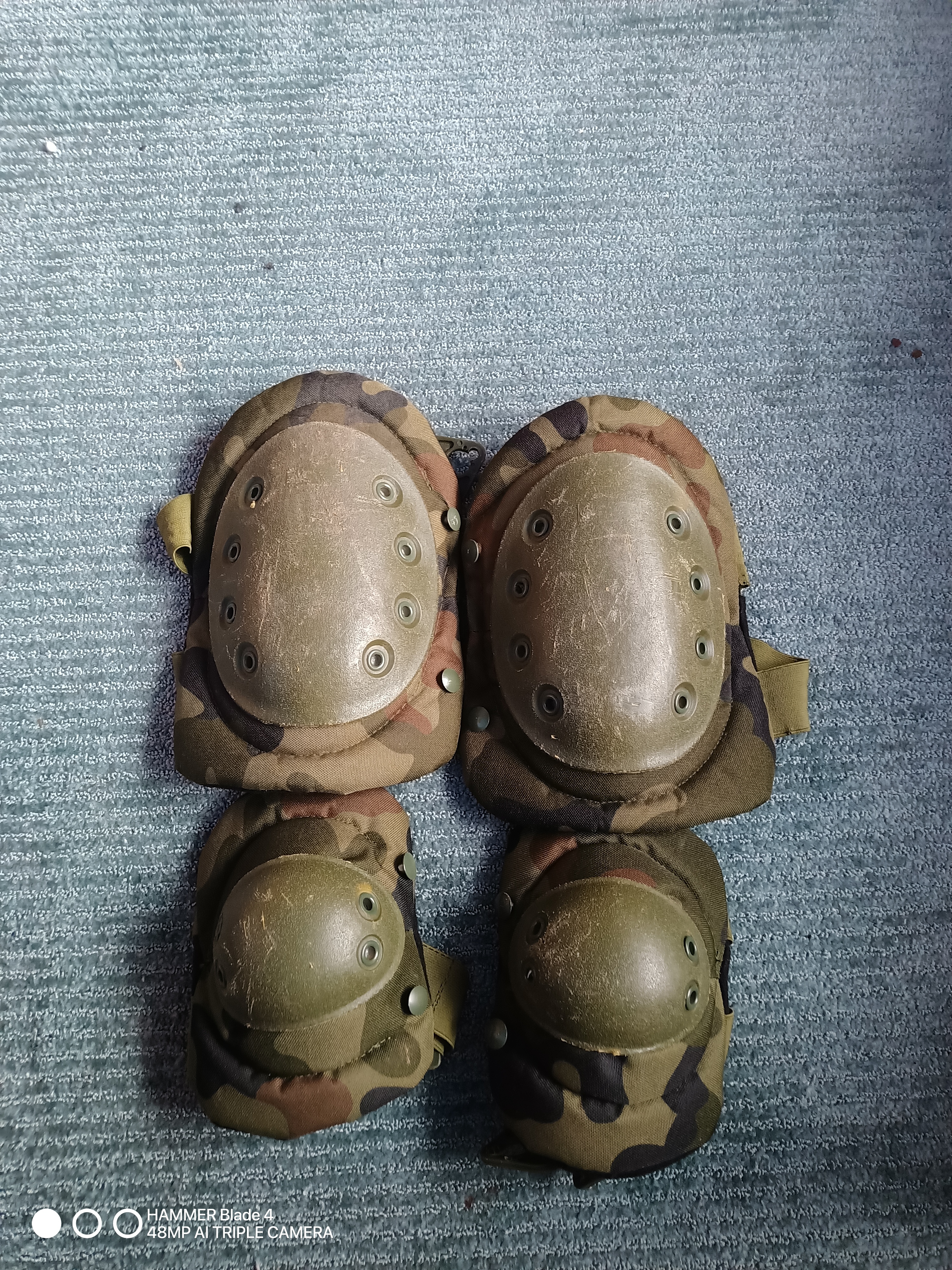 Zestaw nakolanników i nałokietników w stanie dobrym. Posiadają zarysowania ale nie są pęknięte w żadnym miejscu i są w pełni sprawne. Cena za przesyłkę ustalana przy zakupie (wg wyceny dostawcy).