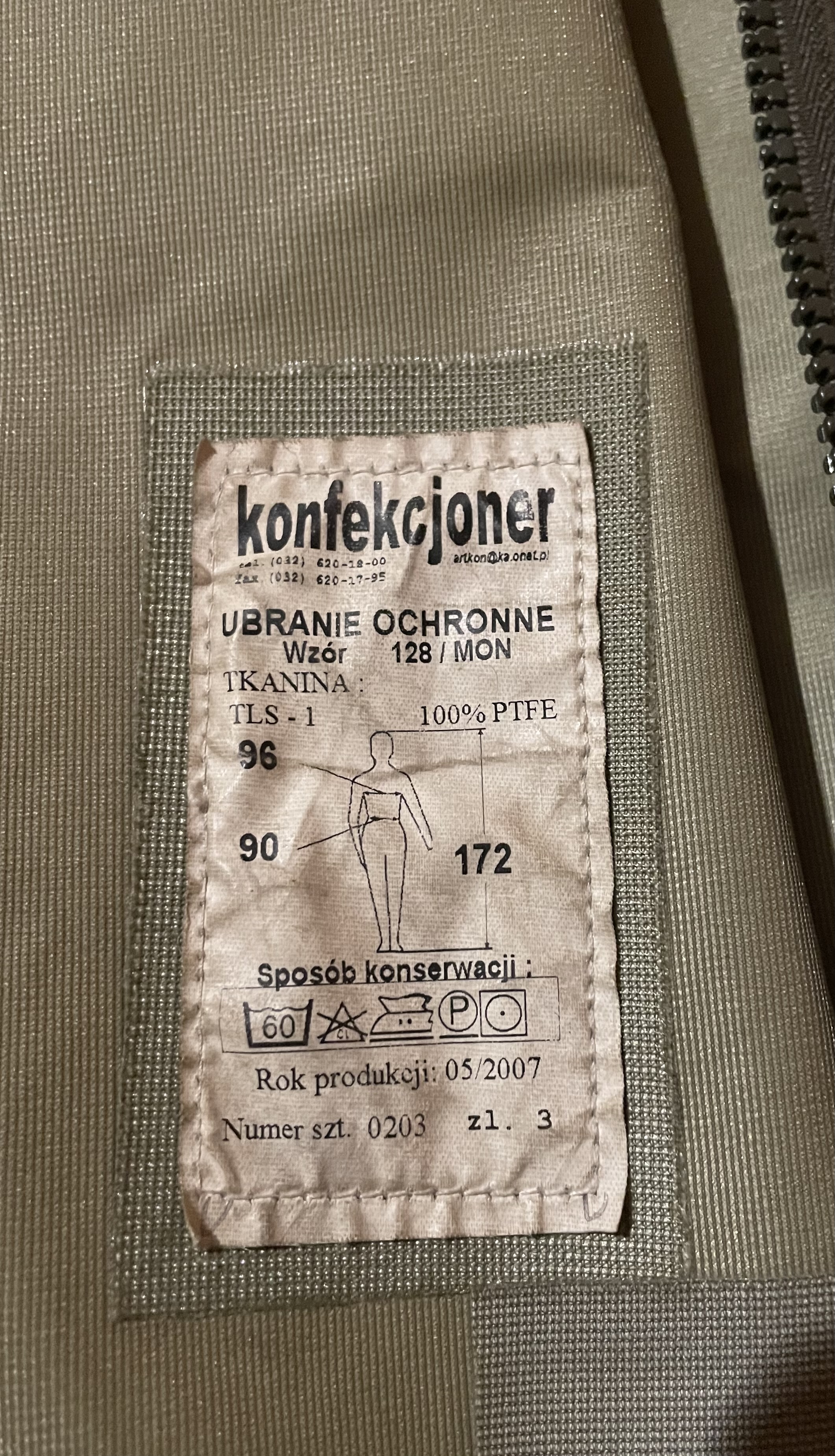Kurtka i Polar ubrania ochronnego 128/Mon 104/166 wz.93 Goratex/Goretex