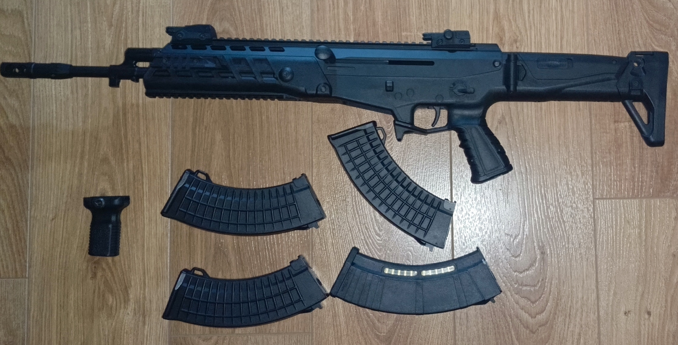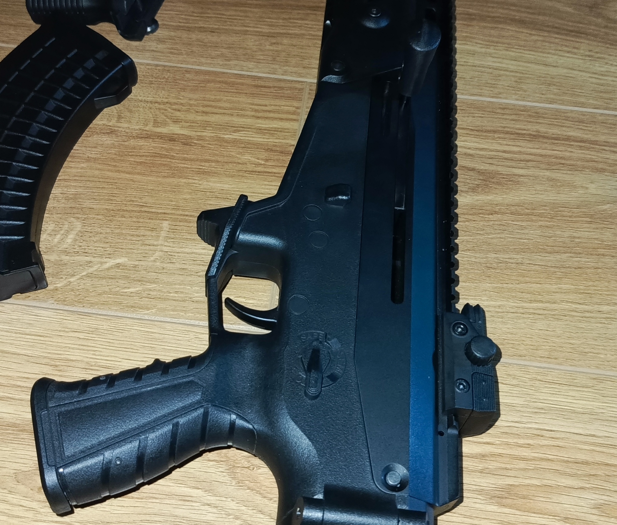 Na sprzedaż trafia replika karabinka w standardzie Platinum od cenionego producenta Cyma (CM.103), dodatkowo w gratisie dorzucam 3 magazynki mid-cap tej samej firmy, i chwyt przedni. Replika jest jeszcze na gwarancji, kupującemu udostępniam fakture potwierdzającą. W razie kontaktu zostawiam numer: 530871371 (W razie potrzeby mogę bez problemu wykonać zdjęcia z powodu oświetlenia na załączonych), Stan Idealny, wystrzeliła około 20 kulek w celu sprawdzenia działania i wyzerowania kolimatora który mialem na niej założony Najważniejsze cechy i specyfikacja: |Ekstremalne Osiągi (Konfiguracja Platinum): -Szybkostrzelność (ROF) na poziomie aż 25 kulek na sekundę. -Wzmocniony Gearbox z systemem szybkiej wymiany sprężyny. -Wbudowany układ MOSFET oraz elektroniczny spust (błyskawiczna reakcja na dotknięcie). -Stalowe zębatki 13:1 na łożyskach 8mm i cichy zestaw głowic (doskonała kompresja i kultura pracy). |Precyzja i zasięg: -Lufa wewnętrzna o średnicy 6,03 mm osadzona w 16-calowej lufie zewnętrznej gwarantuje świetne skupienie. -Moc: ok. 390 FPS |Ergonomia i Nowoczesny Design: -Aluminiowa komora zamkowa i lufa w połączeniu z wytrzymałym polimerowym łożem. -Szyny Picatinny na łożu i grzbiecie repliki pod montaż optyki, latarek czy laserów. -Wszystkie manipulatory (selektor ognia, zwalniacz magazynka, rączka przeładowania) są dostosowane dla osób prawo- i leworęcznych. -Regulowana kolba (5 pozycji) z baką policzkową. Na rurze gazowej znajduje się mała rysa którą widać na zdjęciu przeziernika Zestaw zawiera: - Replika CM.103 Platinum - Magazynek Polimerowy Mid-Cap o pojemności 200 kulek z zestawu - 3x magazynki Mid-Cap firmy CYMA o pojemności 150 kulek - Chwyt przedni UWAGA: Do tej repliki pasują akumulatory T-Connect / DEANS