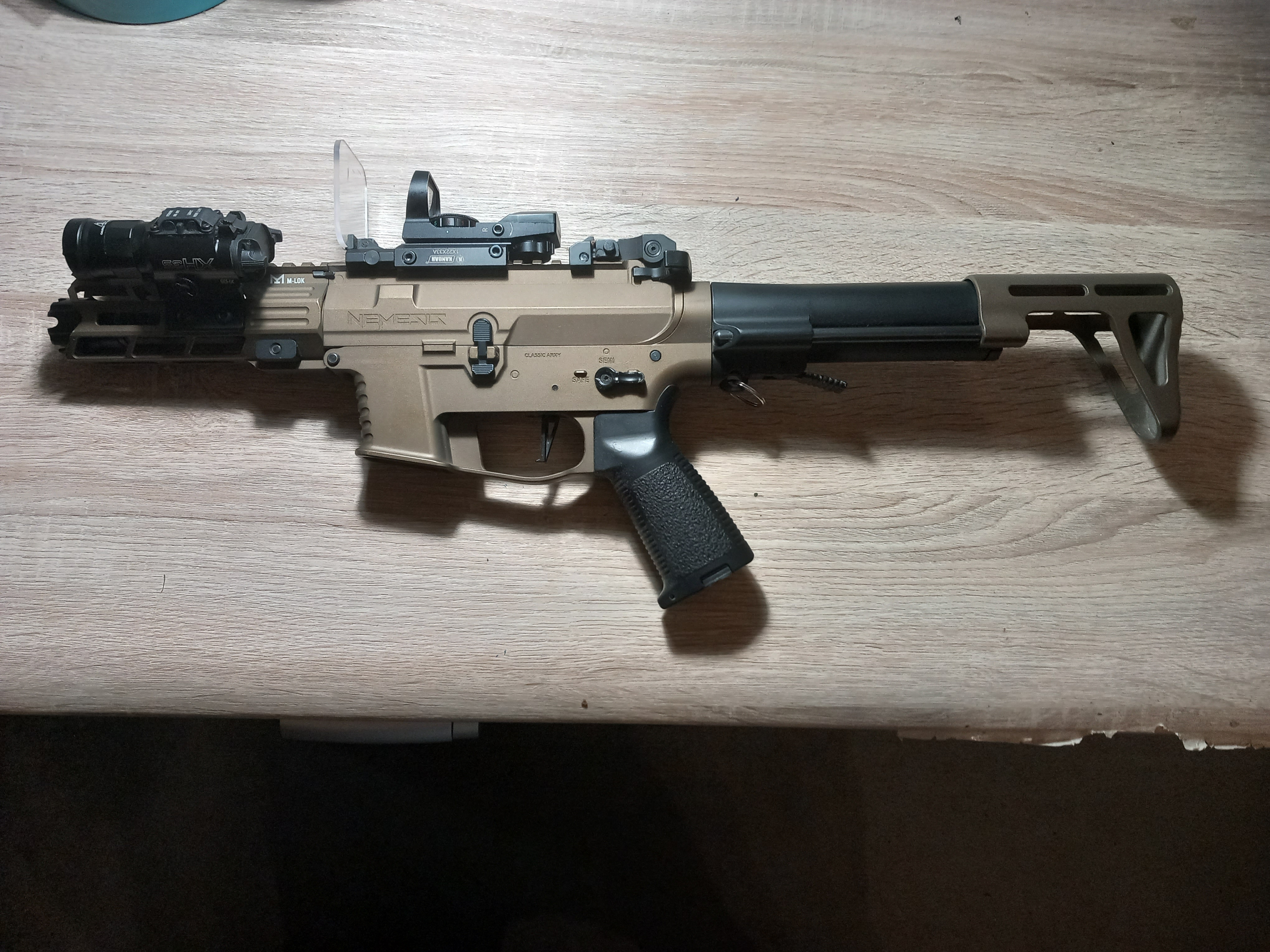 Witam mam na sprzedaż praktycznie nowa replikę asg nemesis x9 byłem z nią tylko raz na strzelance niestety brak czasu I chęci zmusza mnie do jej sprzedania w zestawie łącznie 3 magazynki kolimator plus osłona,akumulator lipo I latarka