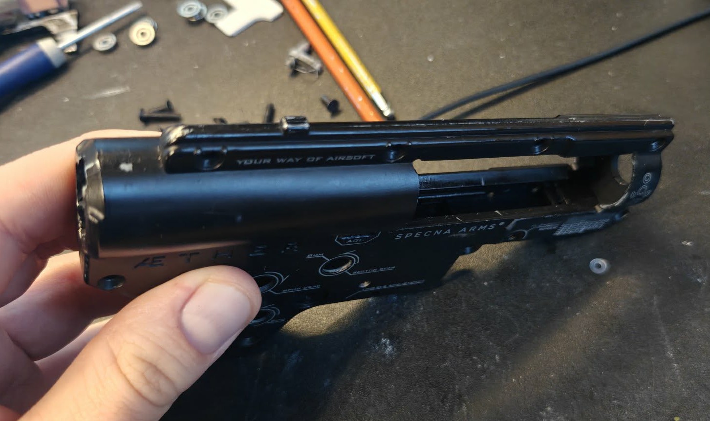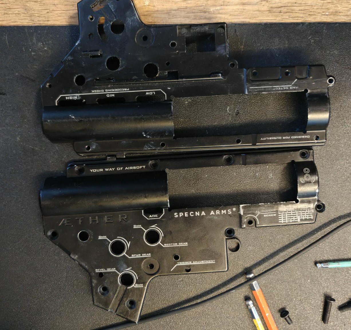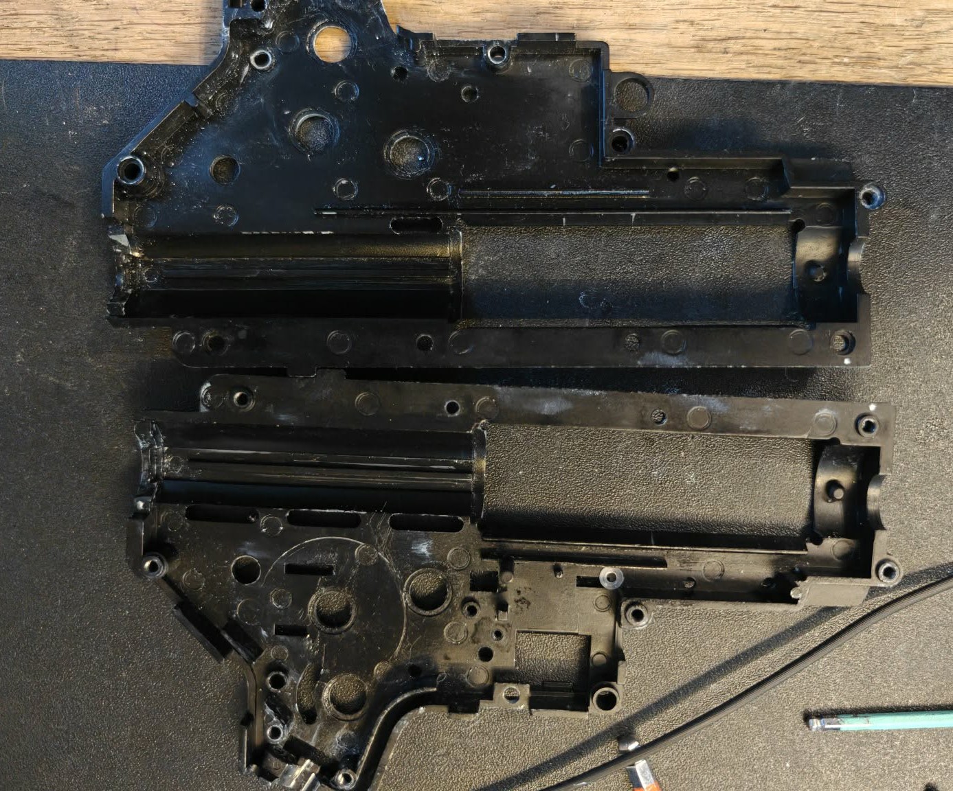 SPRZEDANY Sprzedaję, bo przesiadłem się na szkielet CNC. Wieść gminna niesie, że to jeden z najlepszych, jak nie najlepszy szkielet nie-CNC. Brak uszkodzeń, pęknięć, itp. Zeszlifowany od strony spustu (patrz foto) ponieważ był tam nierówno odlany. Podrapana farba jak na zdjęciach. Sprzedaję golasa bez łożysk i prowadnicy (tak kupiłem). Odbiór osobisty w Łodzi lub wysyłka do paczkomatu po przedpłacie.