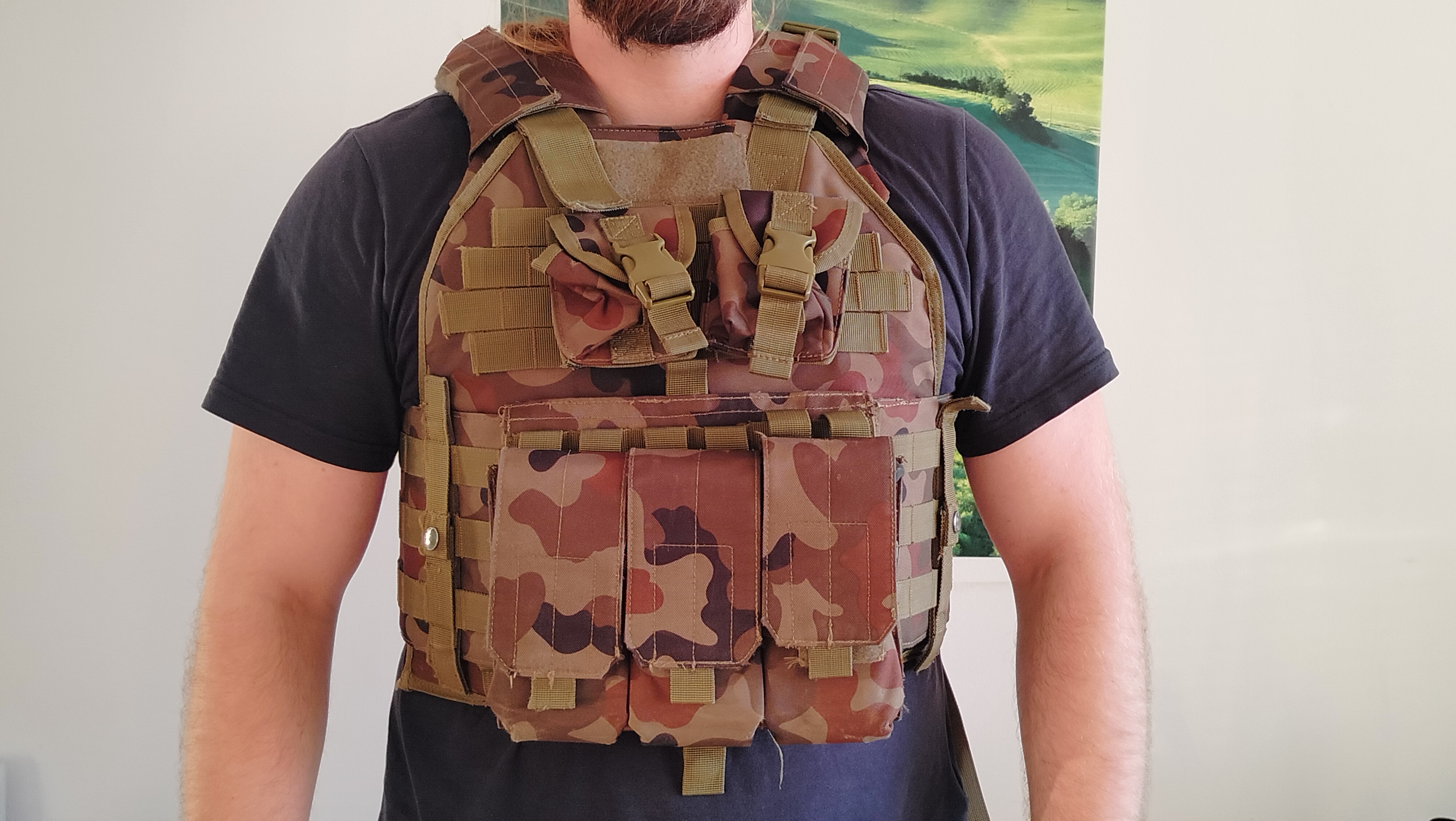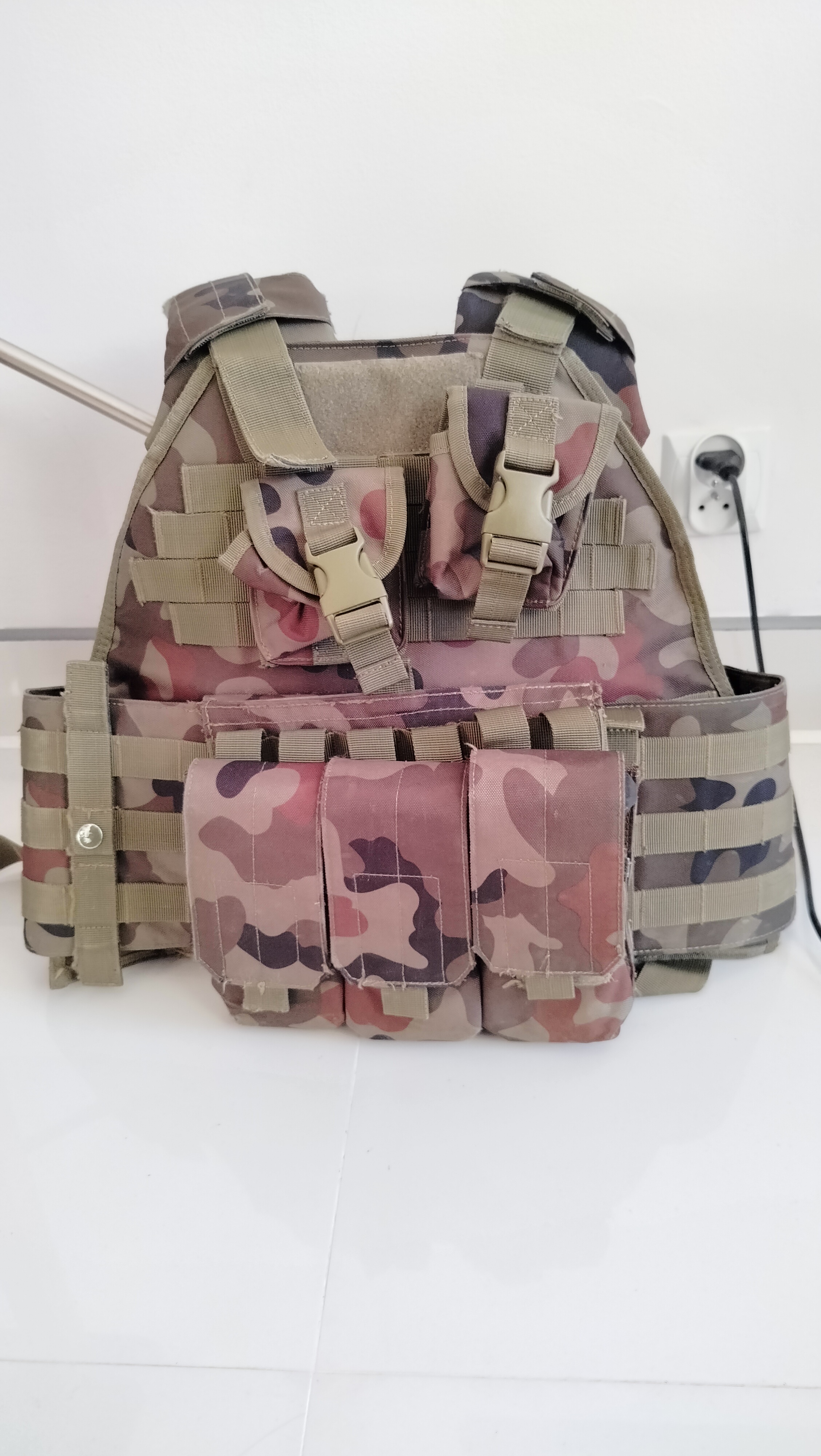 Na sprzedaż kamizelka taktyczna GFC w kamuflarzu wz-93. Posiada potrójną łądownice na froncie kompatybilną z magazynkami M4/AR oraz 2 ładownice na granaty. Stan określam jako bardzo dobry, praktycznie nie ma widocznych śladów użytkowania. Kamizelka ma wiele opcji regulacji co sprawia, że będzie komfortowym wyborem dla każdego. Zdjęcia nie oddają w pełni koloru - wyszły nieco prześwietlone przez co niektóe kolory kamuflarzu są jaśniejsze niż w rzeczywistości.