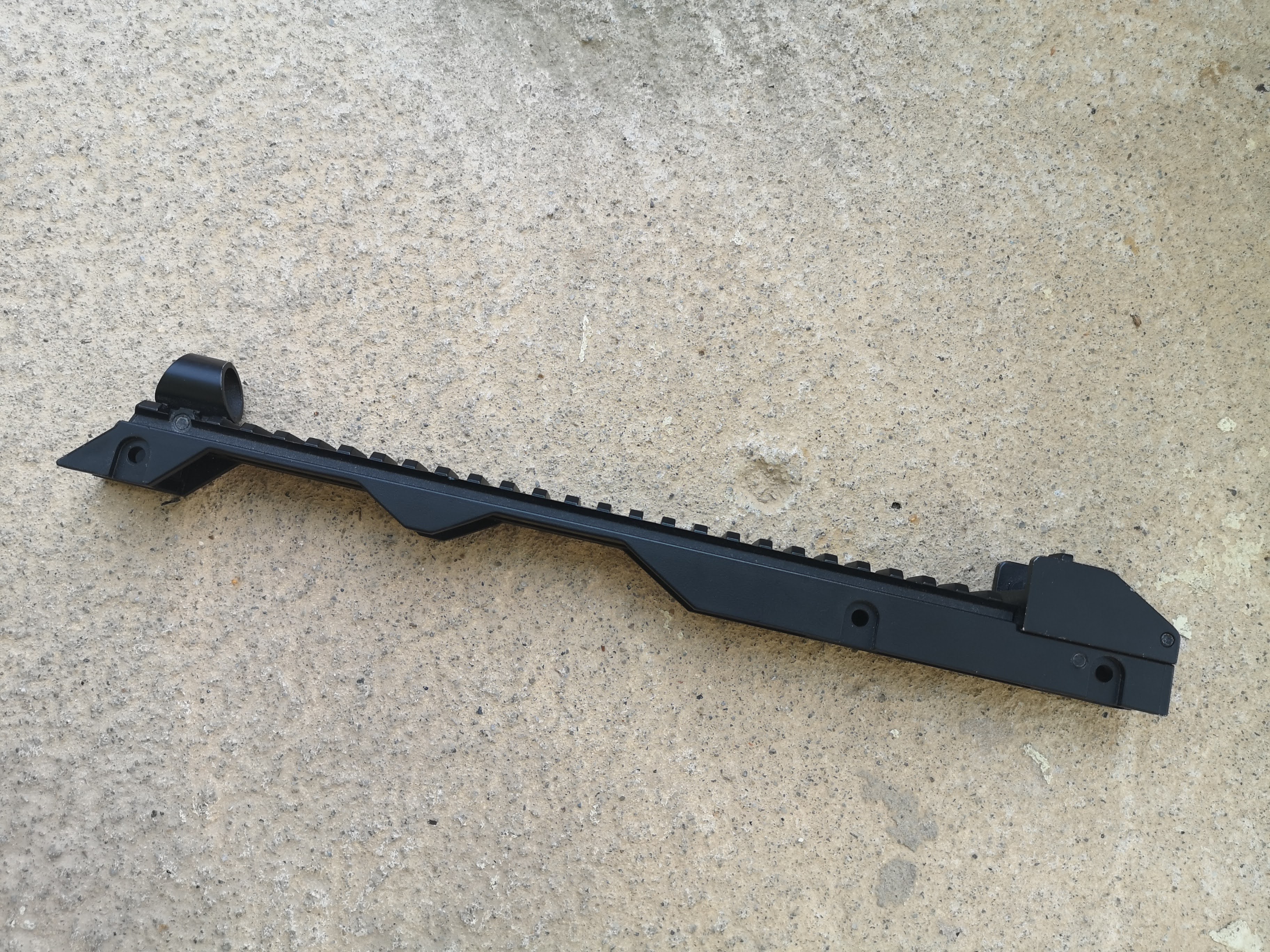 Mam na sprzedaż górną szynę RIS do replik ASG typu G36 produkcji JG ale powinna również pasować do innych producentów. Szyna w stanie bdb prosta bez pęknięć. Górna szyna RIS przeznaczona do montażu w replikach karabinków typu G36. Podstawa wraz szyną wykonane została z tworzywa sztucznego, natomiast mechaniczne przyrządy celownicze wykonano z metalu.