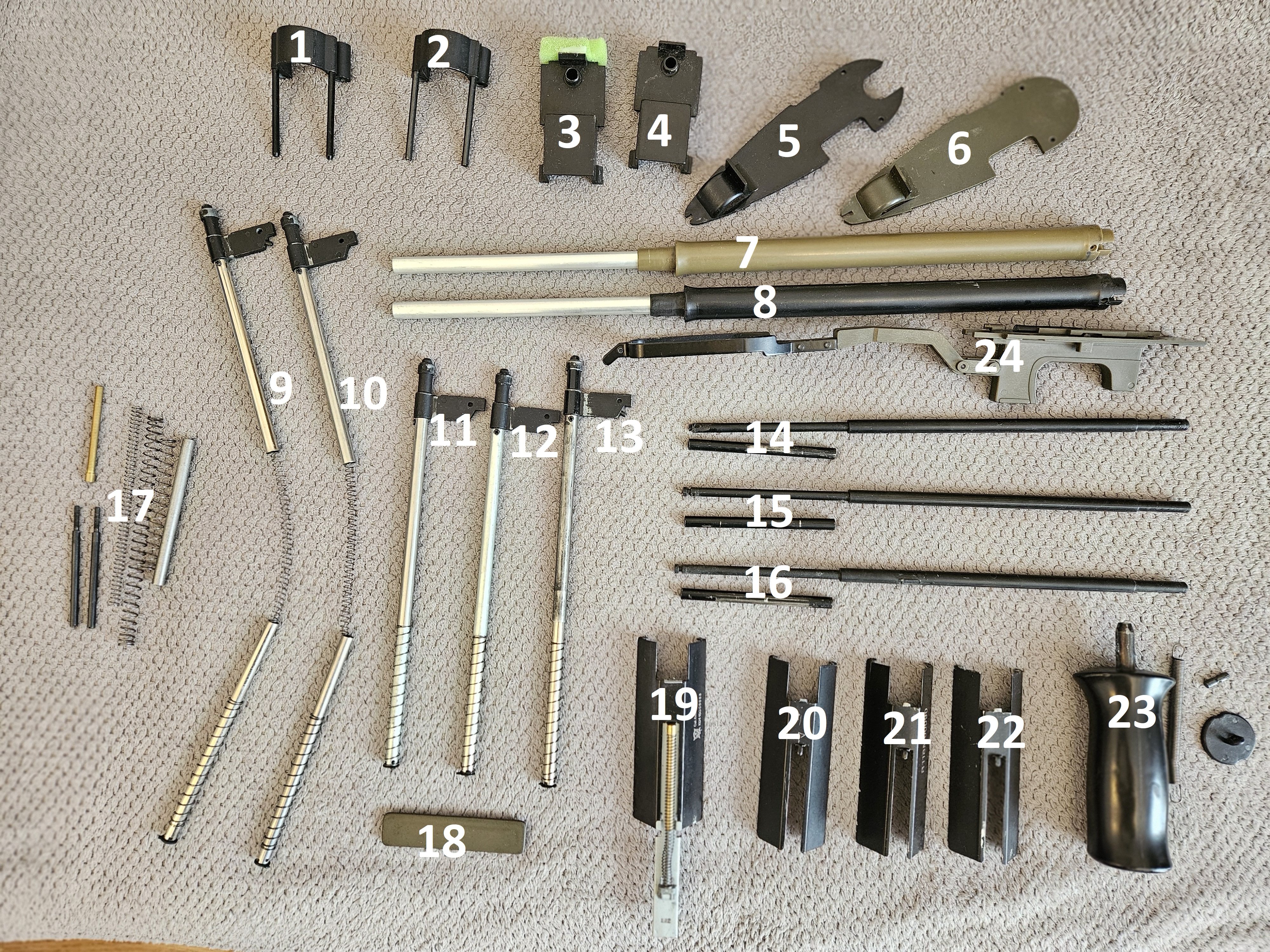 Mam na sprzedaż zestaw różnych części do replik AUG, większość replik różnych firm jest w tam samym standardzie więc części powinne wymiennie pasować do różnych producentów czy to JG, GFC, Classic Army, Tokyo Marui. 1. Element odsuwania wyrzutnika łusek - 10zł 2. Element odsuwania wyrzutnika łusek - 10zł 3. Gniazdo magazynka z gąbka zapobiegającą wpadaniu kulek do środka korpusu - 25zł 4. Gniazdo magazynka - 25zł 5. Stopka czarna dociskająca gearbox - 20zł 6. Stopka czarna dociskająca gearbox - 20zł 7. Lufa zewnętrzna - 35zł 8. Lufa zewnętrzna - 35zł 9. Raczka przeładowania z prowadnicami i sprężynami - 30zł 10. Raczka przeładowania z prowadnicami i sprężynami - 30zł 11. Raczka przeładowania z prowadnicami bez sprężyny wewnętrznej - 20zł 12. Raczka przeładowania z prowadnicami bez sprężyny wewnętrznej - 20zł 13. Raczka przeładowania z prowadnicami bez sprężyny wewnętrznej - 20zł 14. Prowadnica zamka - 10zł 15. Prowadnica zamka - 10zł 16. Prowadnica zamka - 10zł 17. Zestaw różnych elementów zamka, sprężynek - 10zł 18. Gumowa zaślepka wyrzutnika łusek - 15zł 19. Kompletna atrapa zamka zakładana na górę gearboxa - 35zł 20. Blaszka zamka/atrapa zamka - 15zł 21. Blaszka zamka/atrapa zamka - 15zł 22. Blaszka zamka/atrapa zamka - 15zł 23. Kompletna nie uszkodzona składana rączka - 30zł 24. Kompletny zespół spustowy od GFC - 40zł 25. Atrapa regulatora gazowego - 25zł 26. Blokada wyciągania lufy - 15zł 27. Pin do łączenia body z konwersją i lufą - 35zł