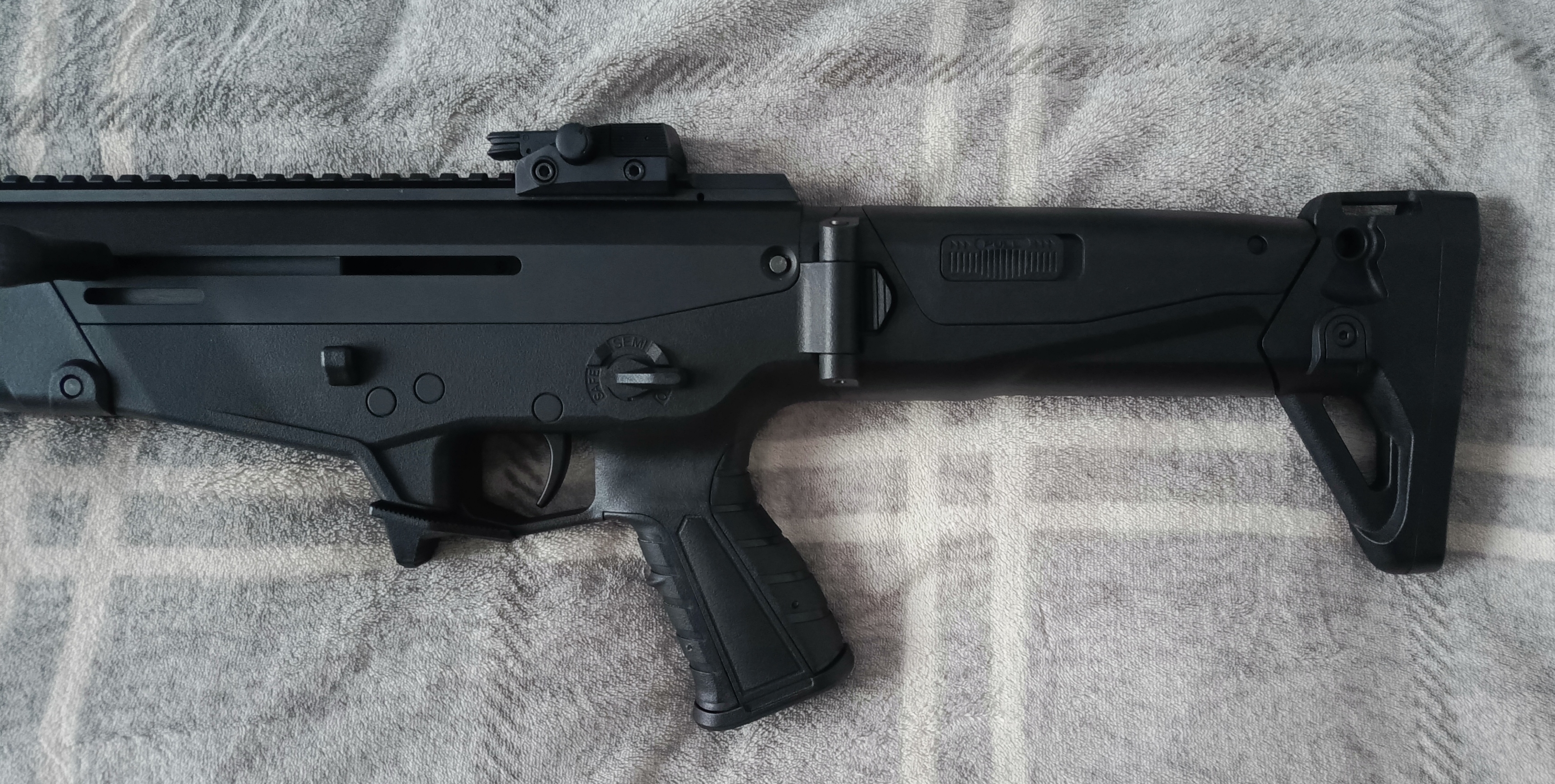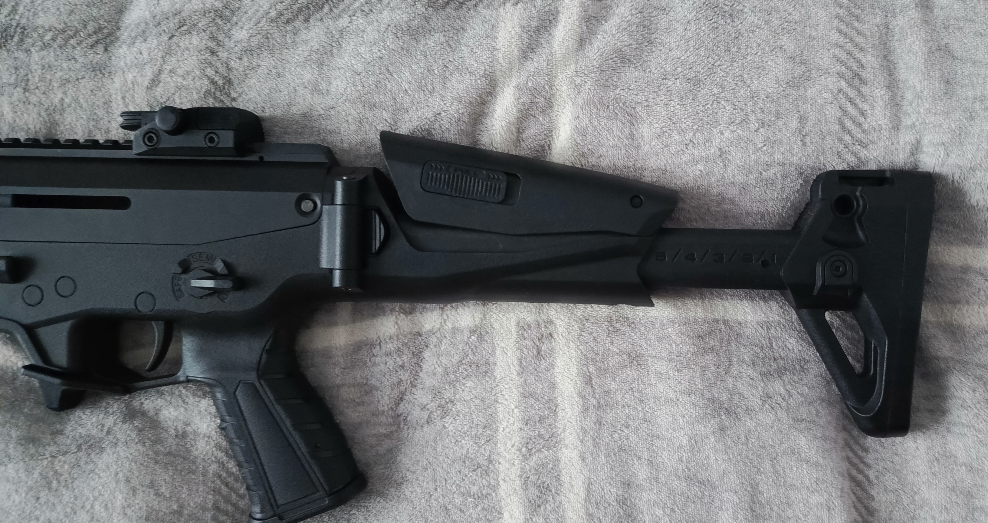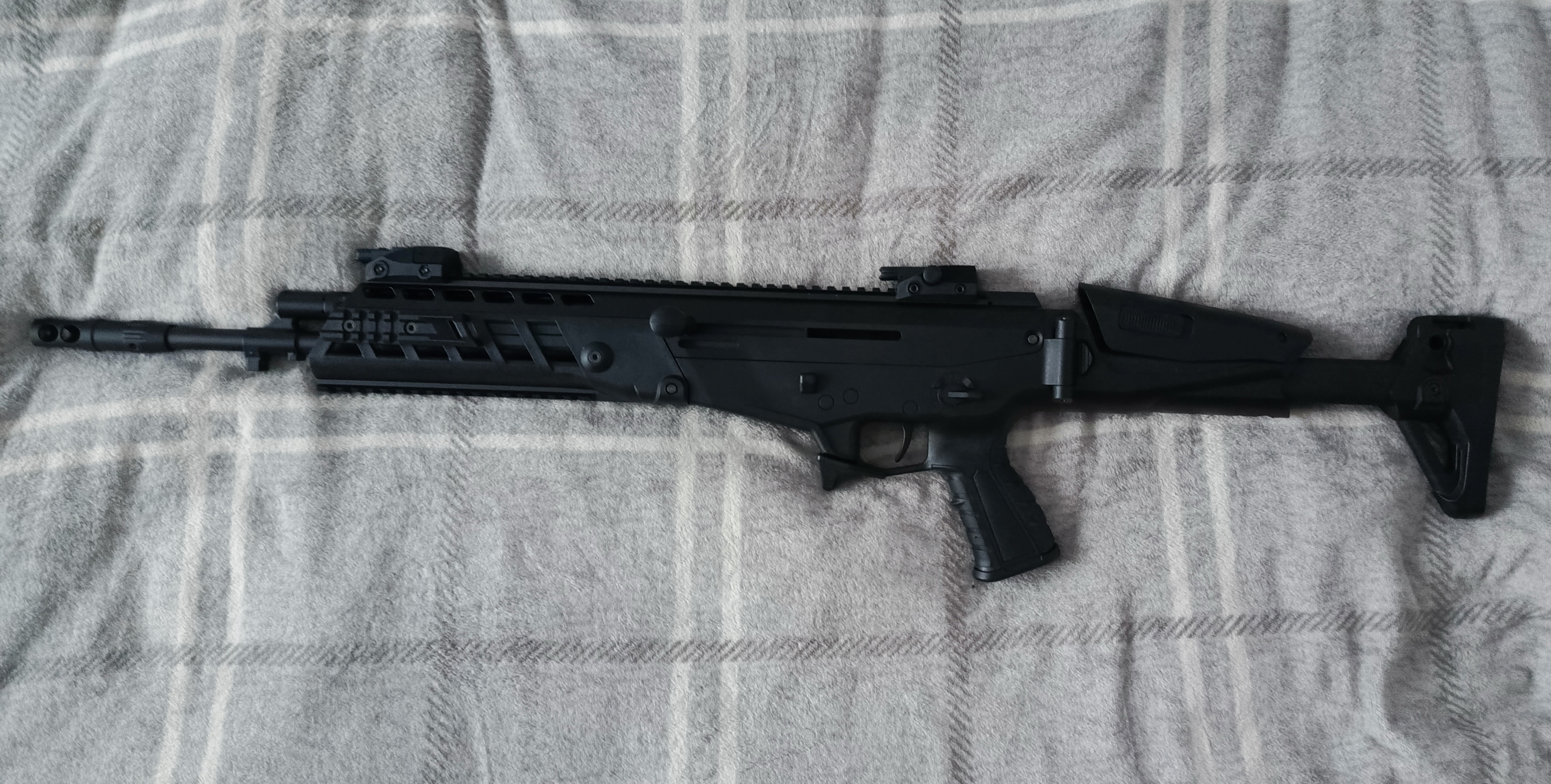 Na sprzedaż trafia replika karabinka w standardzie Platinum od cenionego producenta Cyma (CM.103), dodatkowo w gratisie dorzucam 3 magazynki mid-cap tej samej firmy, i chwyt przedni. Replika jest jeszcze na gwarancji, kupującemu udostępniam fakture potwierdzającą. W razie kontaktu zostawiam numer: 530871371 (W razie potrzeby mogę bez problemu wykonać więcej zdjęć), Stan Idealny, wystrzeliła około 20 kulek w celu sprawdzenia działania i wyzerowania kolimatora który mialem na niej założony Najważniejsze cechy i specyfikacja: |Ekstremalne Osiągi (Konfiguracja Platinum): -Szybkostrzelność (ROF) na poziomie aż 25 kulek na sekundę. -Wzmocniony Gearbox z systemem szybkiej wymiany sprężyny. -Wbudowany układ MOSFET oraz elektroniczny spust (błyskawiczna reakcja na dotknięcie). -Stalowe zębatki 13:1 na łożyskach 8mm i cichy zestaw głowic (doskonała kompresja i kultura pracy). |Precyzja i zasięg: -Lufa wewnętrzna o średnicy 6,03 mm osadzona w 16-calowej lufie zewnętrznej gwarantuje świetne skupienie. -Moc: ok. 390 FPS |Ergonomia i Nowoczesny Design: -Aluminiowa komora zamkowa i lufa w połączeniu z wytrzymałym polimerowym łożem. -Szyny Picatinny na łożu i grzbiecie repliki pod montaż optyki, latarek czy laserów. -Wszystkie manipulatory (selektor ognia, zwalniacz magazynka, rączka przeładowania) są dostosowane dla osób prawo- i leworęcznych. -Regulowana kolba (5 pozycji) z baką policzkową. Na rurze gazowej znajduje się mała rysa którą widać na zdjęciu przeziernika Zestaw zawiera: - Replika CM.103 Platinum - Magazynek Polimerowy Mid-Cap o pojemności 200 kulek z zestawu - 3x magazynki Mid-Cap firmy CYMA o pojemności 150 kulek - Chwyt przedni UWAGA: Do tej repliki pasują akumulatory T-Connect / DEANS Link do repliki: https://www.taiwangun.com/pl/karabin-szturmowy-aeg/cm-103-replika-karabinu-ak-cyma