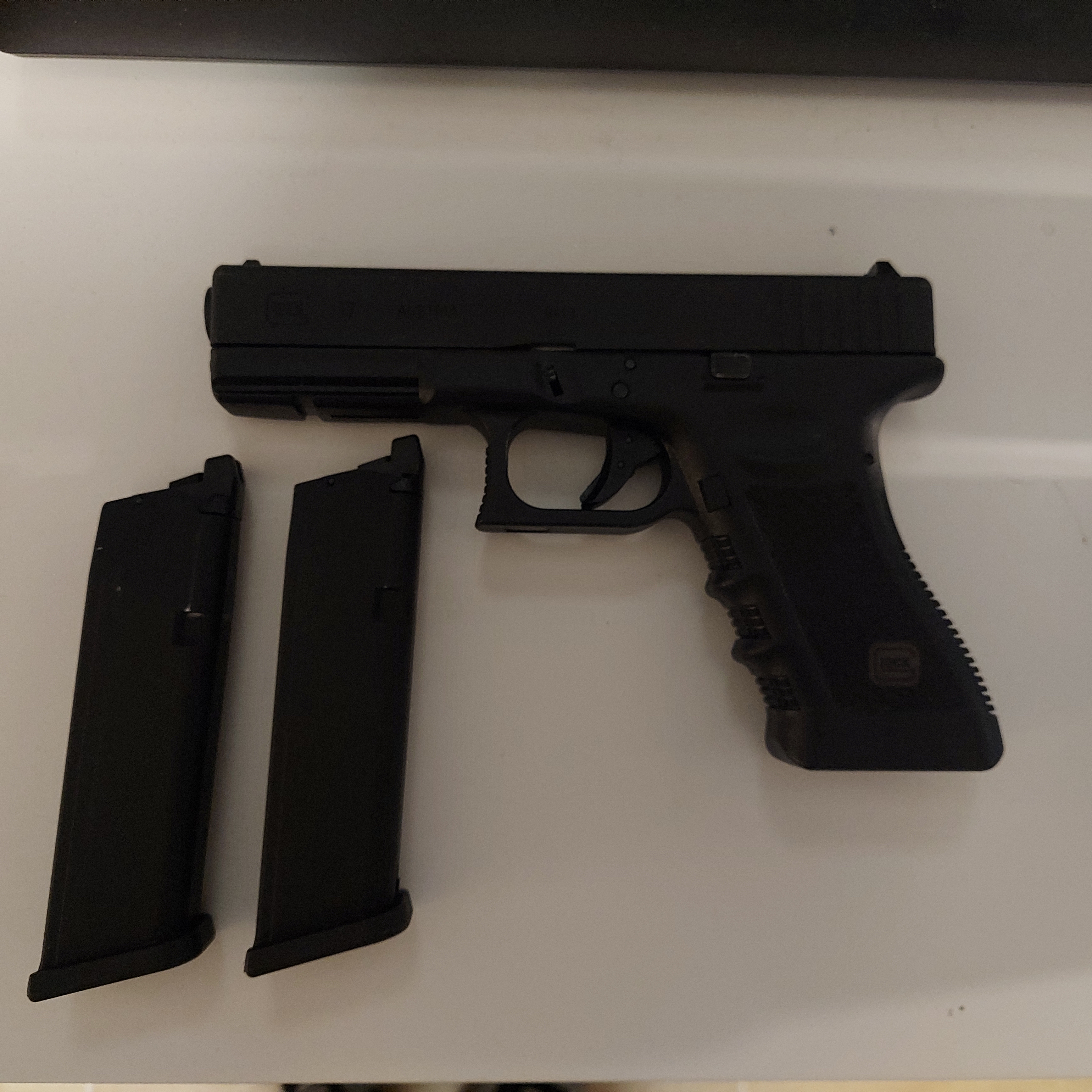 Replika Glock 17 gen. 3 firmy Umarex w komplecie z dwoma magazynkami, nadaje się do treningu strzeleckiego w domu, gdyż bardzo dobrze oddaje warunki strzelania z broni palnej (oczywiście bez huku :)). Praca mechanizmu spustowego nie odzwierciedla w 100 % oryginału, ale na pewno daje wmiare zbliżone odczucia przy strzelaniu. Podrzut, generowany przez ruch zamka do tyłu podczas strzału fajnie odwzorowuje podrzut generowany przez bron palną. Zasilanie repliki odbywa się za pomocą green gasu, który ładowany jest do wyjmowanego magazynka. Powoduje to równomierne ciśnie przez prawie cały okres strzelania. Dopiero, gdy gaz zaczyna się kończyć odczuwalny jest spadek ciśnienia. Replika w dobrym stanie, używana głównie w domu do praktycznie bezkosztowego treningu strzeleckiego. Szczerbinka kiedyś odpadła, ale została domowymi sposobami zamontowana tak, że jest sztywno. Wrazie czego można po prostu wkleić. Istnieje możliwość ustawienia podkręcenia kulki, tak aby "wyzerowac" pistolet. Wrazie pytań proszę o kontakt telefoniczny pod numerem: 784553227