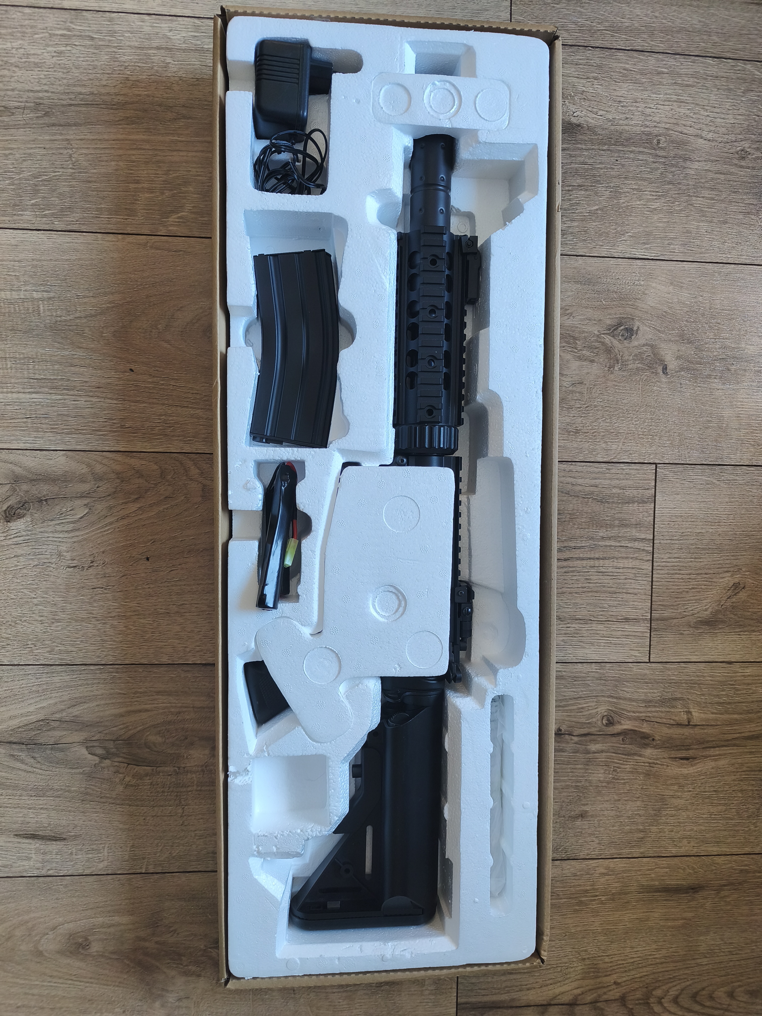 Karabinek jest sprawny nie działa jedynie tryb blokady strzału. Ma około 3 lata ale nie korzystałem dużo posiadam oryginalne opakowanie. Oprócz widocznych na zdjęciu akcesoriów ( sprężyny, baterii, ładowarki do baterii, magazynka, urządzenia do czyszczenia lufy) posiadam również 2 dodatkowe magazynki, baterie, pasek do przenoszenia repliki, chwyt przedni, uniwersalny uchwyt na latarkę, woreczek przypinany do paska na kulki - wszystko wymienione również na sprzedaż cena do negocjacji