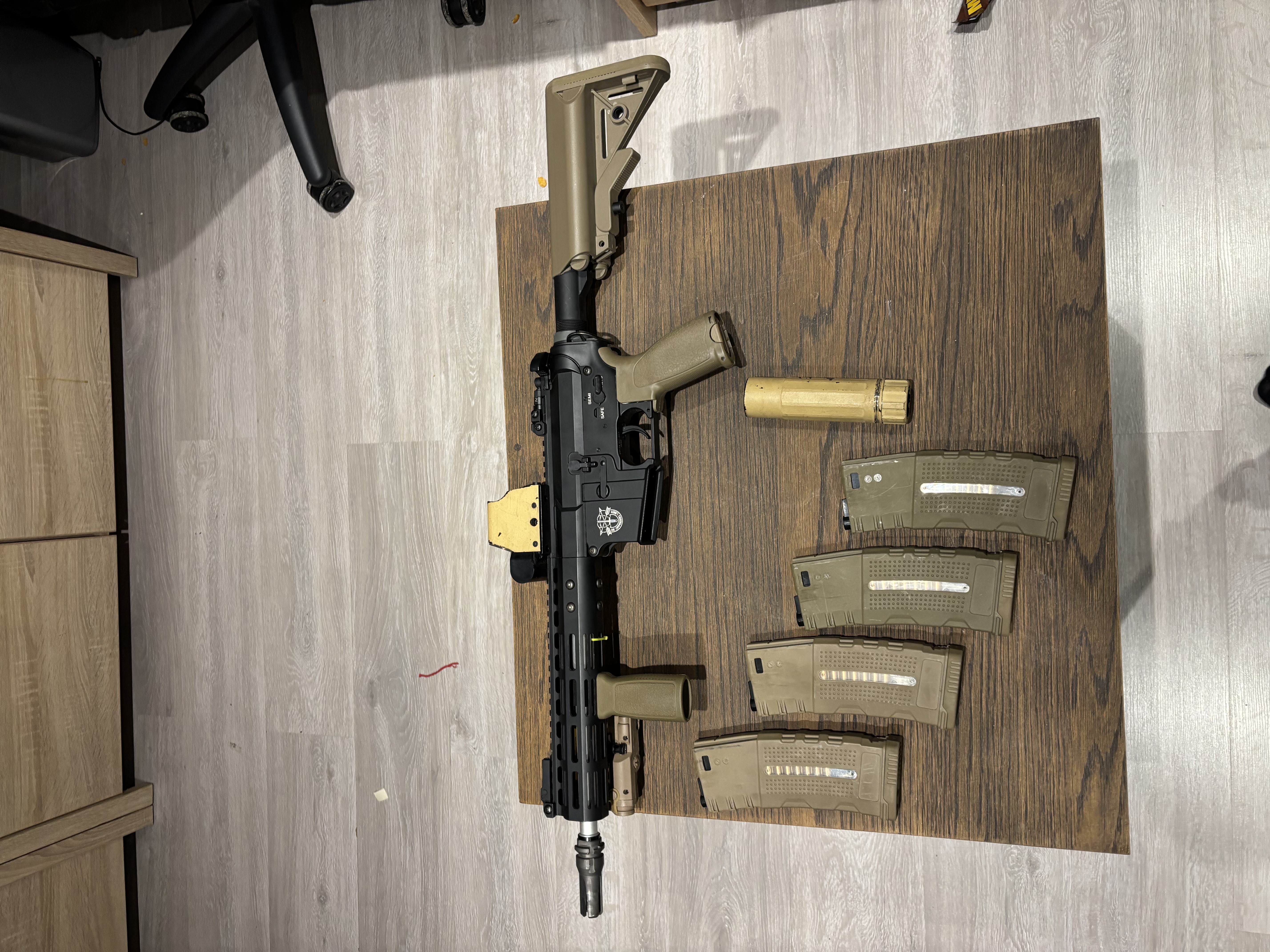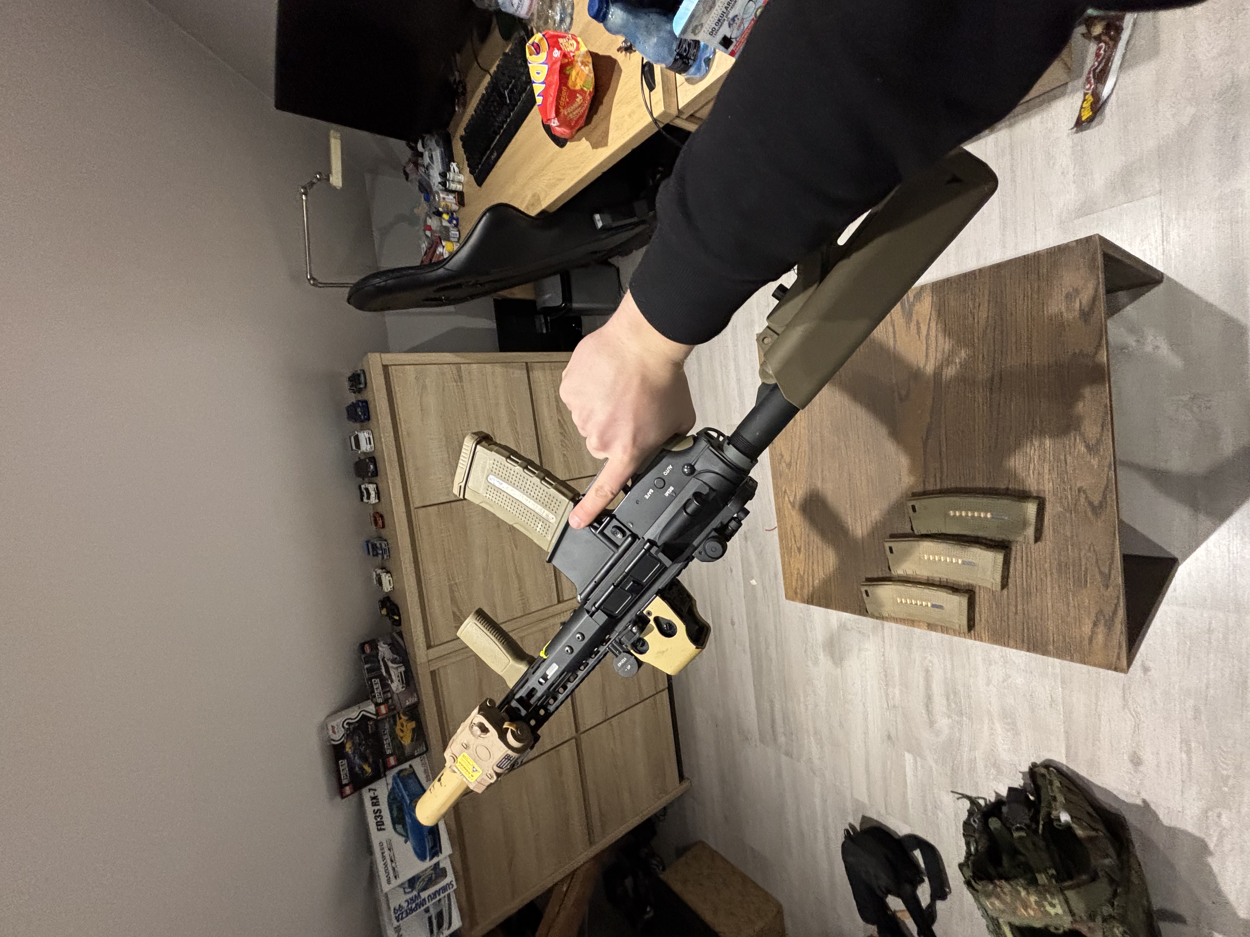 Full stock była chyba na 3/4 strzelankach, wszystko sprawne Za dużo więcej nie mam do powiedzenia na jej temat jedynie że pokaże z 4magami Mid Kolimatorem i tłumikiem jak na zdjęciach a i jeszcze dodam akusa i ładowarkę do niego