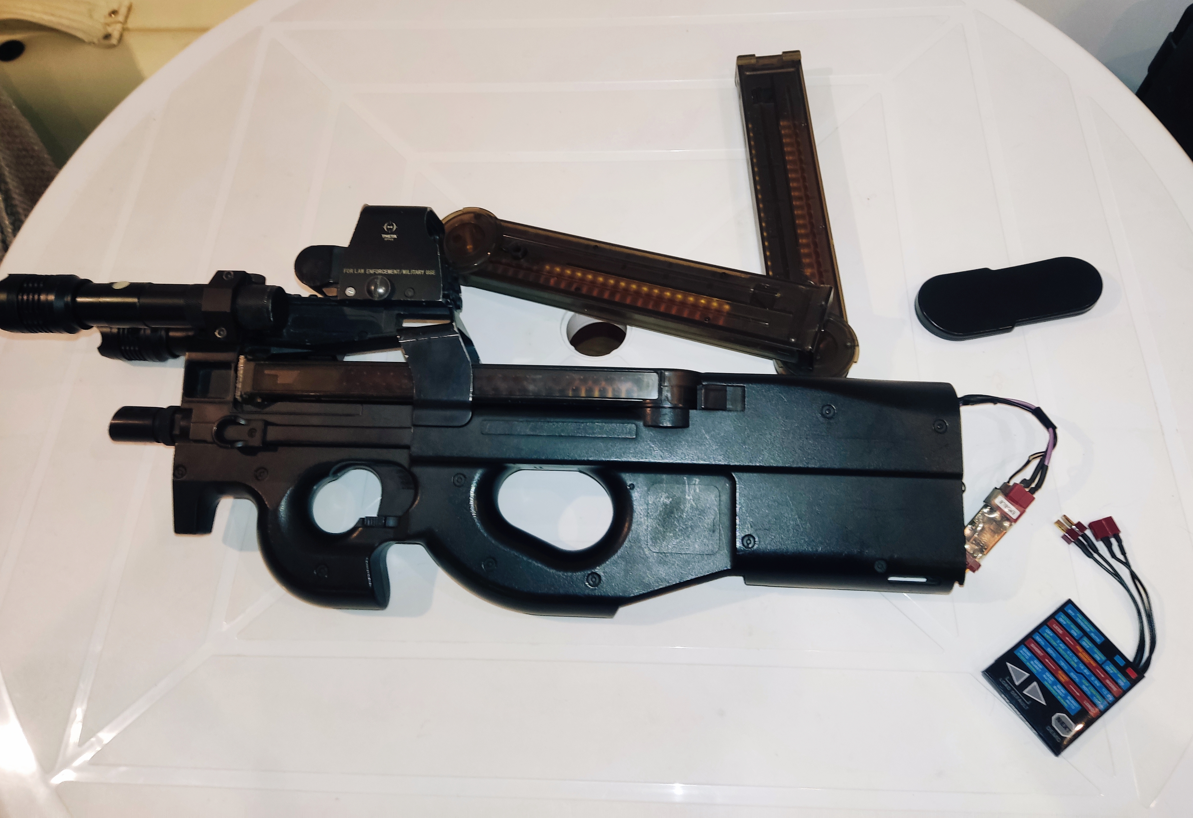 Witam, sprzedam porobioną P90 "SIDA" od Cymy (CM.060), potwór do cqb poprawione wszystkie bolączki fabryki. Tuning przeszła koło roku tem, nie których rzeczy mogę nie napisać bo zgubiłem kartkę z serwisu. W środku: - Gate warfet + kontroler - Prowadnica sprężyny - Głowica tłoka - Zębatki - Czyszczenie, smarowanie układu GearBox, podkładkowanie - Kable niskooporowe z końcówką t-connect Replika świetnie się sprawuje, mogę nagrać film z działania W zestawie: - Replika - 3 magazynki - 2 mocne latarki (światło ciągłe/stroboskop) (opcjonalnie) -- Kolimator Thetha Optics do oddzielonego kupna 150 pln Bez latarek -100pln