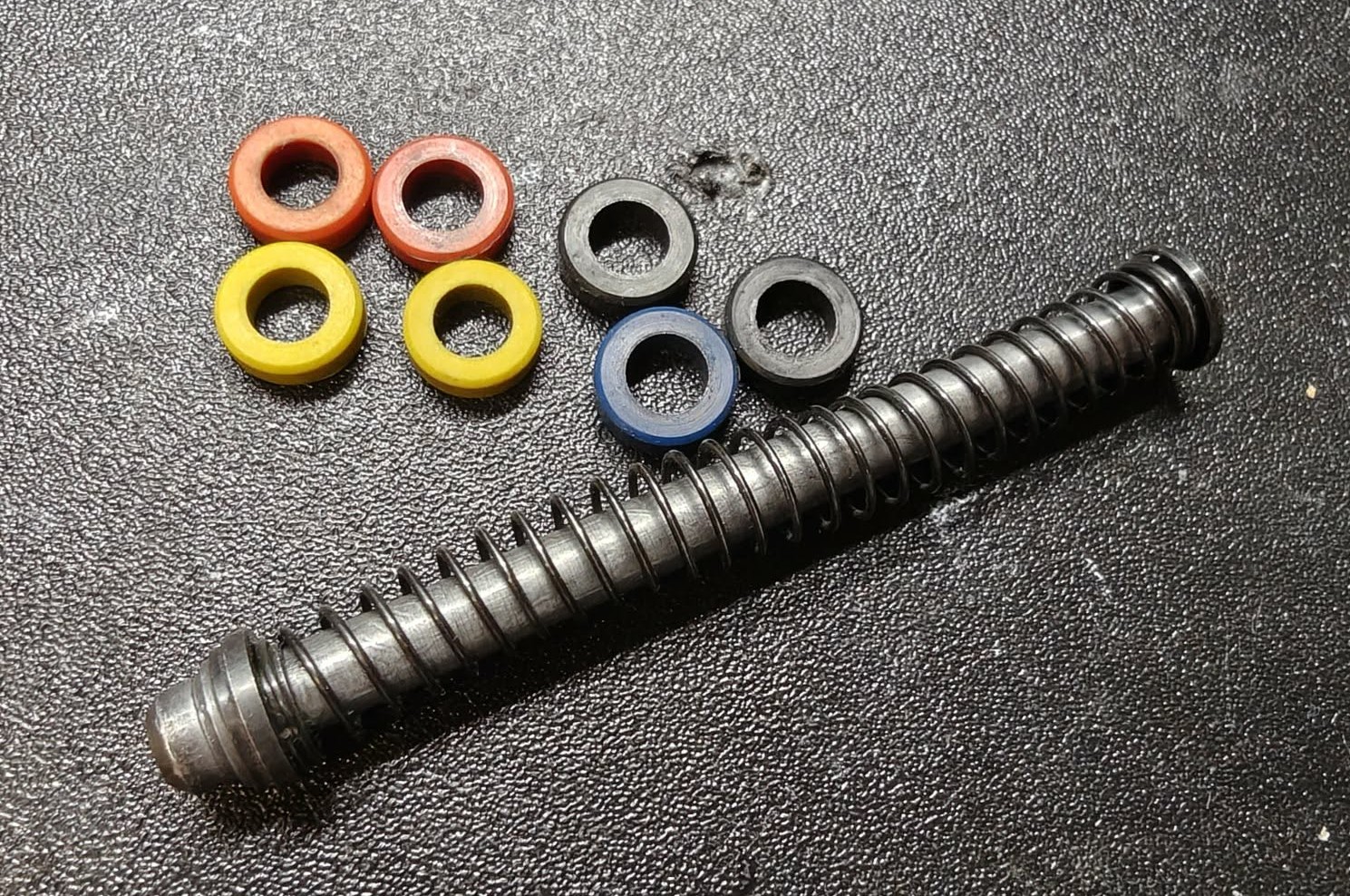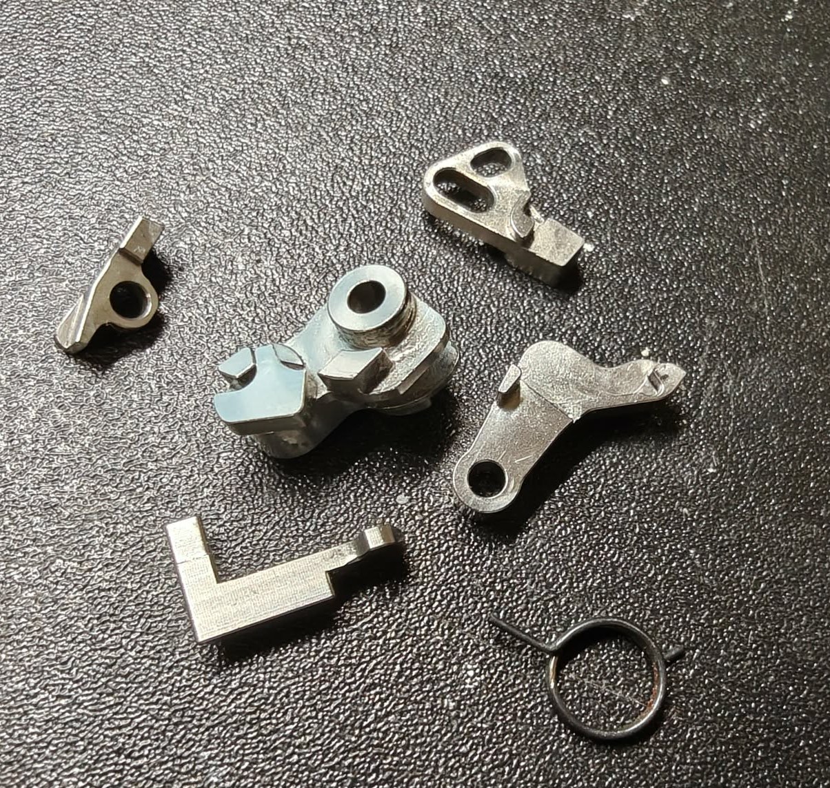 Części pochodzą z Tokyo Marui G18 i z tym standardem są zgodne. Część elementów jest zgodna również z Glockiem 17 TM oraz AAP-01. Proszę mnie nie pytać czy pasują do WE itp - research we własnym zakresie. Stan jak na zdjęciach, na życzenie doślę dokładniejsze. 1. Zamek i lufa zewnętrzna GunsModify - aluminium z pełnymi oznaczeniami. Stan jak na foto. W komplecie tylko i wyłącznie zamek i lufa - bez akcesoriów, selektora, sightsów, itp 150zł 2. Szczerbinka CowCow 18C - 50zł 3. Zespół młotka / hammer set CowCow - stalowe. Dodatkowo full auto sear od Guns Modify, lekko doszlifowane oraz sprężynka młotka Guarder (chyba 150%) 150zł 4. Komora HU Maple Leaf - 50zł 5. Prowadnica sprężyny powrotnej + sprężyna Guarder (jest mocniejsze od stockowej, ale nie pamiętam ile %) + short stroke CowCow (7 oringów) 70zł 6. Frame / korpus GunsModify Polymer Gen3 RTF Frame for TM G-Series (Black) W zestawie sam frame i płytka z numerem seryjnym. 100zł 7. Spust TTI srebrny AAP-01, ale pasuje do glocków - 50zł 8. Adapter HPA JV-Tactical (obecnie ZZZ) + magazynek Tokyo Marui + uszczelka LL/Nineball. Złączka US. Wszystko sprawne, leży prawie 3 lata, więc warto przesmarować, bo nie mam jak sprawdzić szczelności 300zł