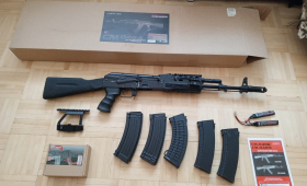 Replika M4 wykonana z metalu. Używana na kilku strzelankach. Dmucha ok. 1.5J na kulkach 0.30g. W środku jest wymieniony kompletny gearbox na Aether (mosfet HAL) oraz gumka Madbull niebieska. Do zestawu daje 4 magazynki mid-cap. NIE MA BATERII ORAZ ŁADOWARKI!! DORZUCAM UCHWYT PRZEDNI !!! !!! CENA NIE PODLEGA NEGOCJACJI, WYSYŁKA DO UZGODNIENIA!!!