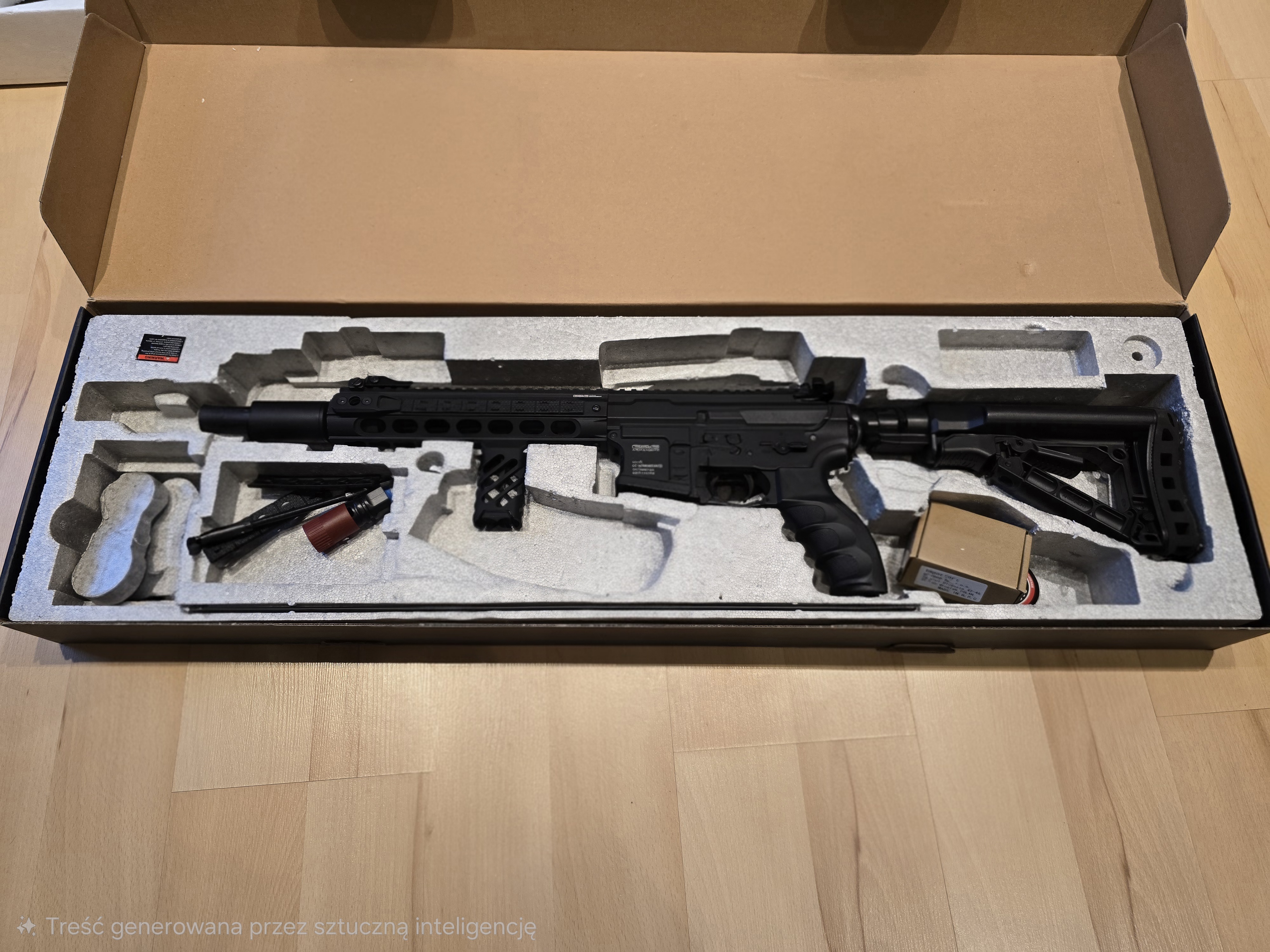 Replika działa bez zarzutu, stabilne 1,3J, trzyma parametry producenta. Nie rozbierana, nie rozkręcana, wszystko seria. Swietna szybkostrzelność, korpus metalowy. Magazynek seryjny posiałem gdzieś w lesie, natomiast te 4 co są to podają bez problemu, nawet Hi-Cap z Cymy ;) Dodaje dwie baterie 3S samoróbki na przetestowanych ogniwach wysokoprądowych, pojemność w granicach 1100mAh, każda z nich starczała na ok 2-3h strzelanki. Dorzucam 3 magazynki mid cap, dwa tłumiki, seryjny kompensator, podstawową szybkoładowarkę, rękojeść na szynę oraz ew. kolimator. Świetna baza do tuningu. Posiadam sporo innego szpeju i replikę Cymy w innych ogłoszeniach, zapraszam :)