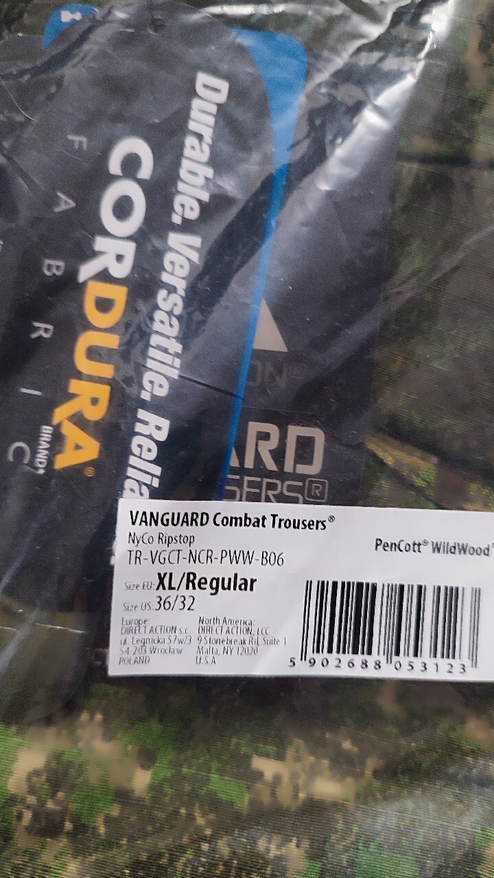 Sprzedam nowe spodnie taktyczne Direct Action Vanguard Combat Trousers - PenCott WildWood w rozmiarze XL Regular. Nieudany prezent, jako że pozostaję wierny ATACSowi. :) 440 z uwzględnionym paczkomatem + dorzucam losową naszywkę