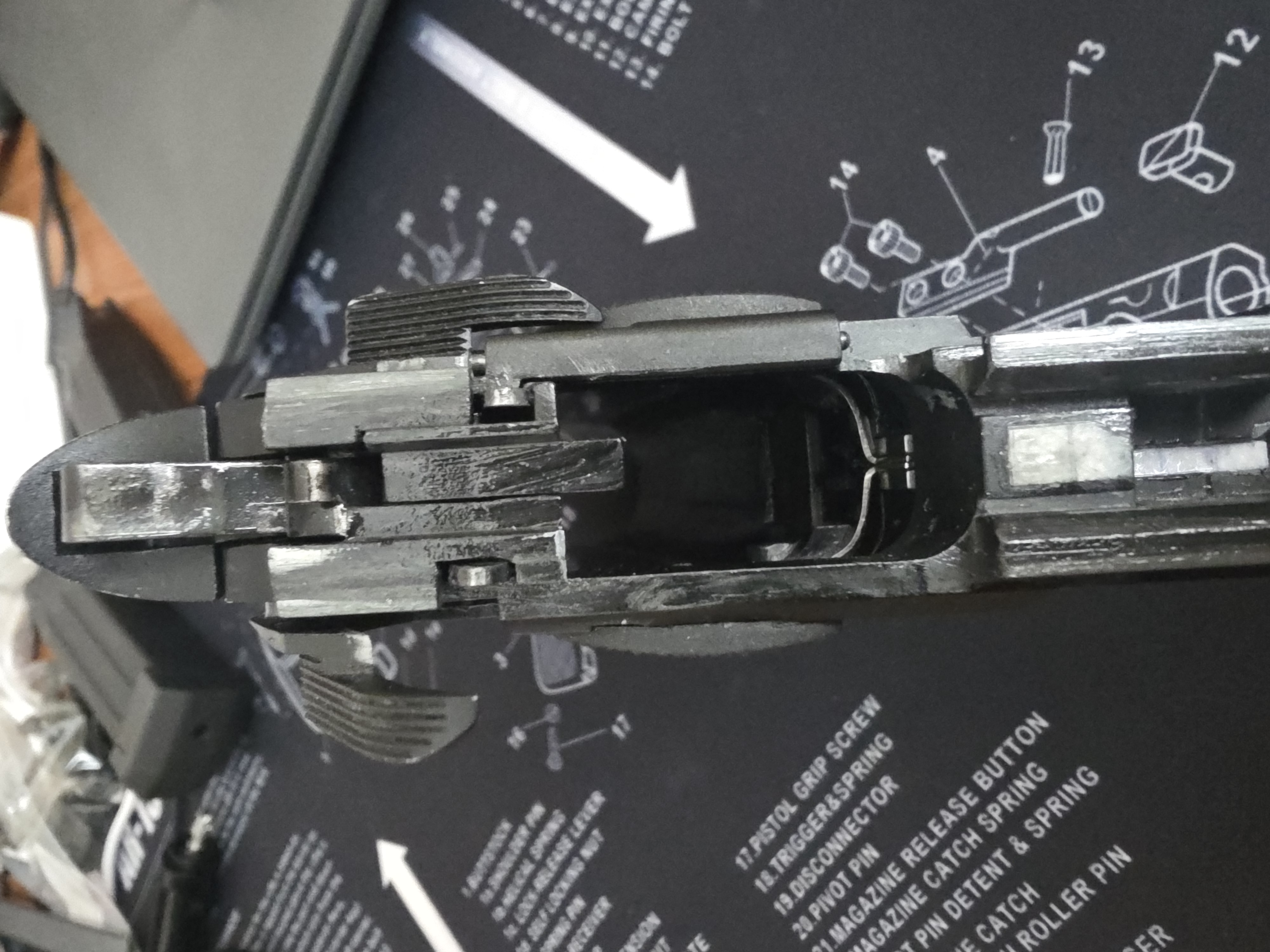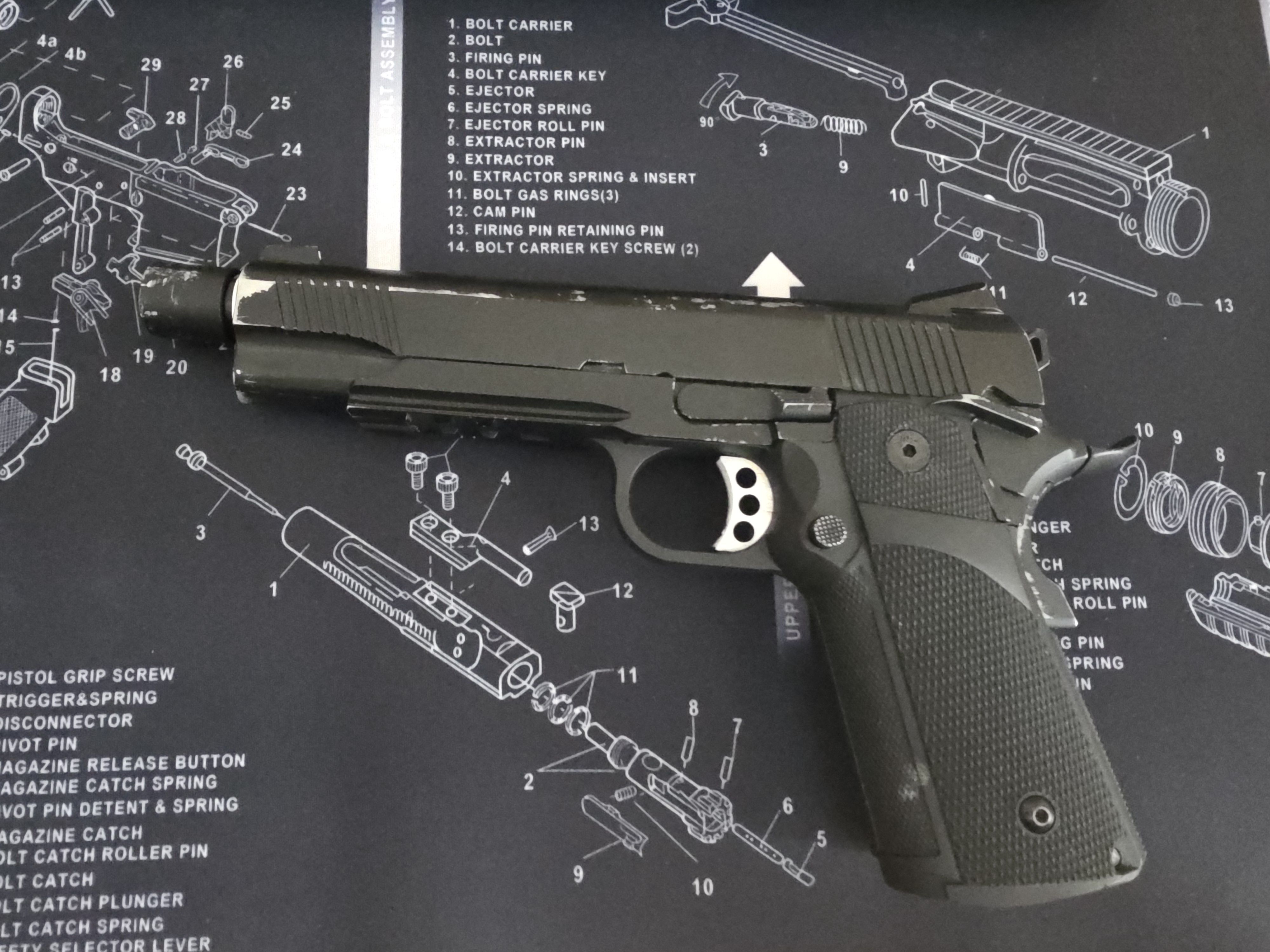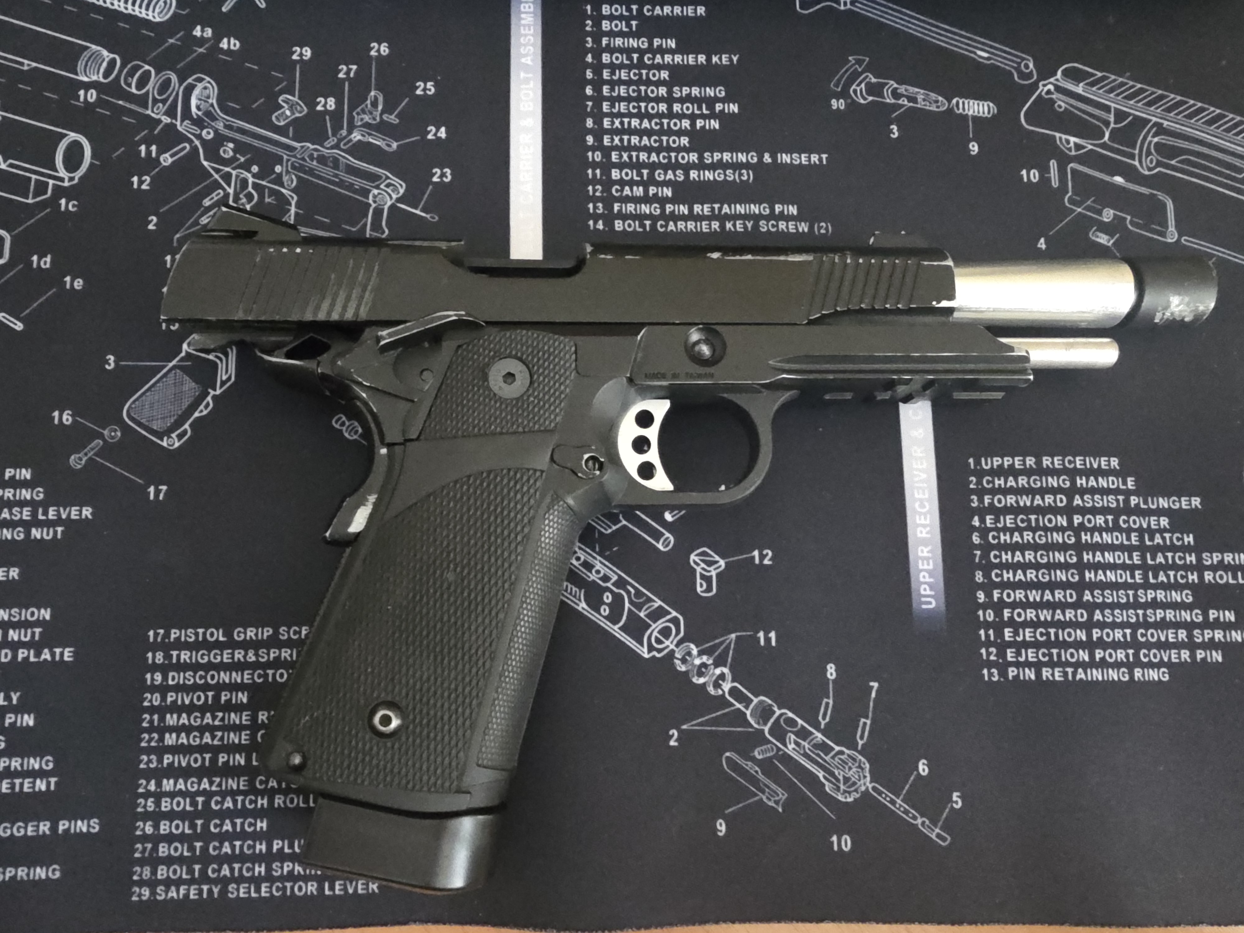 KP-05 od KJW w wersji C02, stary wypust. Zewnątrz nie wiele, dodany tylko "gwizdek" wkręcony w lufę zewnętrzną z dwoma zakończeniem. Niestety ślady wytarcia od kabury. Wewnątrz: - nowa dysza od KJW dedykowana - komora guarder - kółko regulacji maple leaf - docisk ikey - ramie docisku maple leaf - gumka maple leaf, ale jaka to za czort nie pamiętam - nowa lufa wewnętrzna ZCI 113m 6.02mm - całe stalowe bebechy: hammer, sear, zbijak idt. - wszystkie nowe sprężyny - zawór dyszy cowcow - głowica tłoka ice break posejdona 14mm (czerwona) - komora na stałe przymocowana na lufy zewnętrznej W zestawie zapasowe sprężynki, głowica tłoka od krakena, hammer oraz nowa gumka flamingo 50 gen.3 Cztery magazynki, z czego jeden C02 i trzy na GG Kabura uniwersalna Cytac z mocowaniem od Amomax. Dwie płetwy do pasa. Coś tam pewnie jeszcze sie znajdzie o czym zapomniałem napisać. Jedyny minus brak srubki w szczerbince, ale jest porządnie wklejona 500 plus kw. Link do allegro lokalnie https://allegrolokalnie.pl/oferta/kjw-kp05-gbb-c02