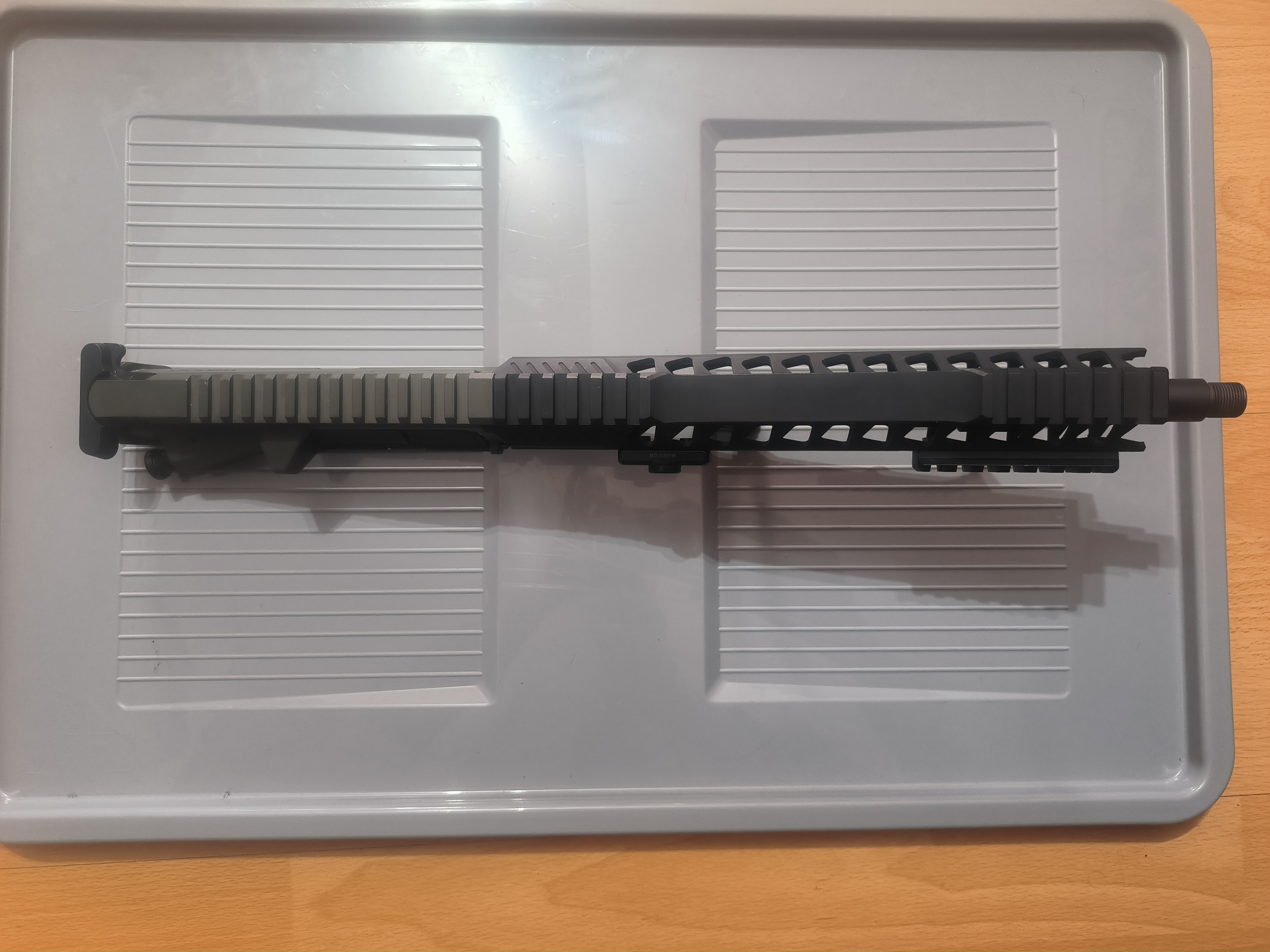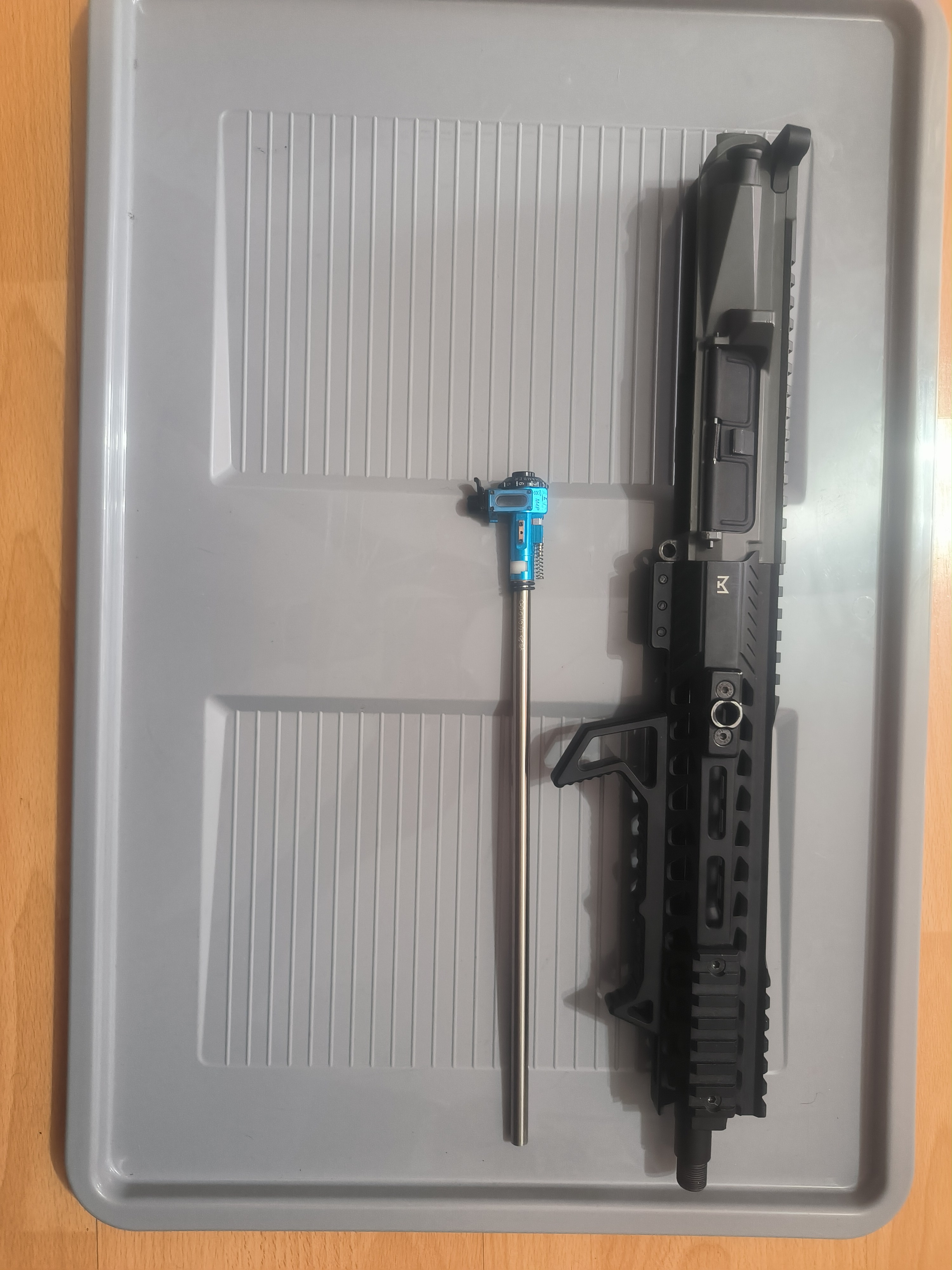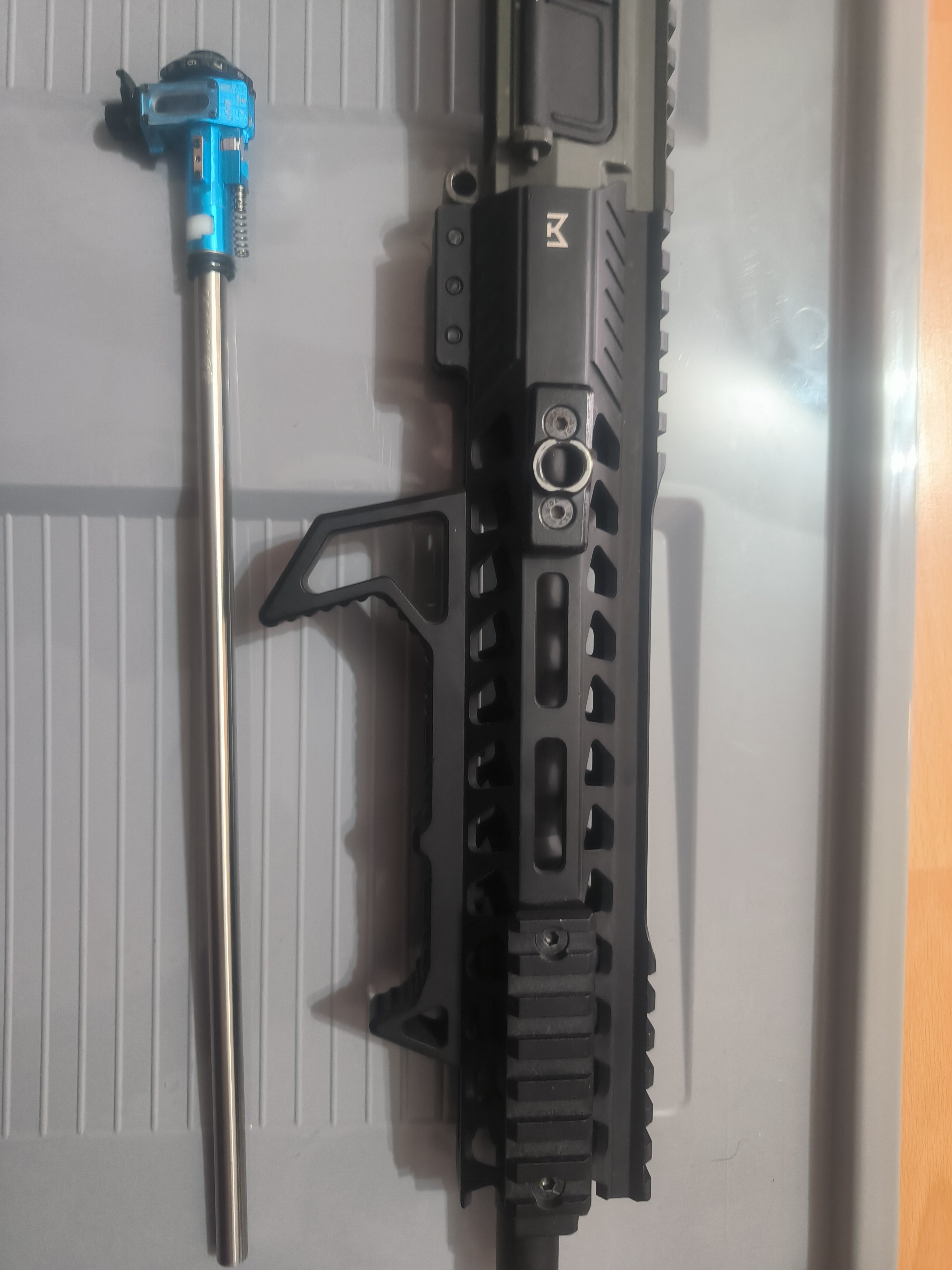 Na sprzedaż gotowy zestaw uppera pasujący do krytaca Zestaw składa się z: Upper krytac trident mk2 Front delta armory 10" Blok gazowy i atrapa rury Krytac Lufa zewnętrzna 5KU Komora maxx Lufa wewnętrzna Da Vinci 6.01 300mm Gumka 4uad podana cena jest z wysyłką