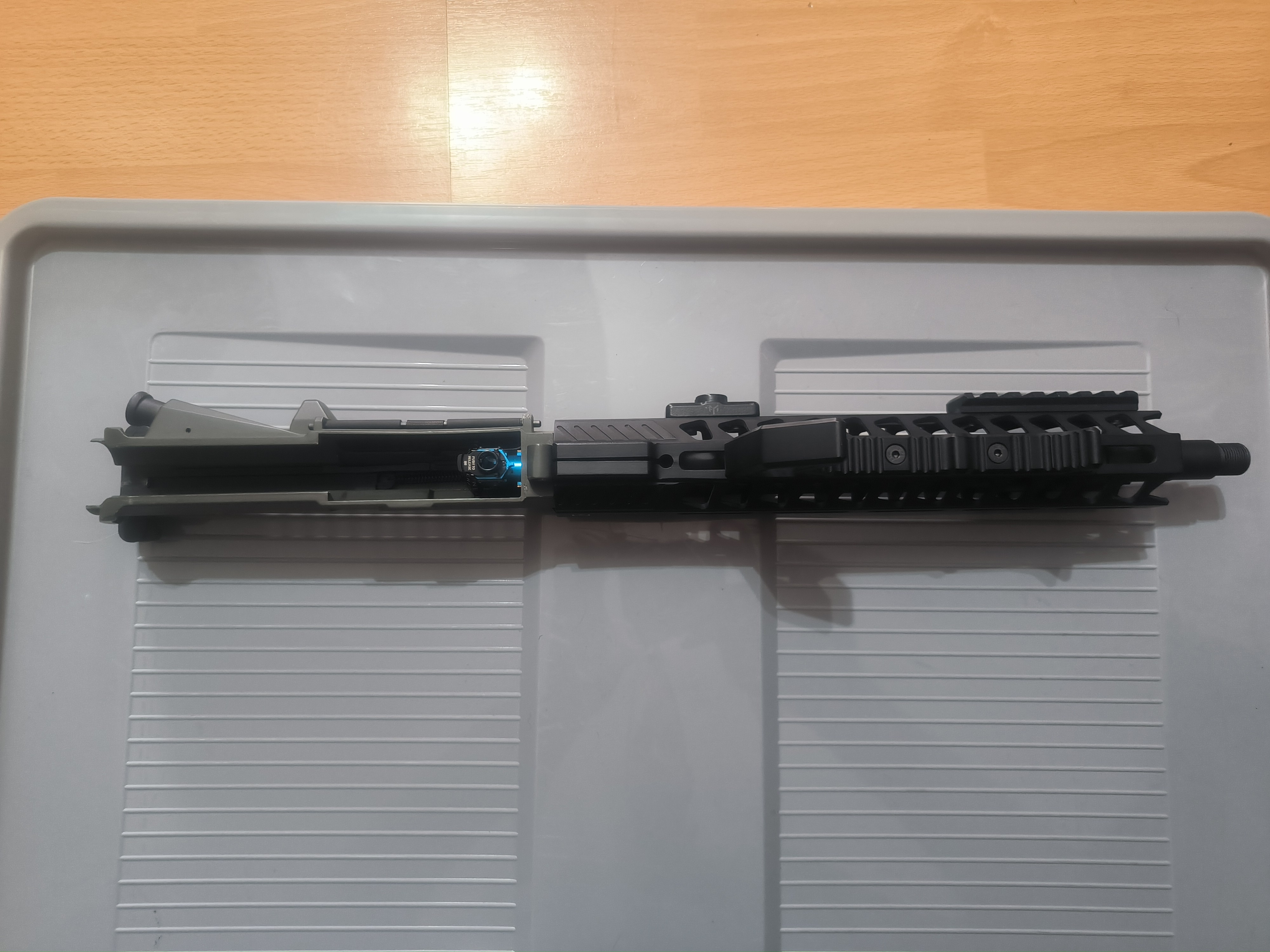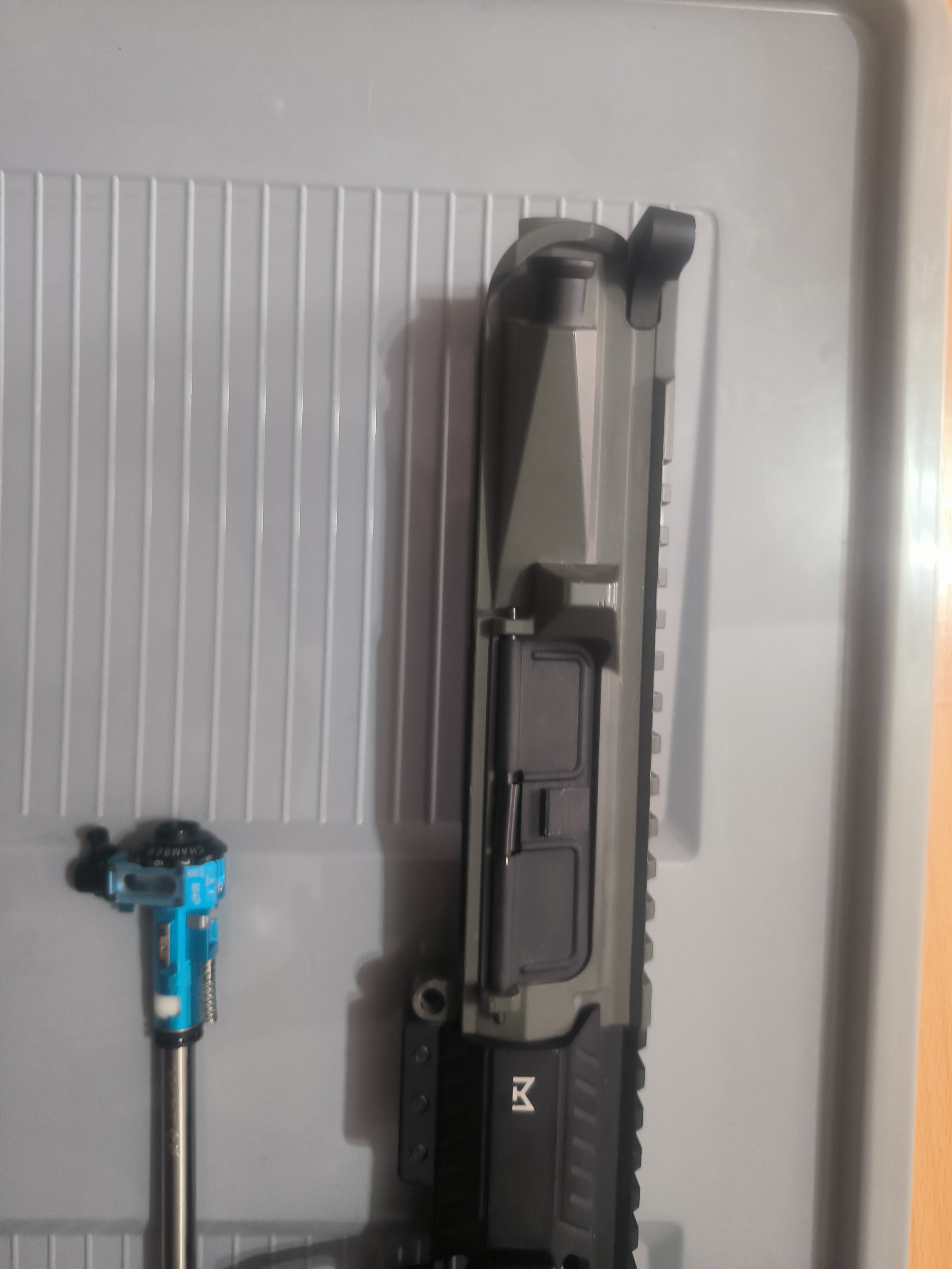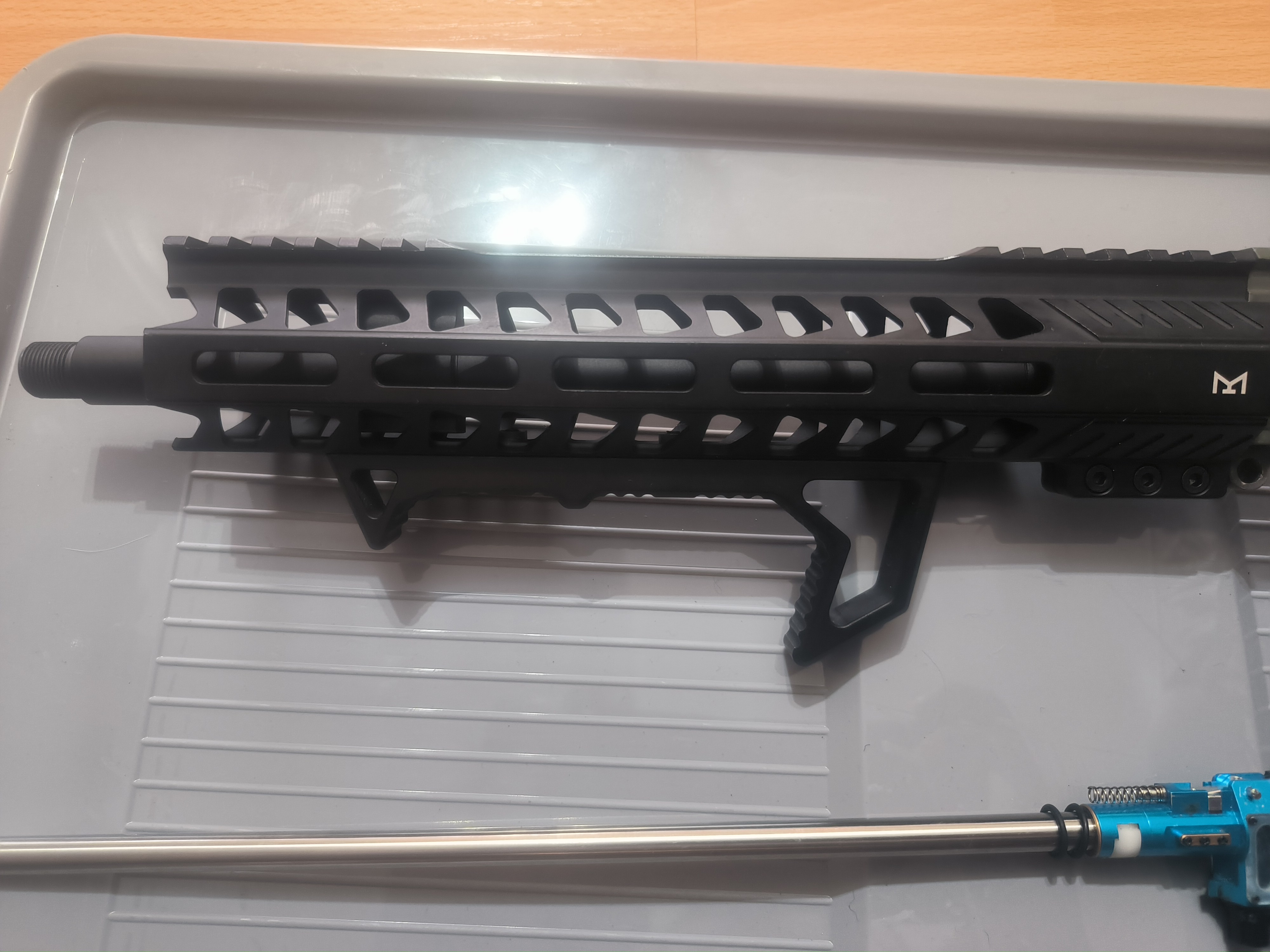 Na sprzedaż gotowy zestaw uppera pasujący do krytaca Zestaw składa się z: Upper krytac trident mk2 Front delta armory 10" Blok gazowy i atrapa rury Krytac Lufa zewnętrzna 5KU Komora maxx Lufa wewnętrzna Da Vinci 6.01 300mm Gumka 4uad podana cena jest z wysyłką