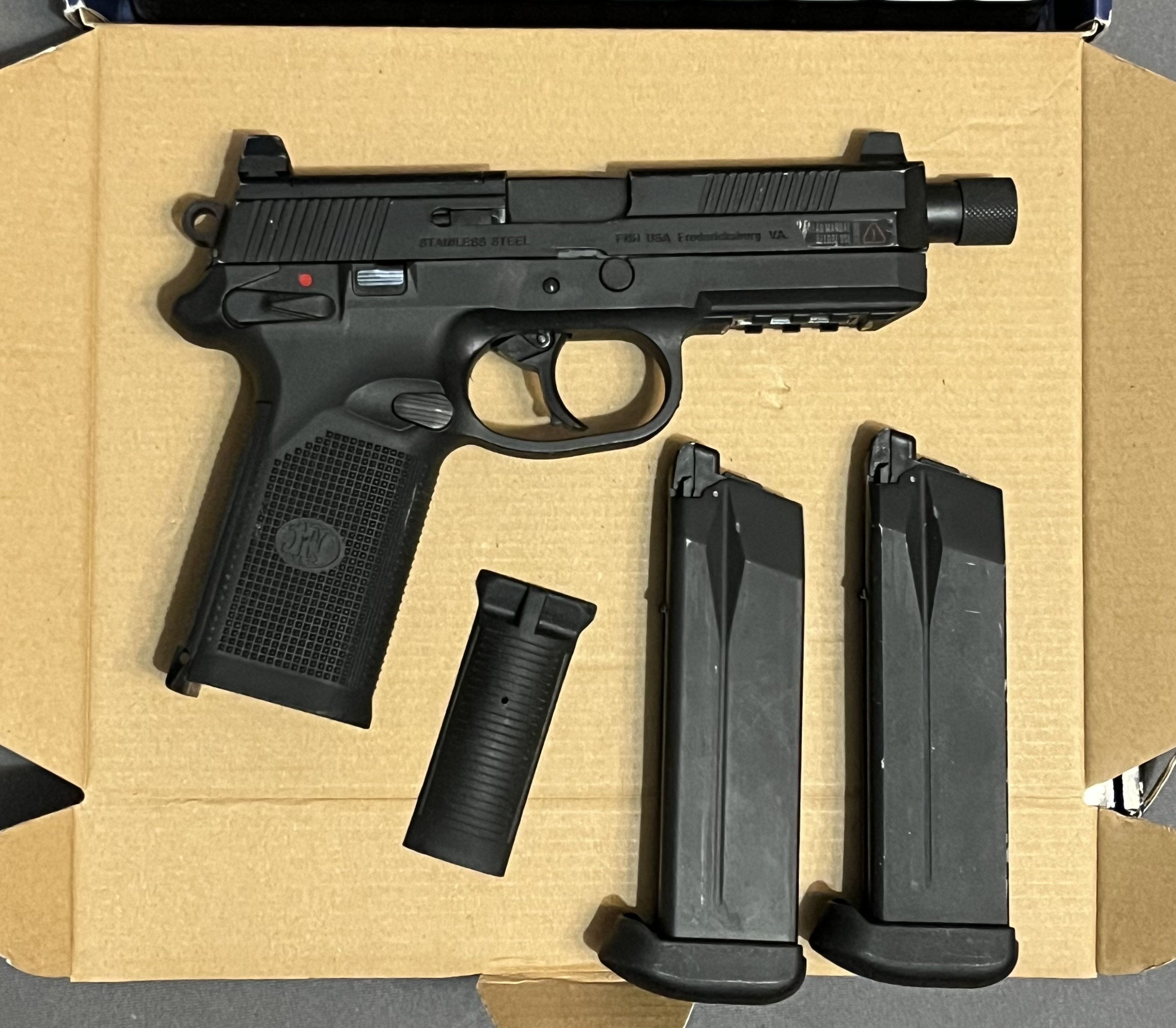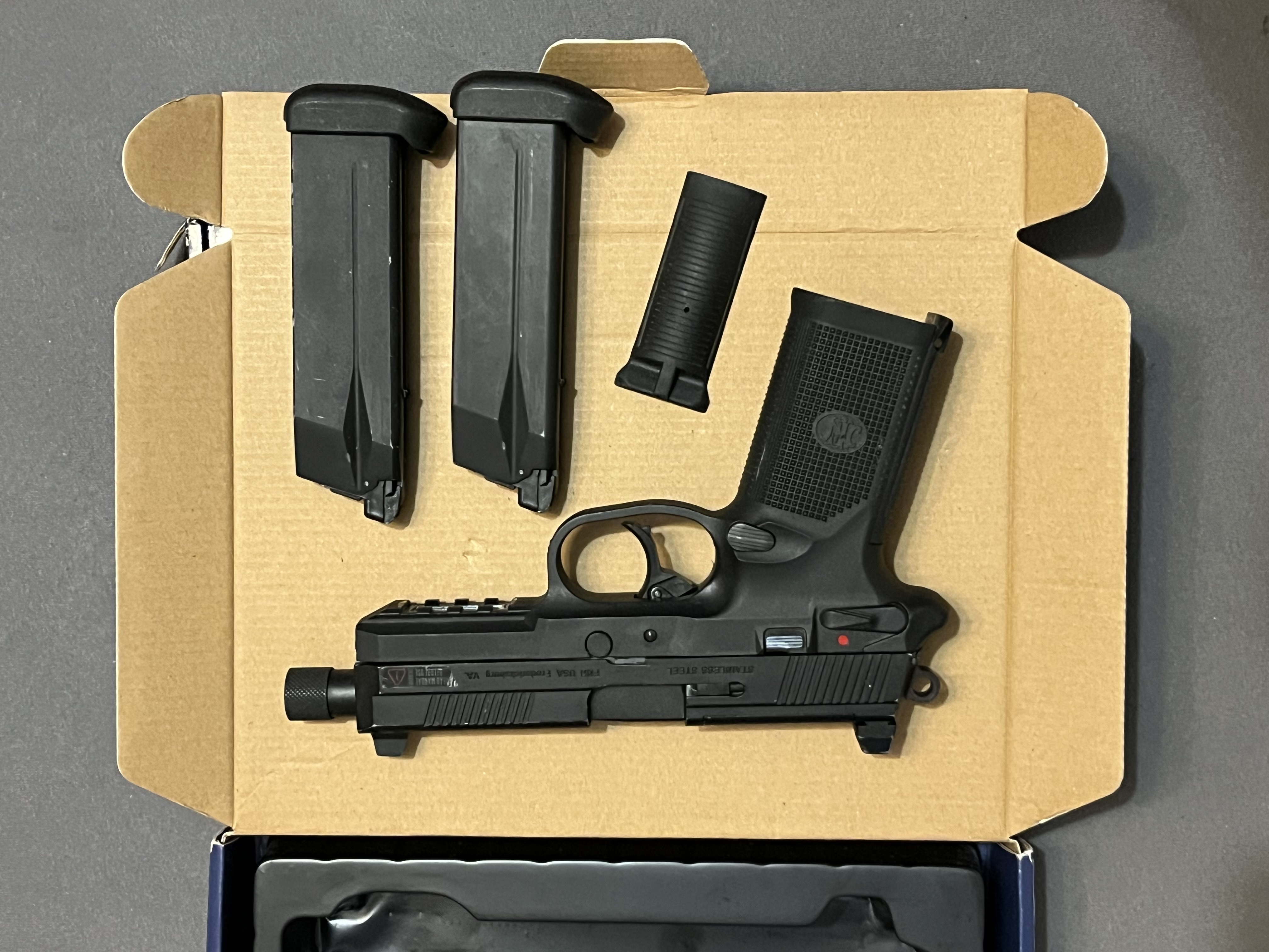 Wystawiam replikę pistoletu fnx45 produkcji cybergun/vfc w wersji taktycznej. W środku wymieniona była gumka oraz oring na głowicy tłoka. Pistolet w pełni sprawny, magazynki strzelne (nie ciekną, nie puszczają gazu). W zestawie: • replika pistoletu • 2 magazynki na green gas • Powiększona dokładka chwytu pistoletowego • Oryginalne pudelko