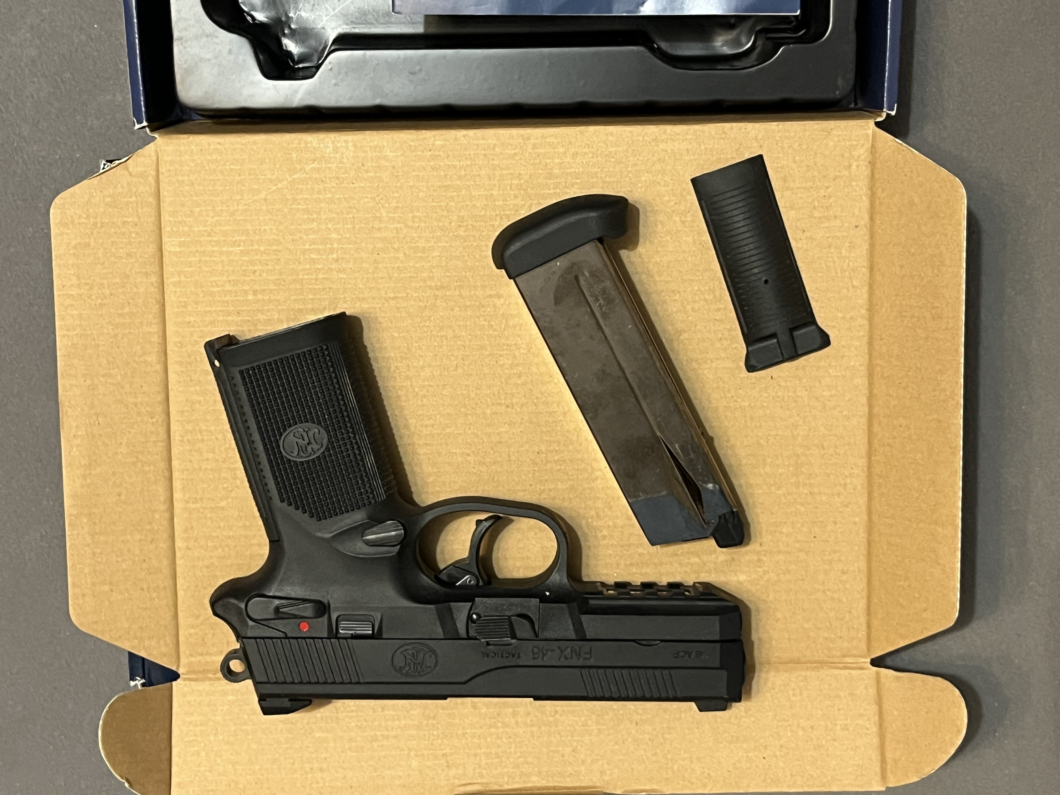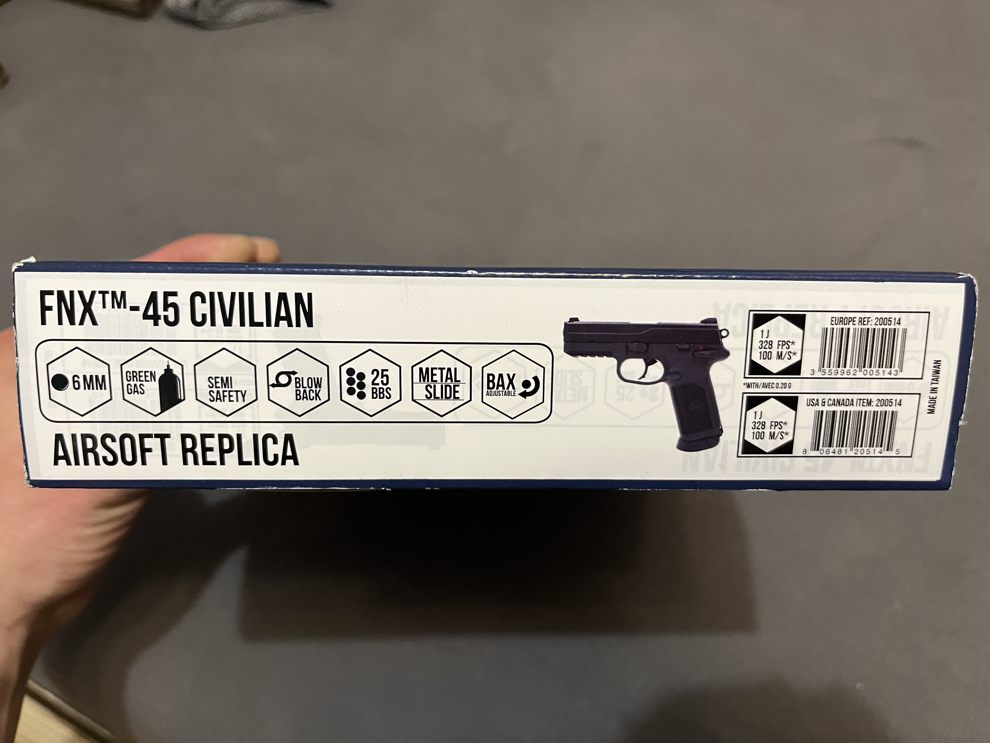 Na sprzedaż leci replika pistoletu FNX45 od Cybergun/VFC w wersji cywilnej. Pistolet strzela aczkolwiek na pewną wadę fabryczną mianowicie przy strzelaniu i naciśnięciu spustu pod kątem potrafi się zamek przyciąć i nie cofnąć do tyłu. Przy prawidłowym naciąganiu spustu replika strzela bez najmniejszych problemów. Stąd taka też cena. Pistolet miat służyć wstępnie jako zapas części do drugiego pistoletu jaki znajduje się na innej aukcji ale było potrzeby wyciągania jakiejkolwiek części, śrubki czy sprężynki. Magazynek bez wycieków czy puszczania gazu. W zestawie: • replika • Oryginalne puderko • Magazynek chromowany • Powiekszona dokładka chwytu pistoletowego