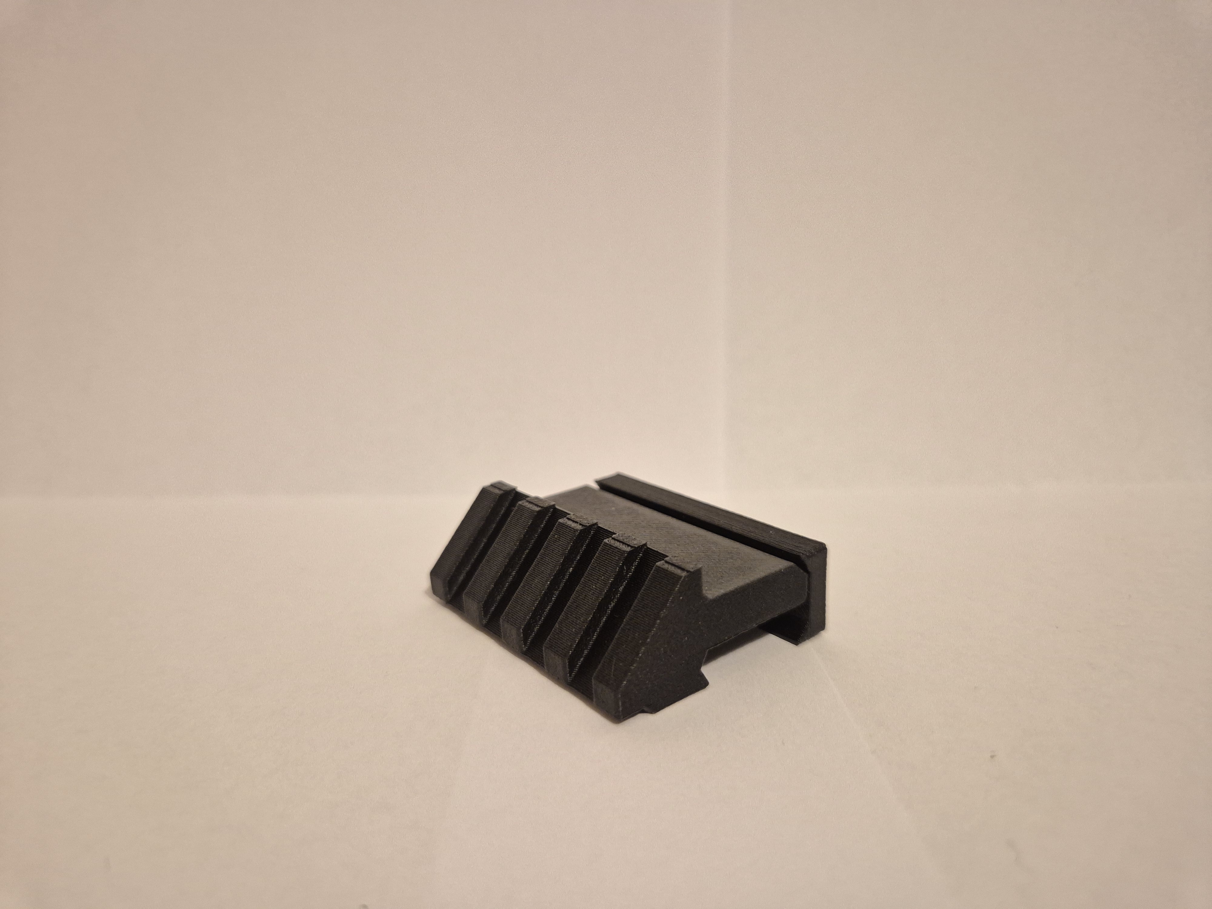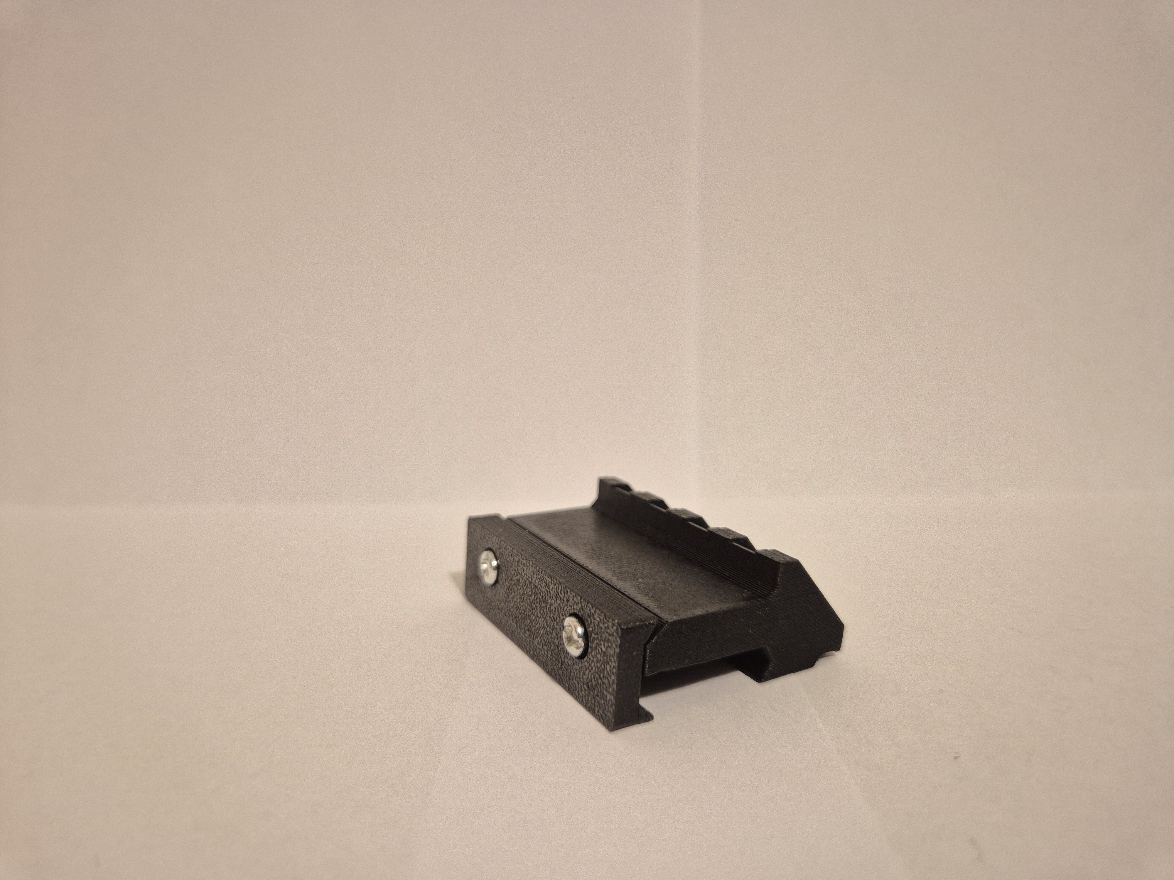 Moduł kątowy do celownika/latarki. - Montowane na standardową szynę RIS. - Długość: 4.5cm - Kąt pochylenia: 45 - Materiał: (PETG) Moduł nowy, oferta zawiera: podwyższenie, zaczep, 2 śruby M3 Możliwość personalizacji modułu (kolor, kąt nachylenia, długość, montaż inny niż szyna RIS)