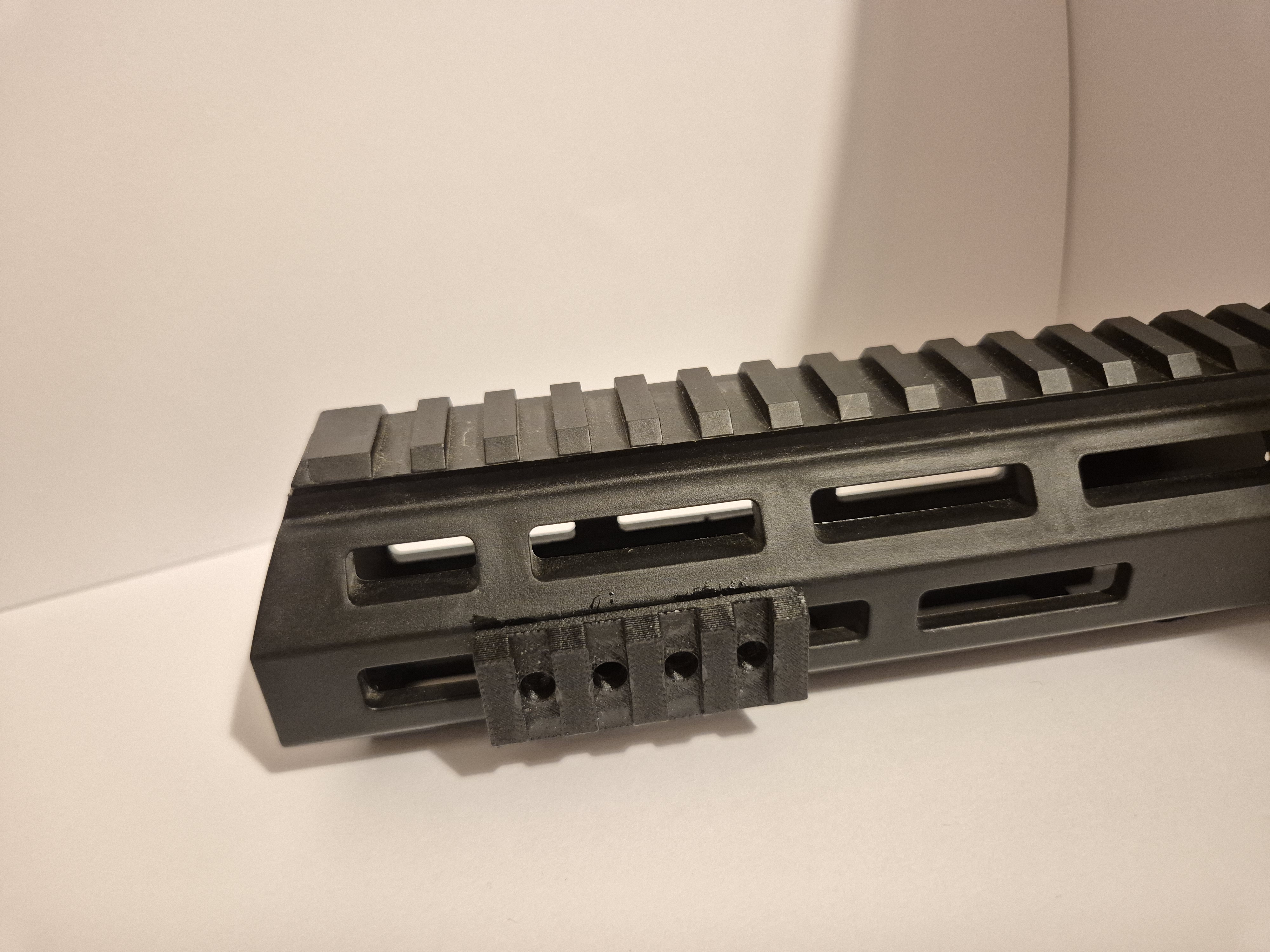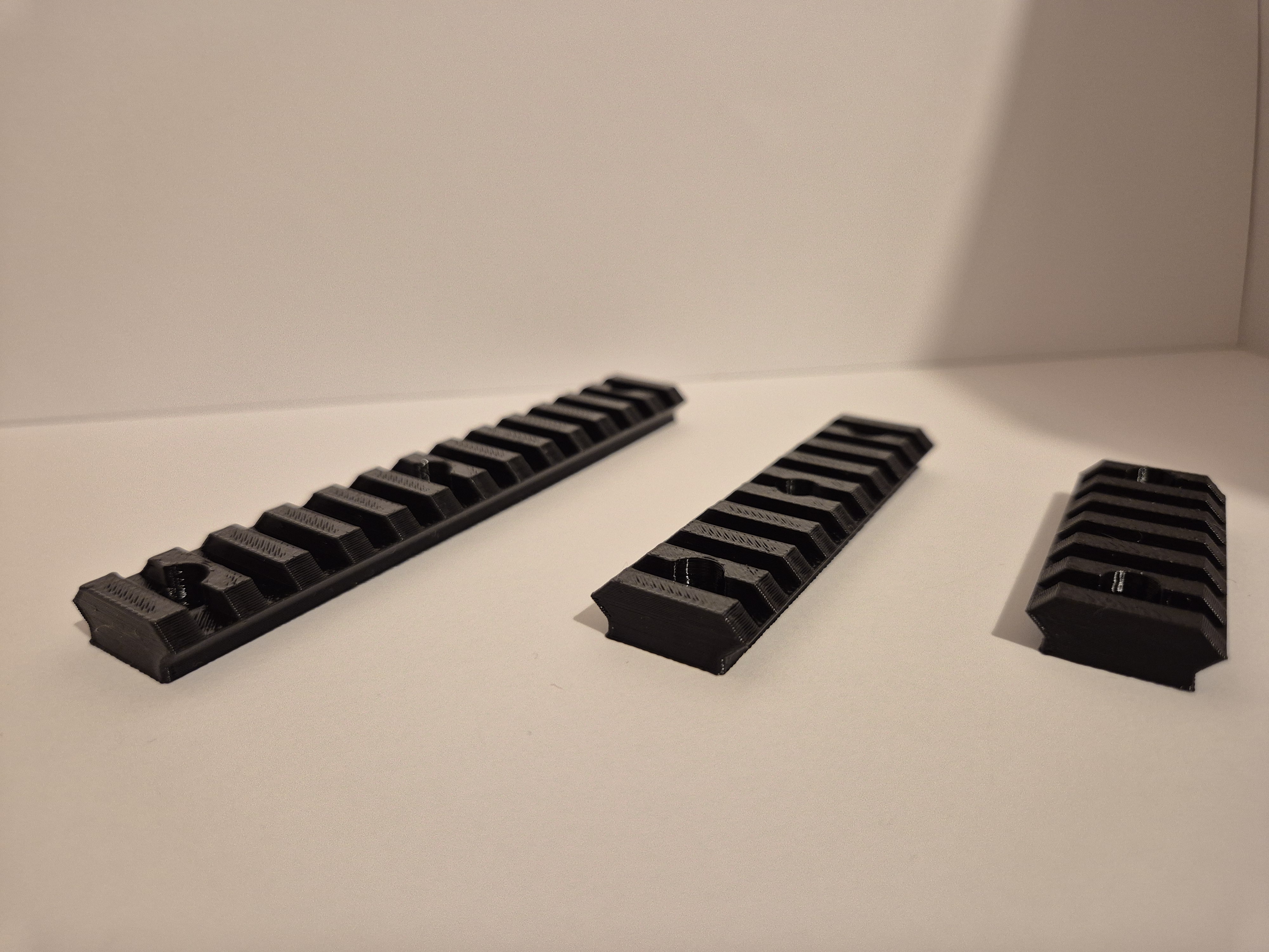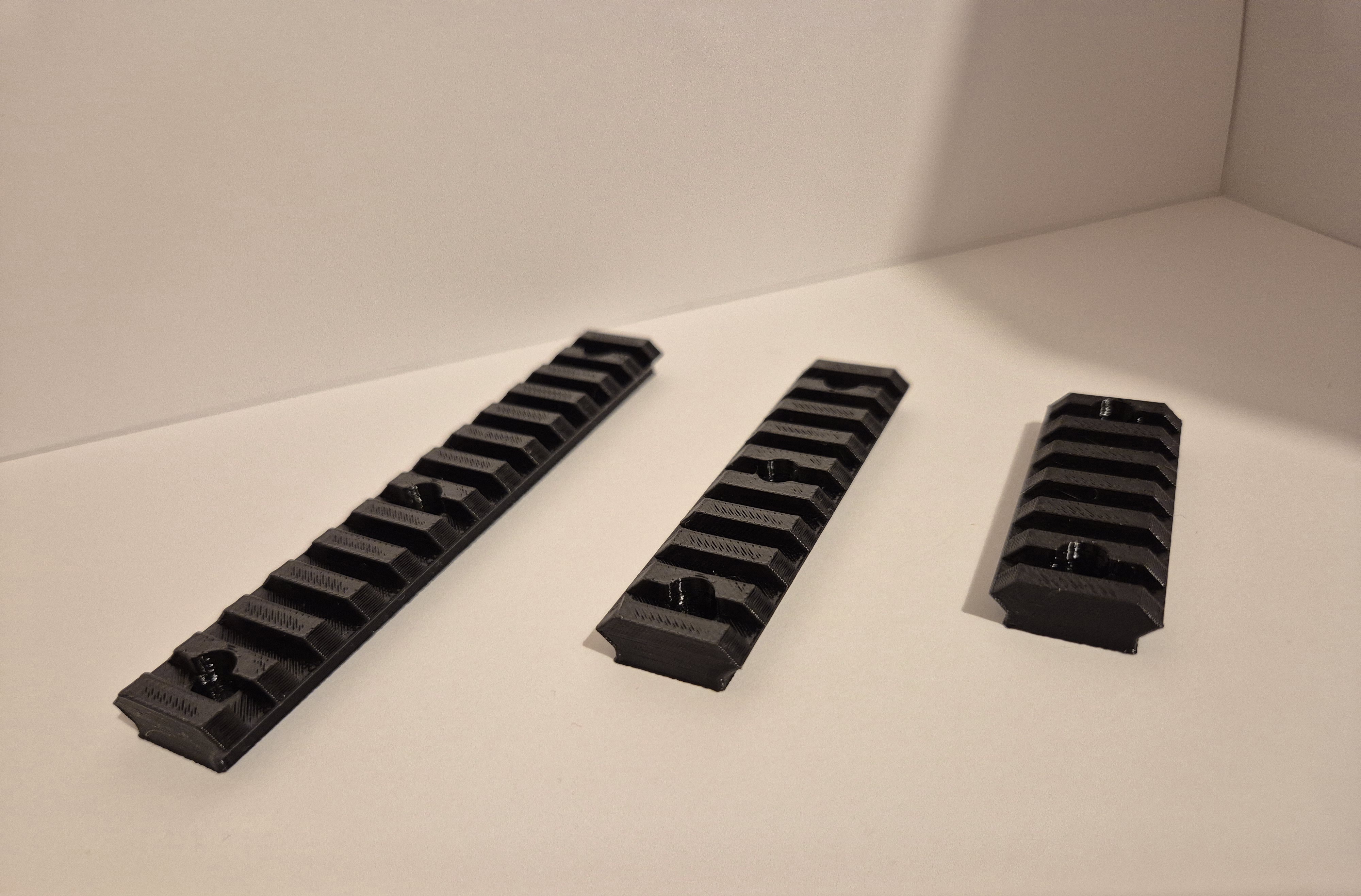 Montażowa szyna RIS firmy Hostruk dłogości: - 52mm (7 ząbków) - 76mm (10 ząbków) - 110mm (14 ząbków) Odległość pomiędzy ząbkami i grubość jednego: 4mm. Montaż na śruby do keymod, mocny klej lub taśmę. W zestawie: Wybrana szyna RIS Śruby Zaczepy na śruby Możliwość zamówienia szyny w różnych kolorach i wymiarach. Cena za najkrótszy moduł. Możliwość zamówienia szyn