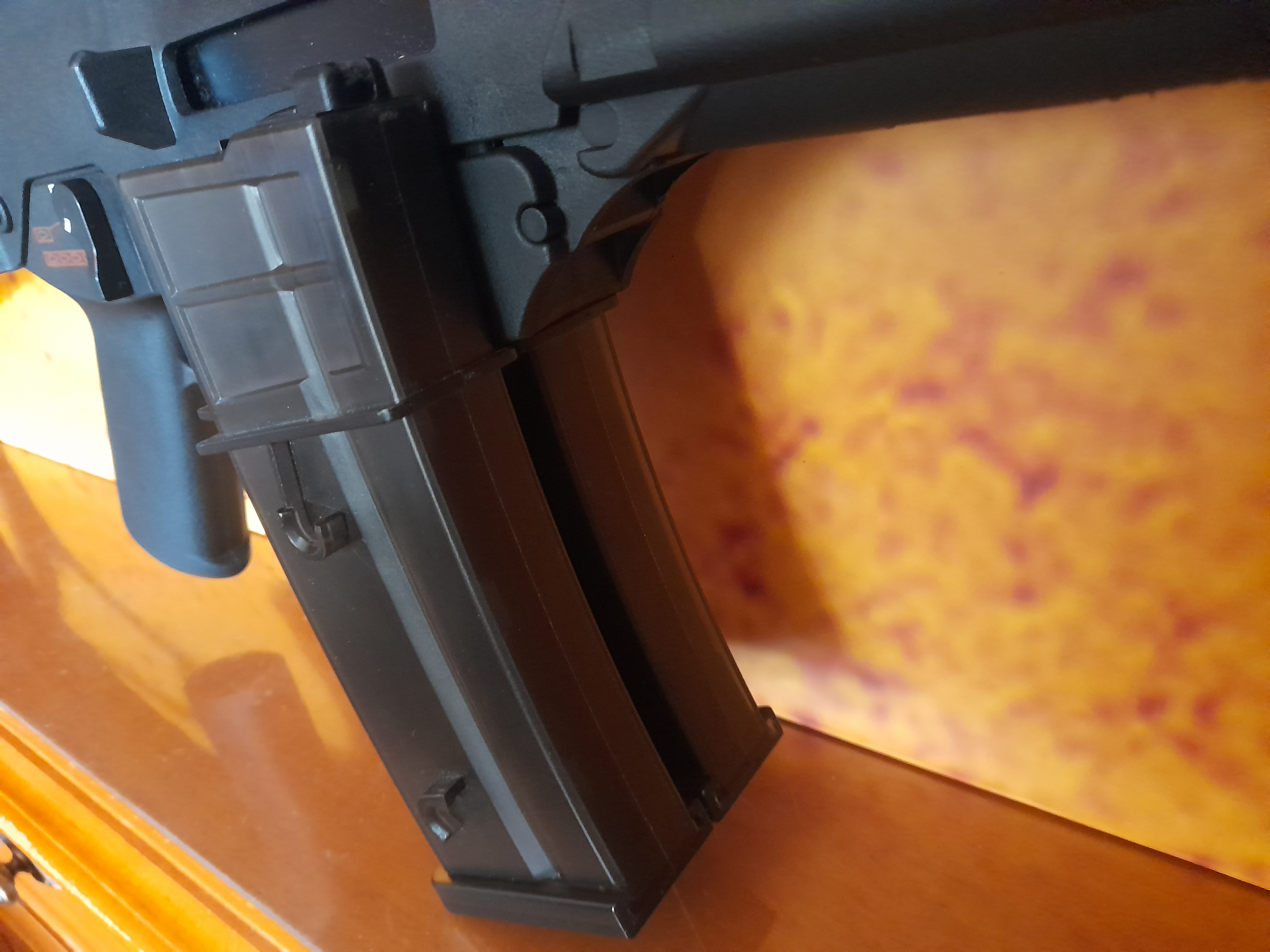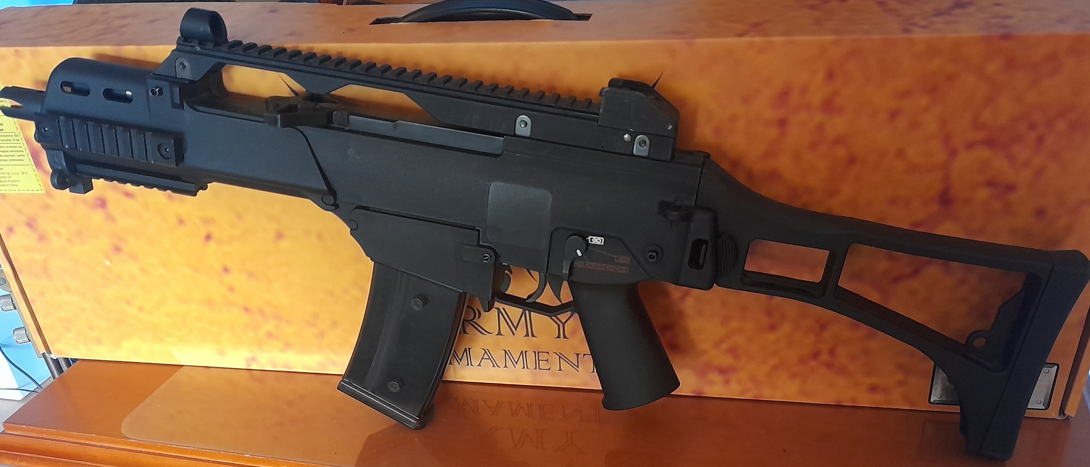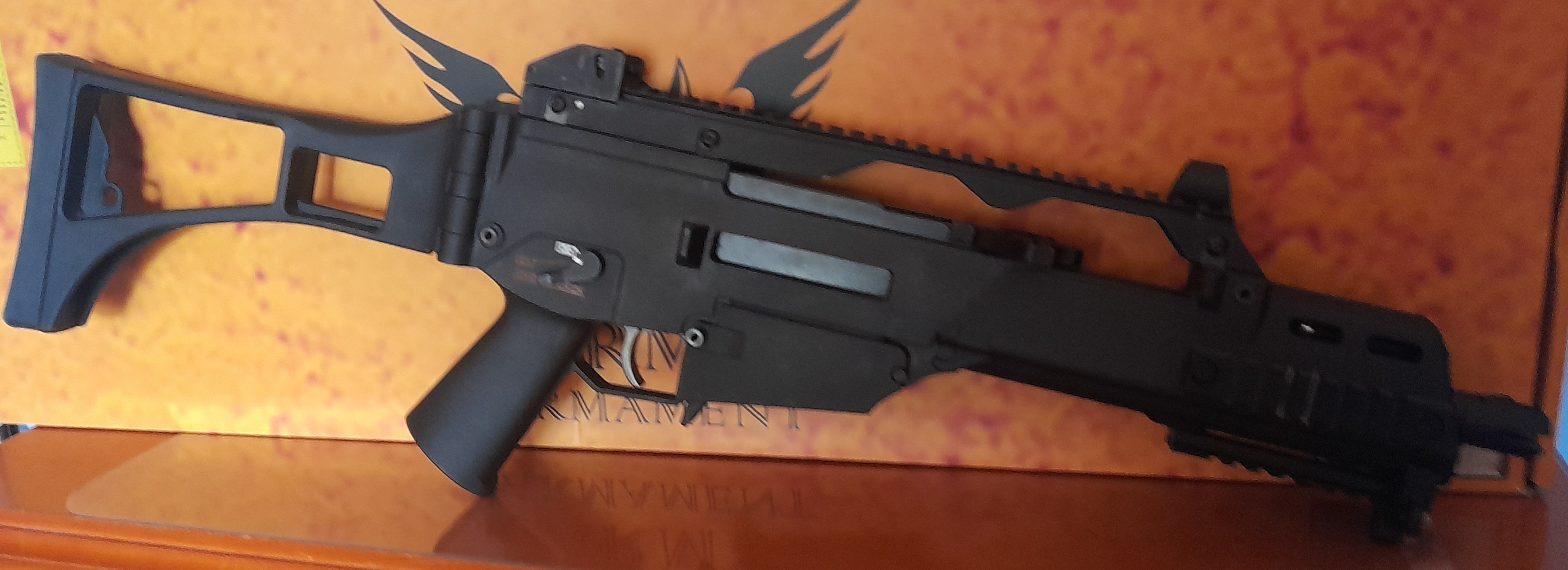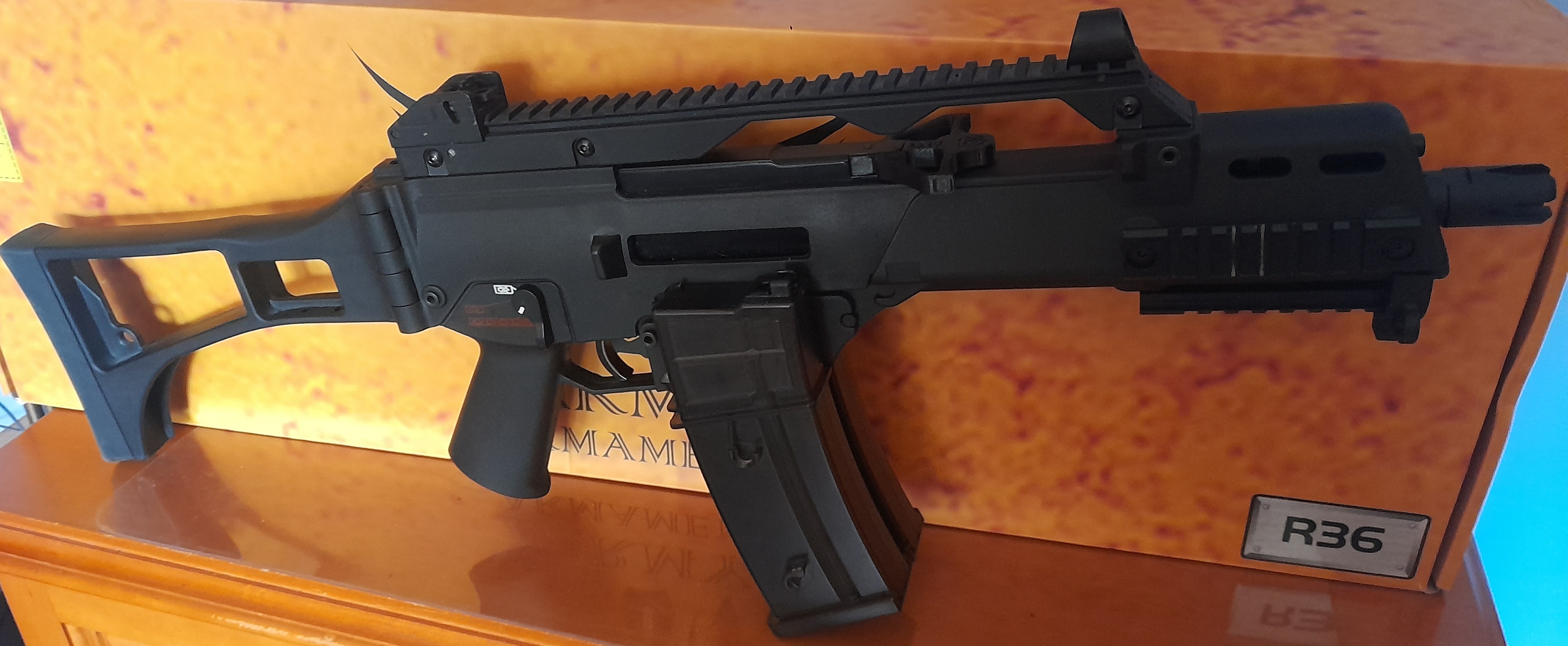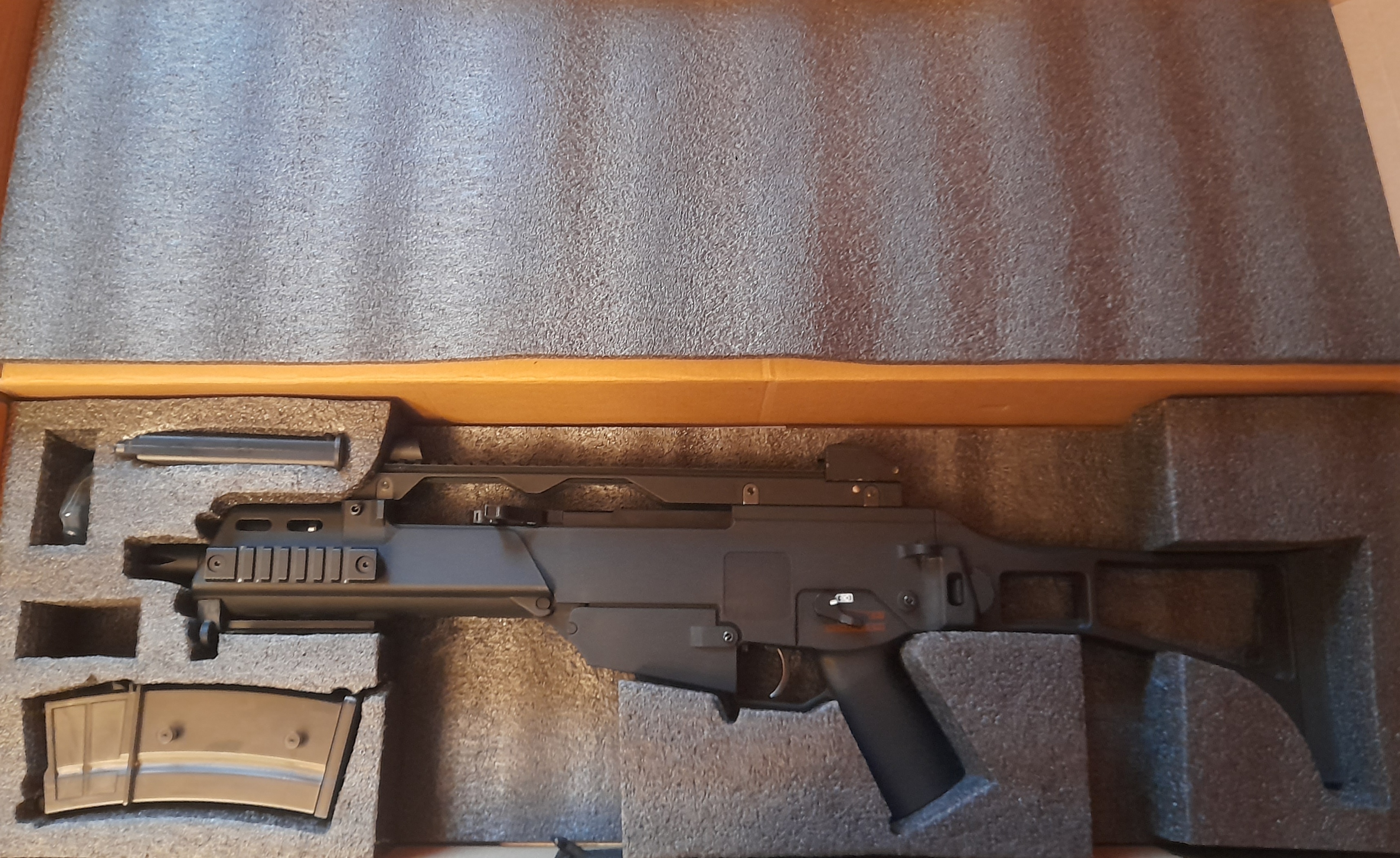 Replika od ARMY ARMAMENT niemieckiego karabinka firmy H&K G36C w wersji GBBR Kolor- czarny Gwint do tłumików- standardowy jak w większości airsoftówek Długość całej repliki- 550mm Średnica lufy wewnętrznej- 6,04mm Długość lufy wewnętrznej- 225mm Numer seryjny- jest Rodzaje ognia- Ciąhły (full-auto) i pojedynczy (semi-auto) Napęd- gazowy Blowback- jest Moc- 1,2~1,34J 370fps Jak długo go mam- nówka sztuka kupiona parę dni po sylwestrze 2024/2025 nigdy wcześniej nie używany kupiony jako nówka bez poprzednich właścicieli Hop up- regulowany i łatwo dostępny nawet w trakcie strzelaniny asg poeinno być łatwo go przekręcić Typ amunicji najlepiej z tym pracujący- 23g/25g Materiały wykonania- aluminium stał polimer Szyny montażowe- 3 krótkie (2 po bokach 1 pod lufą) 1 główna z góry pełniącą też funkcje rączki do przenoszenia Przyżądy delownicze- Muszka I szczerbinka (zwykła lub przeziernik) Montaże na pasek- 1 obóstronny na kolbie 2 pod lufy na obie strony i 1 po prawej od perspektywy strzelającego na sierodku tuż przy kolbie (najbardziej przydatny) Magazynki- Materiał wykonania to głównie nylon można zpiąć razem pojemność to real cap czyli około 30 kulek BB z wbudowanym pojemnikiem na gaz jak w większości replik gazowych i z wejściem na dzióbek butelki od spodu z łatwymi do odsunięcia przykrywkami by się nie zatkało i zepsuło piachem gdy replika np. wypasnie z ręki czy w trakcie czołgania W zestawie- 2 magazynki ładowarka kulek z adapterem specjalnym do tych magazynków i rączka zamkowa Uszkodzenia- najgorsze to może lekko obdrapana farba z niektórych pinów ale nie tych głównych tylko ten od szczerbinki i rączki zamkowej a jedno z złużyta wkładka od jednej ze śrubek która trzyma w miejscu górną szynę gdzie starczą dwie ale dali 3 Więc te "uszkodzenia" wogule nie są poważne ani nie przeszkadzają w niczym Tuningi- jedynie rączka zamkowa została wymieniona z klasycznej odginanej na lewo i prawo na stałą wychyloną na obie strony wygodniejszą do złapania w rękawicach taktycznych lecz dołączona w paczce jest i oryginalny więc zaeszw se można znów wymienić a robi się to bardzo łatwo a wymiana nastąpiła z powodu bo tak poprostu mi się bardziej podobało Powody odsprzedania- nigdy za bardzo nie byłem fanem karabinków G36 lecz na wtedy to była najtańsza opcja by mieć gbbr lecz teraz poprostu zmieniam taktykę i potrzebuję innego rodzaju sprzętu Drugie to nie pasuje mi do szpeju i tylko tyle Żadne pozbywanie się uszkodzonego sprzętu tylko wymiana sprzętu bo gwarancja jeszcze jest więc uszkodzenia to nie problem dla mnie Do czego polecam- Pasuje elegancko do szpejów formozy, litewskich czy niemieckich wojsk Elegancko strzela w obu ogniach więc wsierodku bym nie tuningował Replika tania a takiej jakości że Niemiec płakał jak sprzedawał A moim zdaniem 500zł to uczciwa cena Gdyż kupiłem drożej Targować się za bardzo nie zamierzam bo jak się z tego bym miał targować to co by mi zostało? I tak nieźle zszedłem a coś z tego chciał bym mieć oryginalne opakowanie i wszystko co trzeba w nim jest