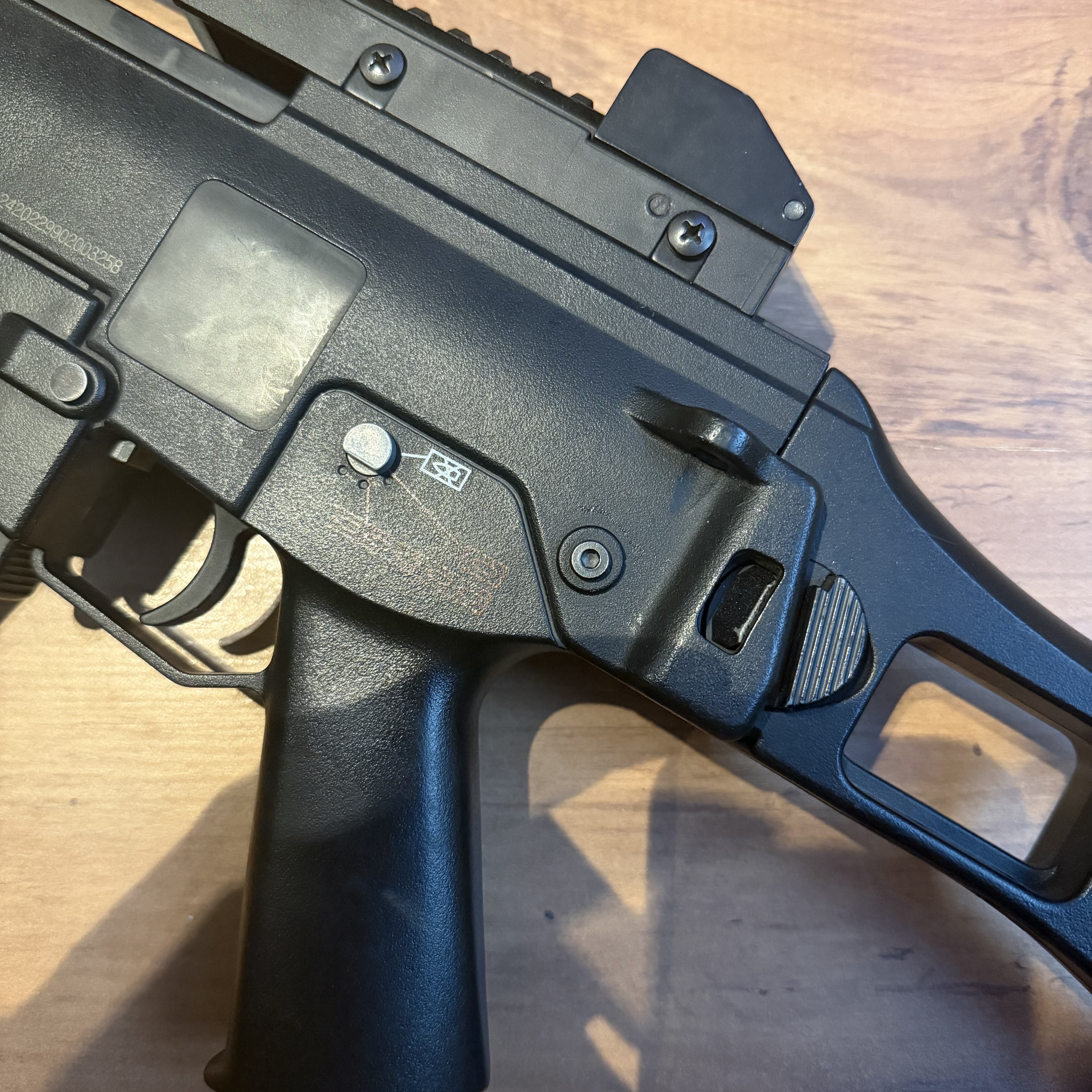Na sprzedaż trafia solidna i sprawdzona replika karabinka szturmowego G36C od Specna Arms (model SA-G12). Jest to egzemplarz z cenionej serii G, charakteryzującej się bardzo dobrym spasowaniem i wytrzymałością. Jedna uszczelka jest ułamana co widać na zdjęciu ale w niczym ona nie przeszkadza