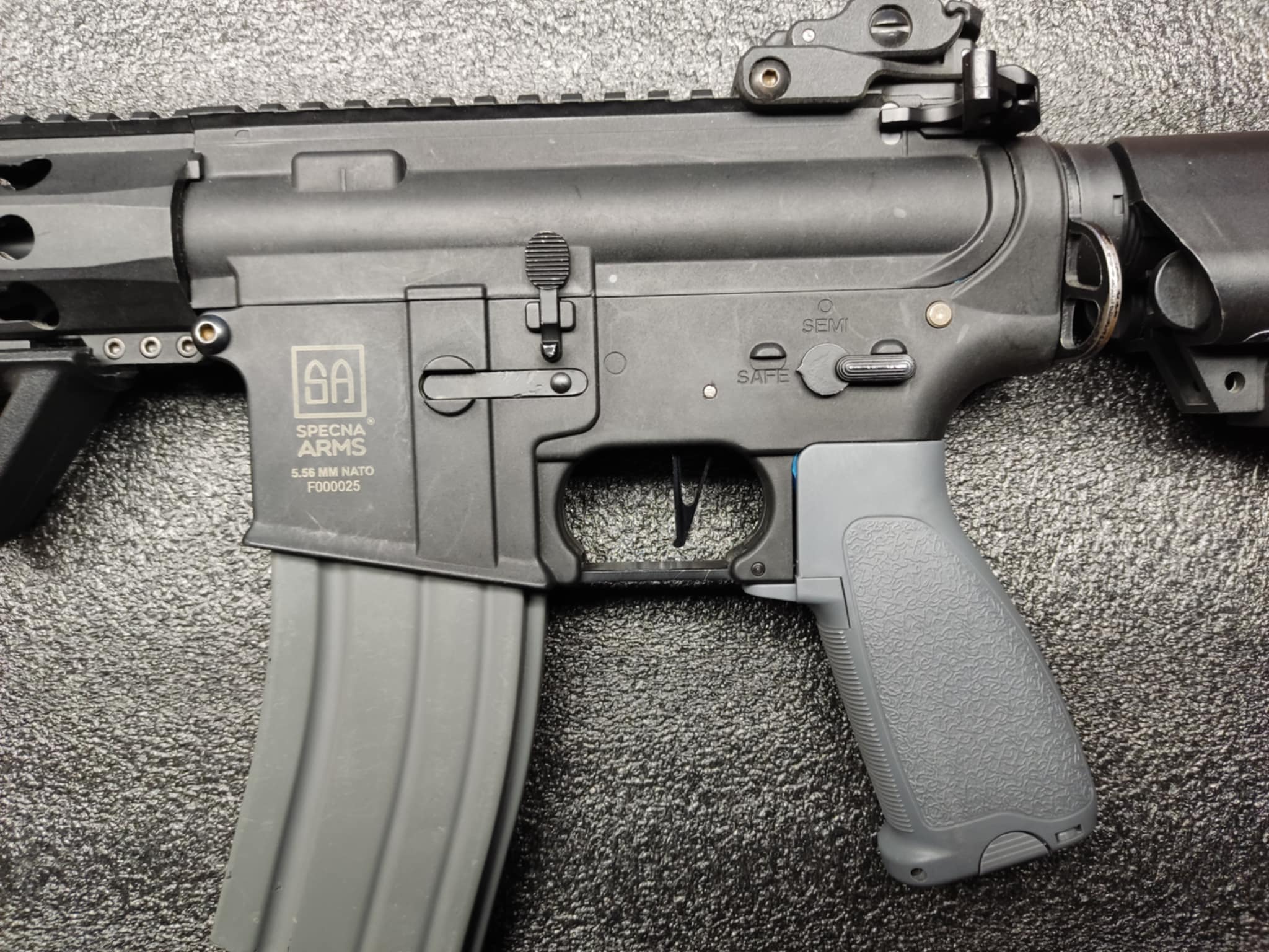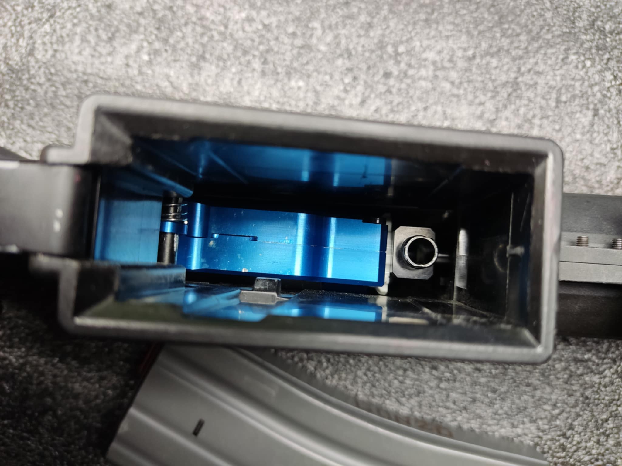 Specna flex , w środku: -silnik ultimate boost 30k -szkielet retro -łożyska na 90% retro kulkowe -perun hybrid v2 ( w dwóch miejscach izolacja jest uszkodzona , zabezpieczone taśmą izolacyjną- nic się nie dzieje ) -zębatki stalowe 16:1 (nowe przełożone z sa prime) -tłok z głowicą shs (głowica przetoczona od czoła) -cylinder typu 0 , głowica cnc, dysza cnc-specna -popychacz shs -antyrewers , sprężynka popychacza specna -spust chyba shs -komora retro Replika używana i tak też wygląda, przydało by się wymienić c-clip w komorze bo obecny jest już sfatygowany- koszt 10zł Mając na uwadze drobne defekty i wsadzone części cena jest jak najbardziej atrakcyjna