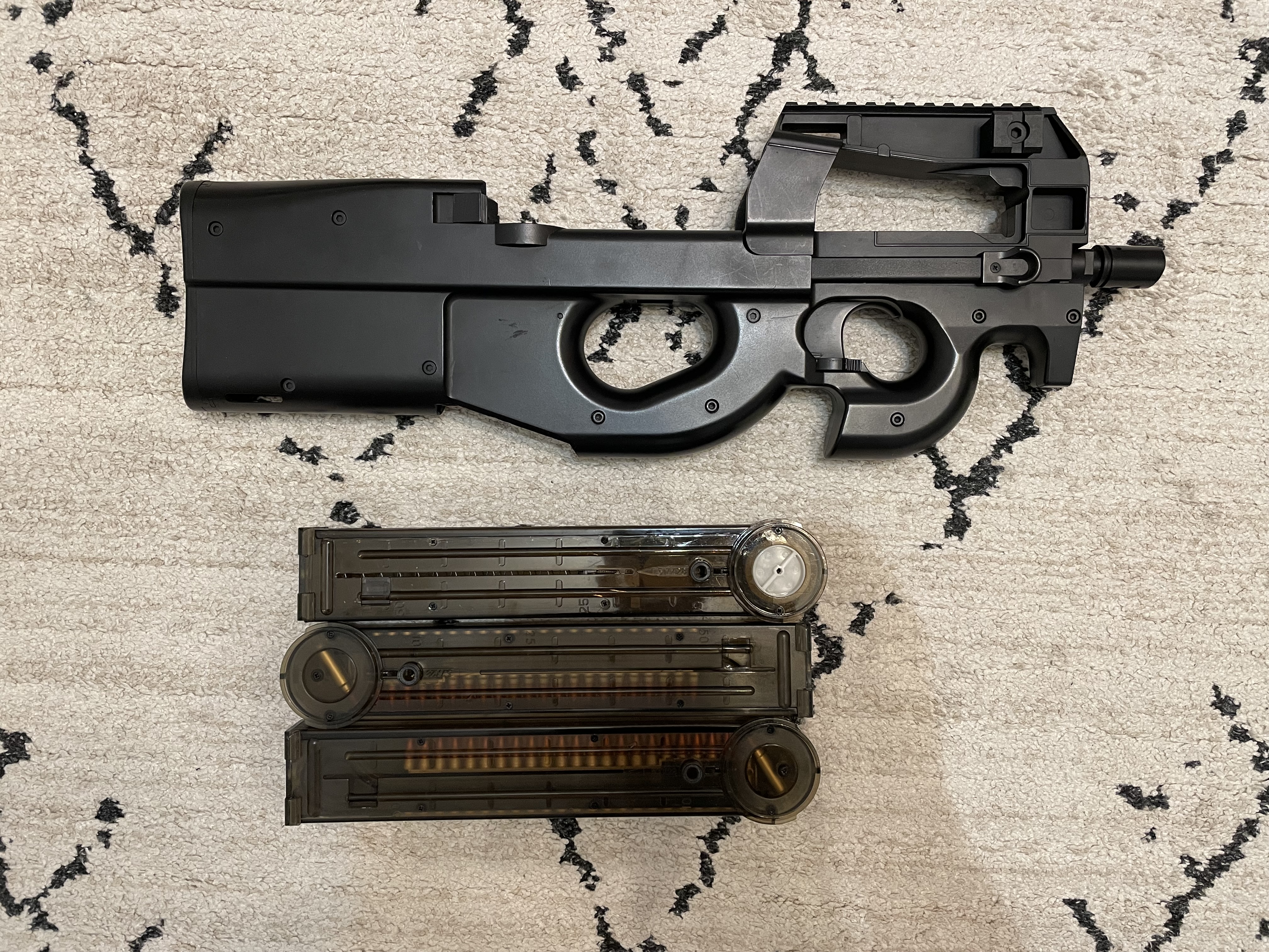 Używana P90 double bell plus dwa magazynki, replika sprawna, dobra do CQB.