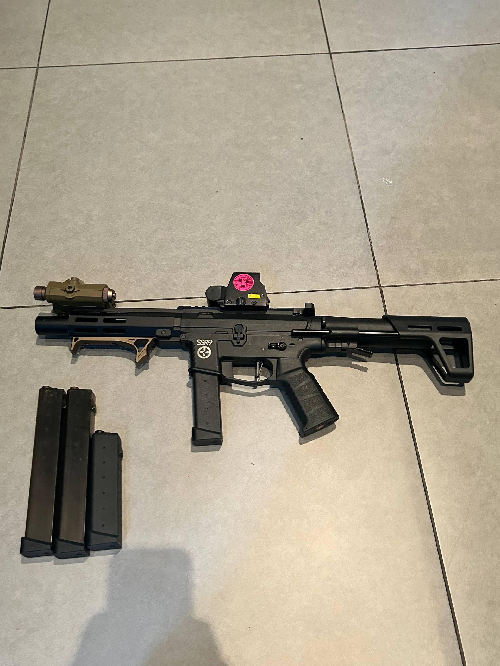 Cześć, mam na sprzedaż karabinek SSR9 DSG. Używałem go sześć razy i nie miałem żadnych problemów. Sprzedaję również moduły. ma 300-328 fps i 36 rps Brighter C Tracer Unit - kupiony za 240 zł. JJ Airsoft Hand Stop M-LOK - Tan, kupiony za 82 zł. Cena z mogazynkami - 930 Cena bez mogazynkow 850 Pozdrawiam