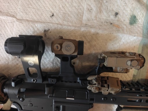 Wszystko sprawne, w pełni działające Zestaw składający się z Vector scrapper 1x22 Powiększalnik G43 Dbal a2, latarka, laser, laser IR Akcesoryjny przycisk do Dbal Montaż Hydra unity Montaż Unity do g43