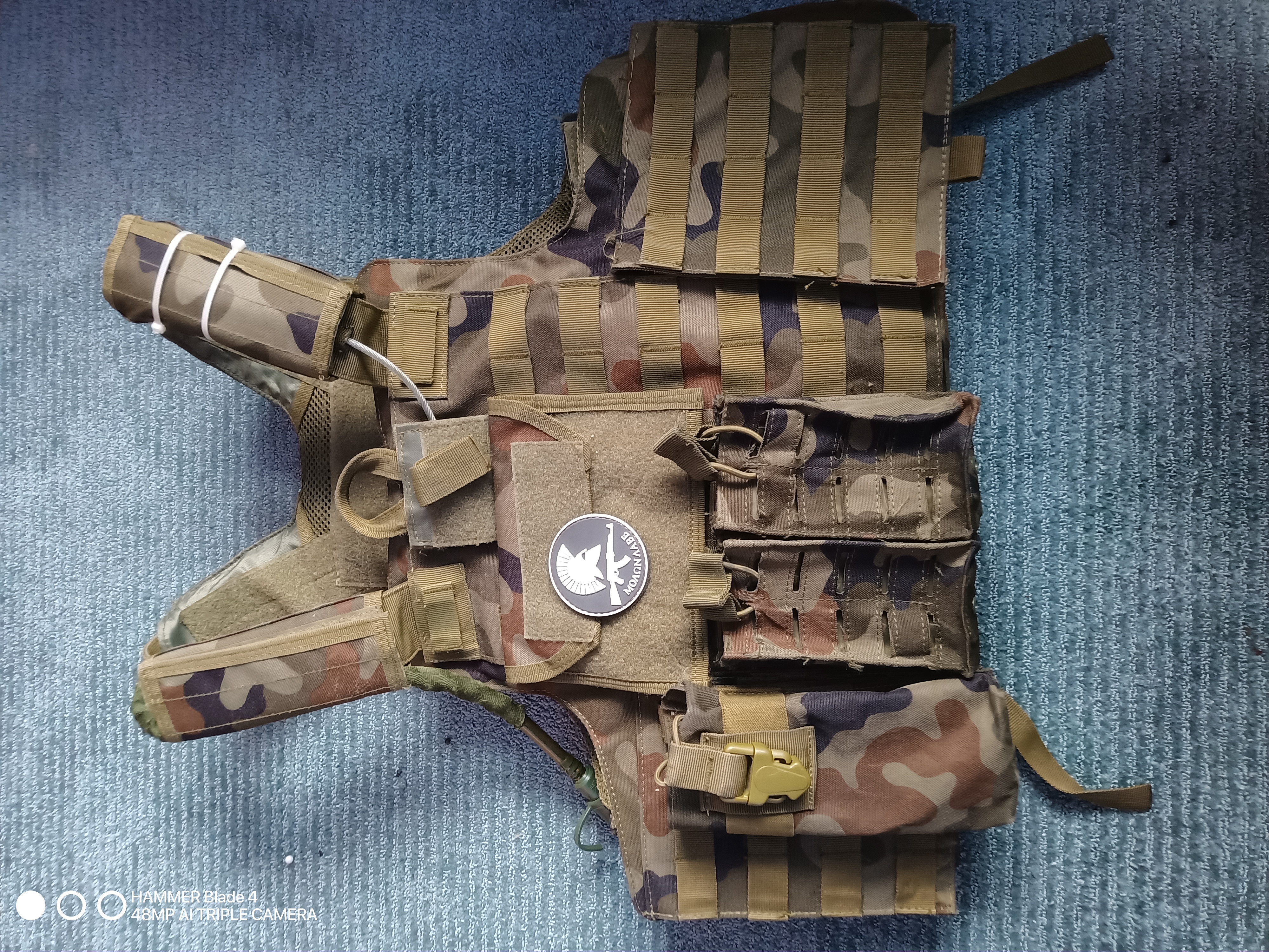 Kamizelka w stanie bardzo dobrym, nie licząc lekkiego naderwania szwów tak jak na zdjęciu, co jednak nie ujmuje jej w funkcjonalności. Cena za przesyłkę ustalana przy zakupie (wg wyceny dostawcy).