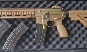 HK 416 GBB RAL8000 z adapterem HPA, wężykiem i butlą HPA