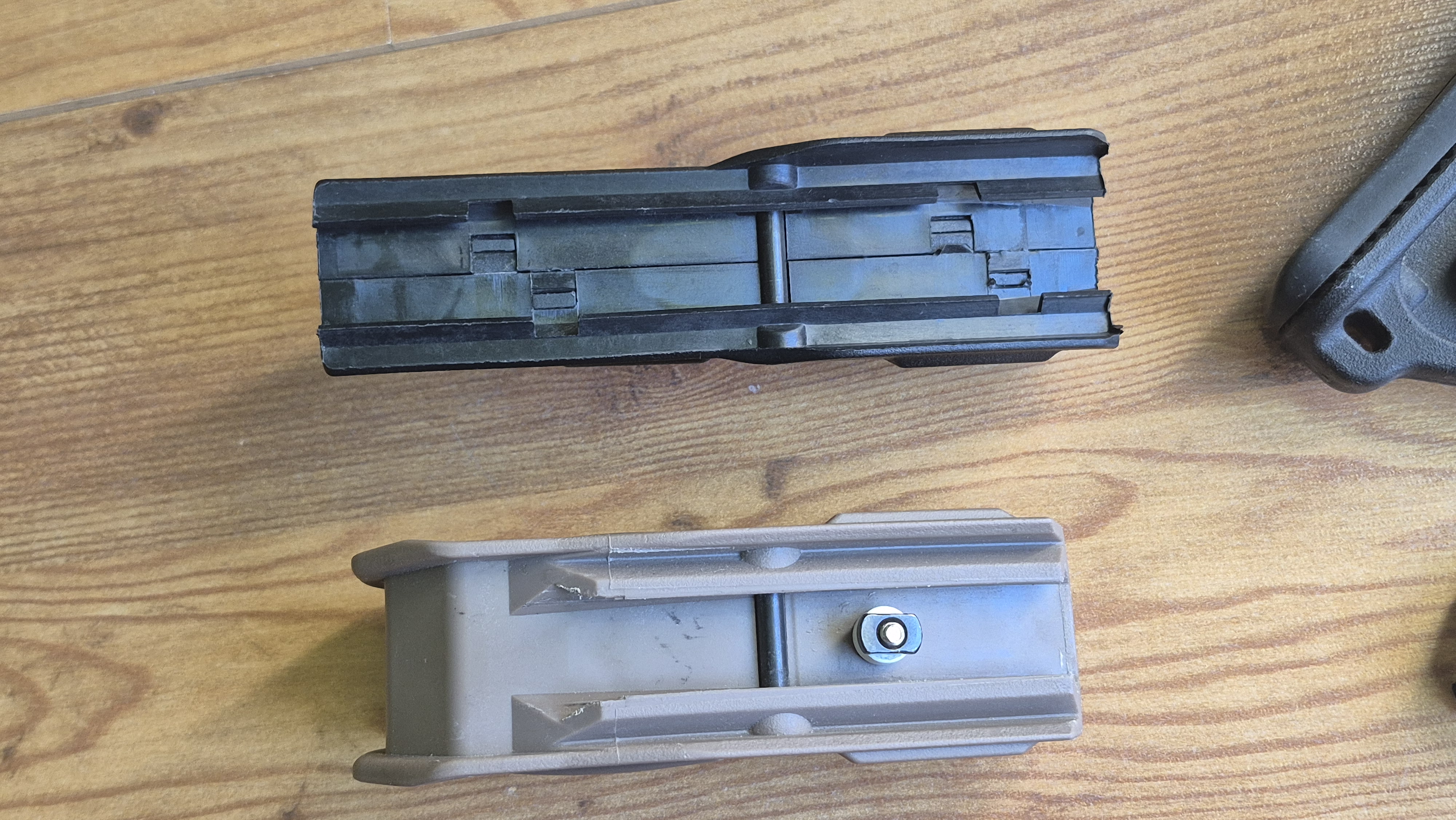 Na sprzedaż trochę zbędnego sprzętu: 1. Kolba Magpul z gumową stopką i dodatkową zaślepką - 200 zł. Pozostałe rzeczy ceny do dogadania, proszę o ofertę: 2. chwyt kątowy na RIS. 3. Chwyt kątowy na RIS, przerobiony by działał też na M-loku. 4. Chwyt pionowy MOE - przerobiony na M-lok, z przyklejonym rzepem do przyczepiania włączników latarek. 5. montaż ris na lufę. 6. Szyna RIS do zamocowania na klasycznym plastikowym łożu M6 lub M16. 7. Zakrywka na kolimator typu Docter. 8. End plate GBB 9. End plate AEG (stal) 10. Oczko zawieszenia na MOE 11. Gwintowana przejściówka (chyba do pistoletów) 14 CCW na 12 CCW. 12. Kątowa szyna RIS. 13. szybka zabezpieczająca optykę. 14. Dźwignia regulacji klasycznych kolb M4. 15. Łącznik magazynków Magpulowych - ma małe pęknięcie.