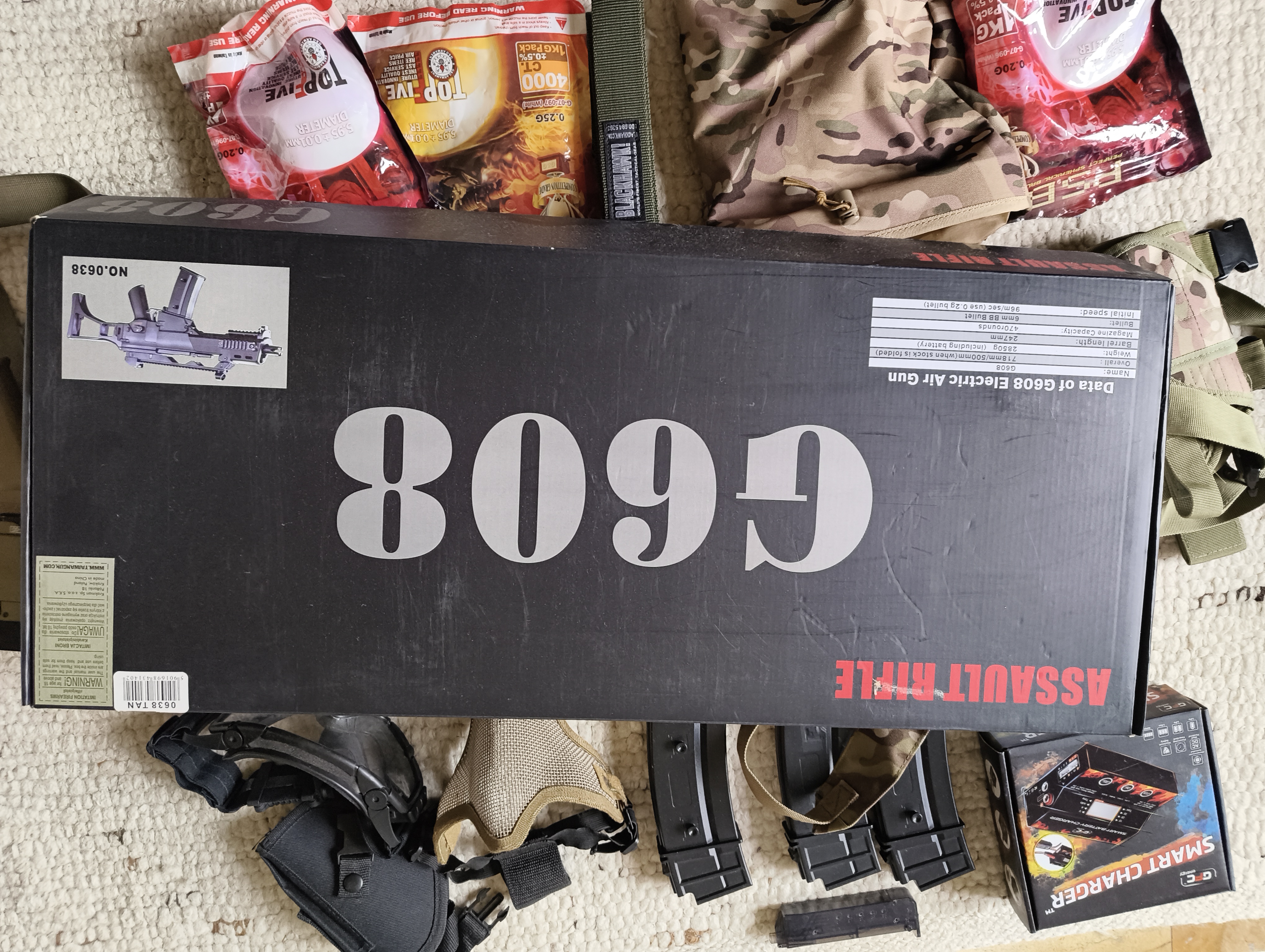 G36C JG - Bogaty zestaw: Ładowarka GFC, 3x Mid, Mechanix, Szpej.