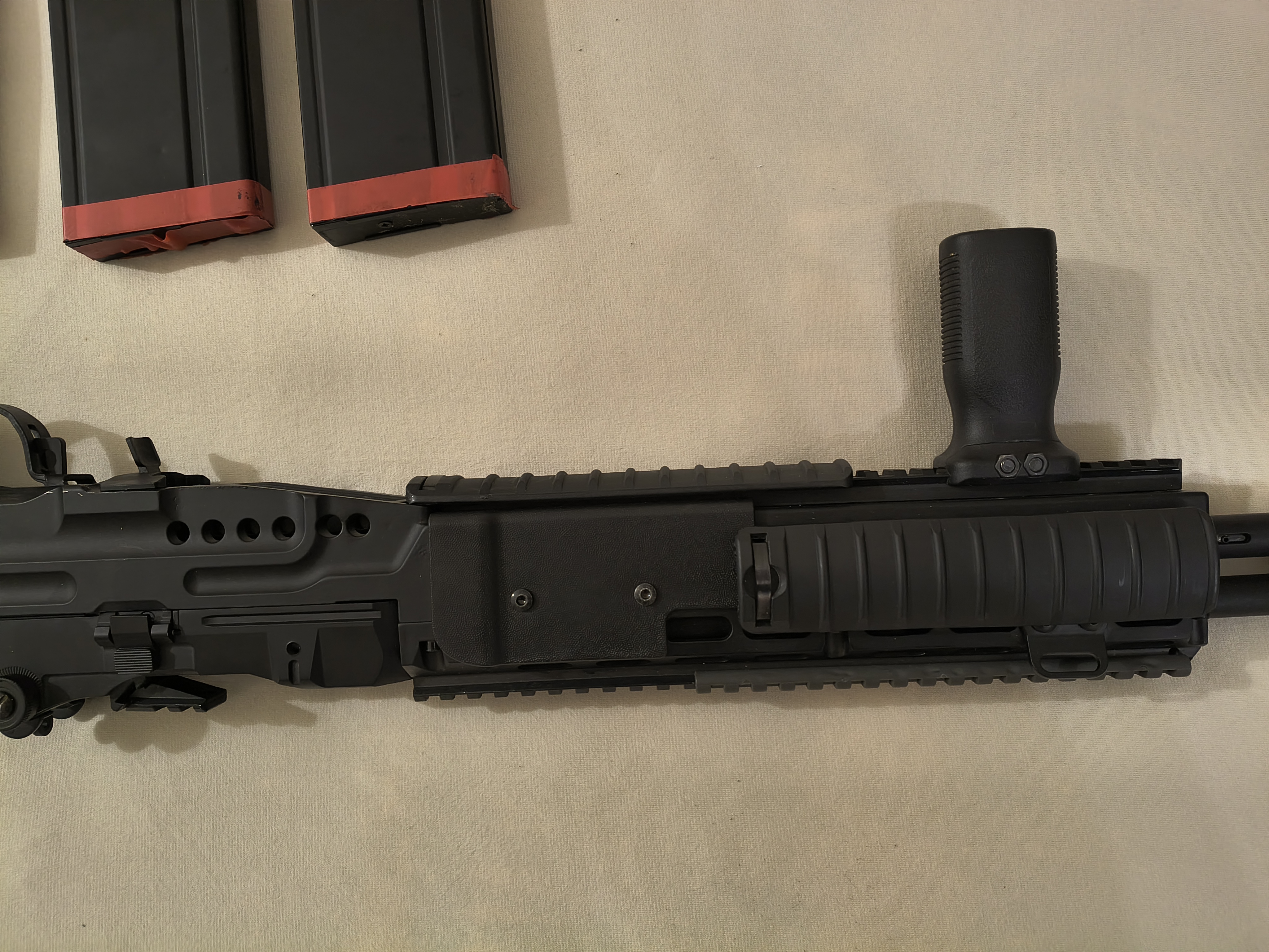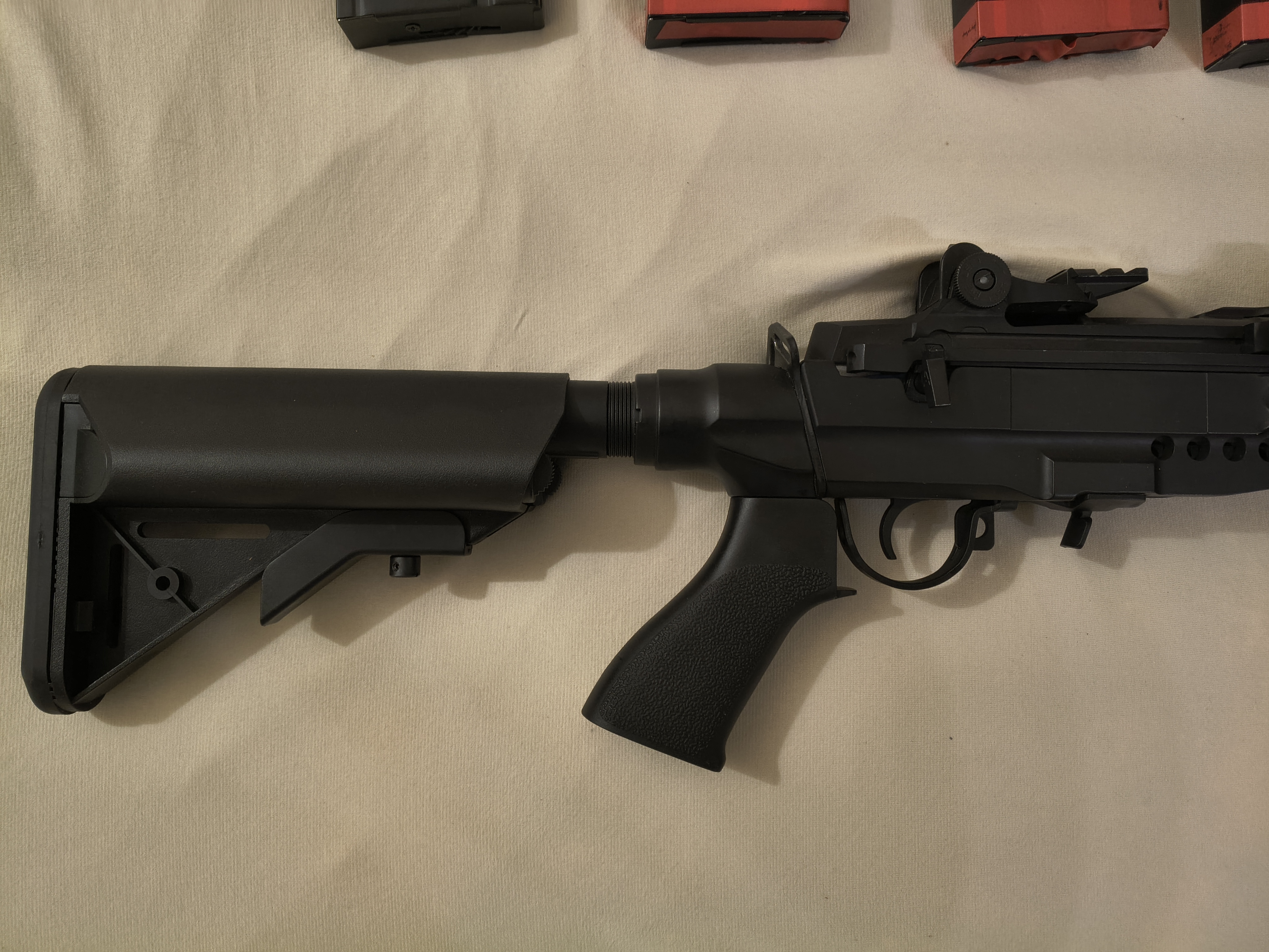 Witam. Mam na sprzedaż replikę M14 EBR od Cymy, replikę kupiłem z myślą zrobienia jej pod DMR jednak z uwagi na brak czasu, zostałem przy mojej głównej replice ta leży w pokrowcu w szafie. Replikę miałem na 4-5 strzelankach przebieg szacuje na ok. 1k-1,5k kulek. Replika posiada ślady użytkowania, drobne przetarcia. Replika stockowa bez żadnych modyfikacji moc ok. 1.2J. Replikę sprzedaję w oryginalnym pudełku. W zestawie sprzedaje 3 magazynki mid-cap, jednen magazynek hi-cap oraz oryginalna bateria nimh i ładowarka do niej, chwyt przedni i okładziny na szyny RIS nie są w zestawie. W razie jakichkolwiek pytań zapraszam do kontaktu. Możliwość wysyłki lub odbiór osobisty w Krakowie lub okolicach.