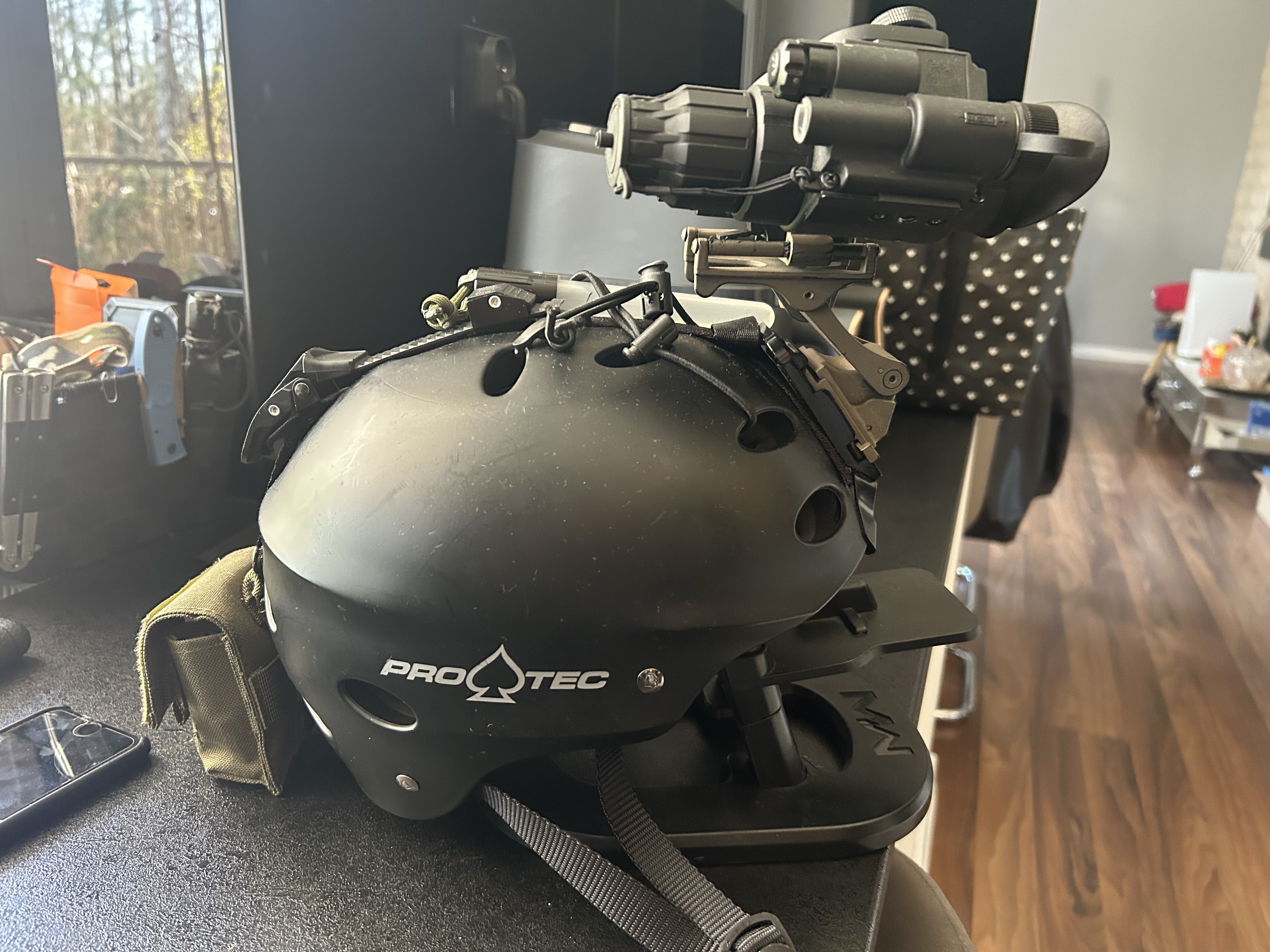 Witam na sprzedaż posiadam monokular noktowizyjny Pulsar Challenger GS 1x20. Jest to jeden z najlepszych i najnowszych noktowizorów analogowych 1 generacji +. Posiada największe pole widzenia, brak powiększenia i brak opóźnienia (przeciwnie do konkurencyjnych Nvg cyfrowych). Przetwornik obrazu czysty bez plam, stan sprzętu BDB. Zasilanie bateria cr123 3V (w zestawie). Wbudowany doświetlacz IR dobrej jakości (noktowizor w pełni księżyca pozwala widzieć lepiej niż gołym okiem bez doświetlacza, w trudniejszych warunkach wymagane użycie IR). Do noktowizora dodaje zestaw montażu aluminiowego żurawia typu RHINO wraz z solidnym j-arm- istnieje możliwość zamocowania do do kasku/hełmu (kask widoczny na zdjęciach mogę dodać za dodatkową opłatą). Noktowizor polecam do chodzenia po terenie w nocy (kompaktowy zestaw mieści się w plecaku) lub do gier ASG w połączeniu z dobrym kolimatorem lub laserem IR oraz dodatkowym doświetlaczem IR dalekiego zasięgu na karabinku.