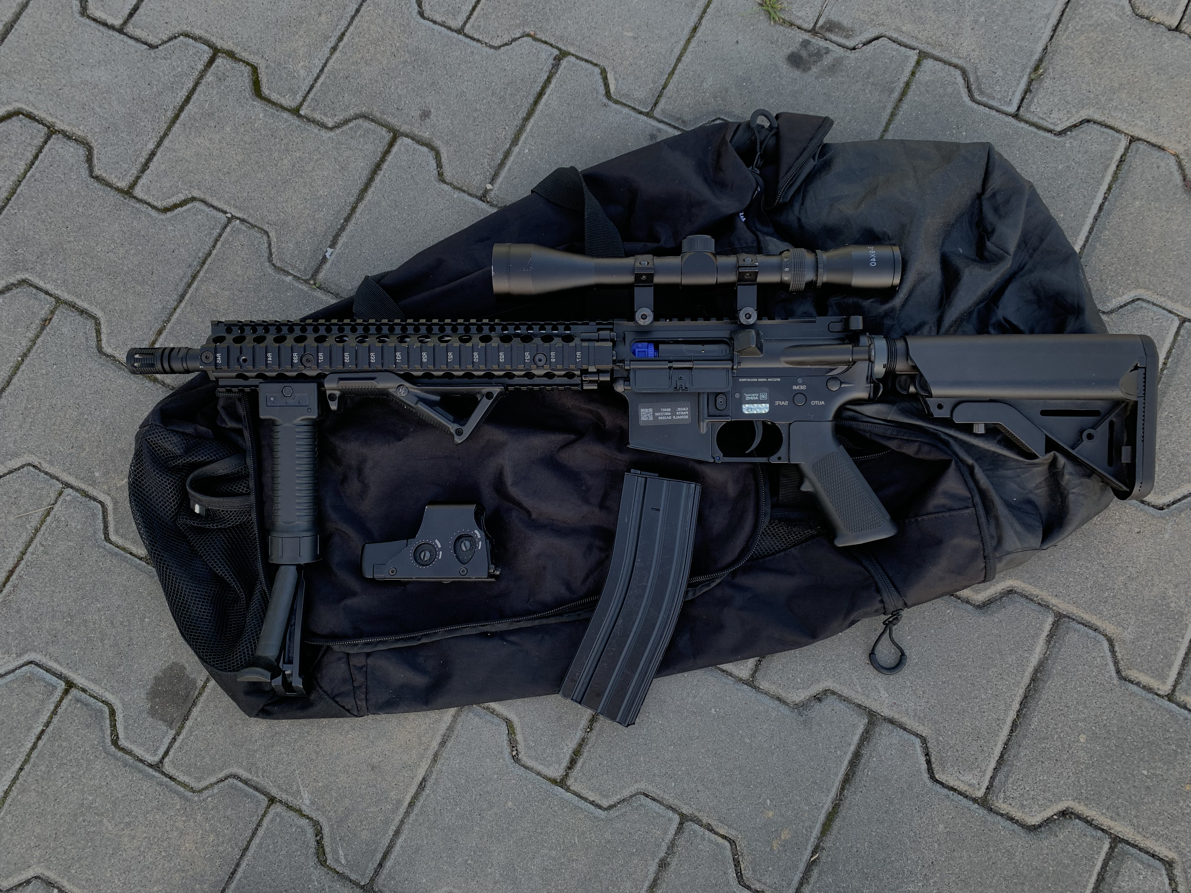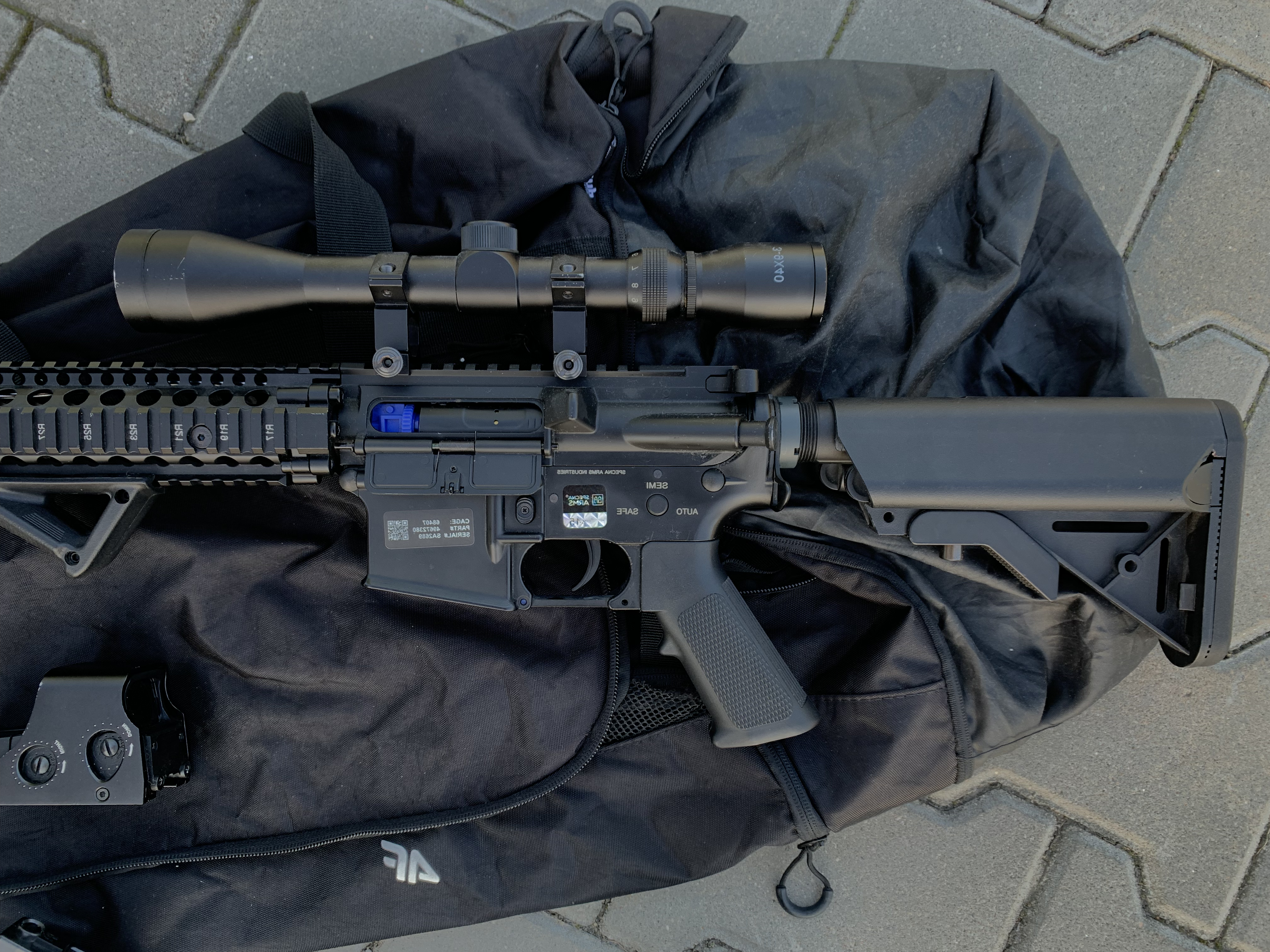Sprzedam zestaw gotowy do gry – replikę Specna Arms SA-A20 z serii ONE™ w stanie bardzo dobrym. Replika sprawna, używana tylko kilka razy, brak uszkodzeń - pojedyncze zarysowania. Egzemplarz nie był modyfikowany, ani nikt nie grzebał w środku. Korpus full metal (stop cynku i aluminium, anodyzowany), bardzo dobre spasowanie elementów. Ten konkretny model jest już niedostępny w sprzedaży (ostatnia cena katalogowa na Gunfire to 1299,99 PLN za samą replikę bez akcesoriów). W zestawie – Replika SA-A20 ONE™ + dodatkowa sprężyna (fabryczna) – Akumulator LiPo 7,4V 2000mAh 15/30C – 2-modułowy (od Specna Arms) – Ładowarka mikroprocesorowa z balancerem LiPo – Celownik kolimatorowy Holo MOD.8 – Luneta 3-9x40 – 2x stalowy mid-cap 200 kulek – 1x metalowy hi-cap 300 kulek (oryginalny z repliką) – 1x polimerowy mid-cap – Chwyt pionowy Grip Pod + chwyt kątowy – Szybkoładowarka na 150 kulek – Kulki Specna Arms Precision 0,25g 0,5 kg Szczegółową specyfikację techniczną repliki znajdziesz na stronie Gunfire (kod produktu SPE-01-013239).