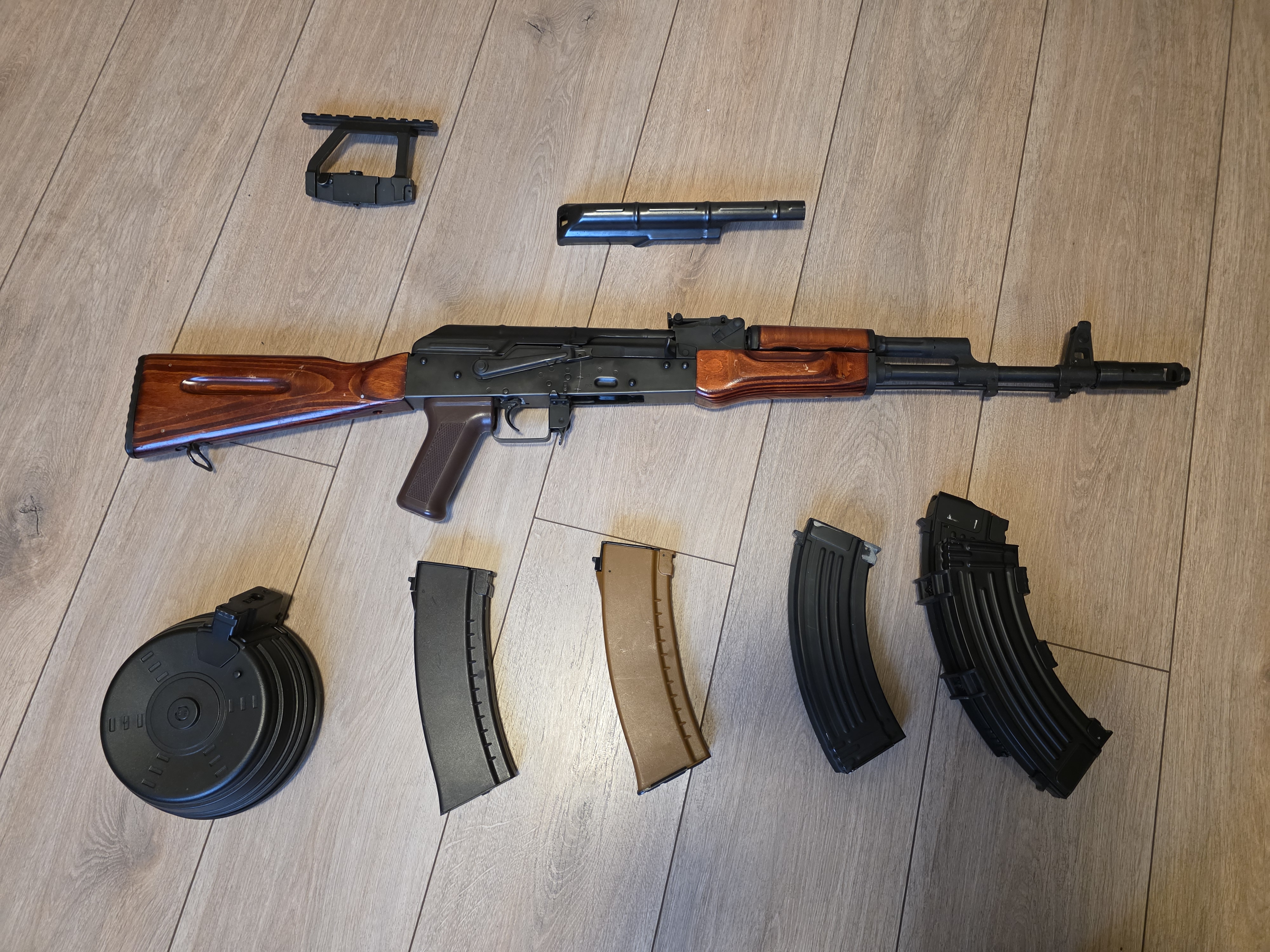 Sprzedam ak74 nv od LCT Replika w pełni sprawna, wsadzona roatycjyna komora hop up, prawdopodobnie była wymieniana też lufa i gumka. W zestawie 3 midy, hi cap i bęben elektryczny (bez baterii), jaskółka i druga pokrywa zamka. Możliwość odbioru osobistego w Katowicach. Cena do negocjacji Tel 720787509 Fb Mikołaj Zduniak
