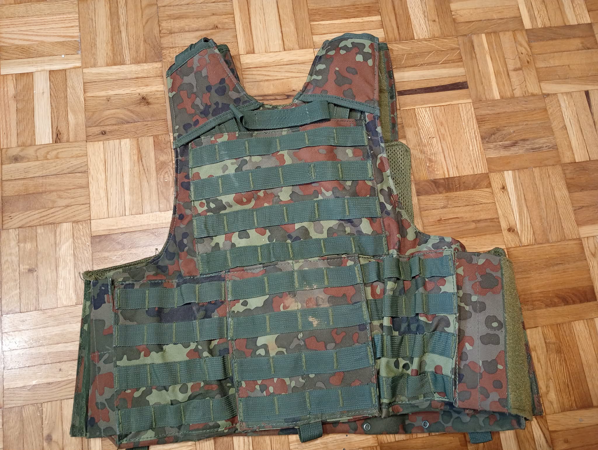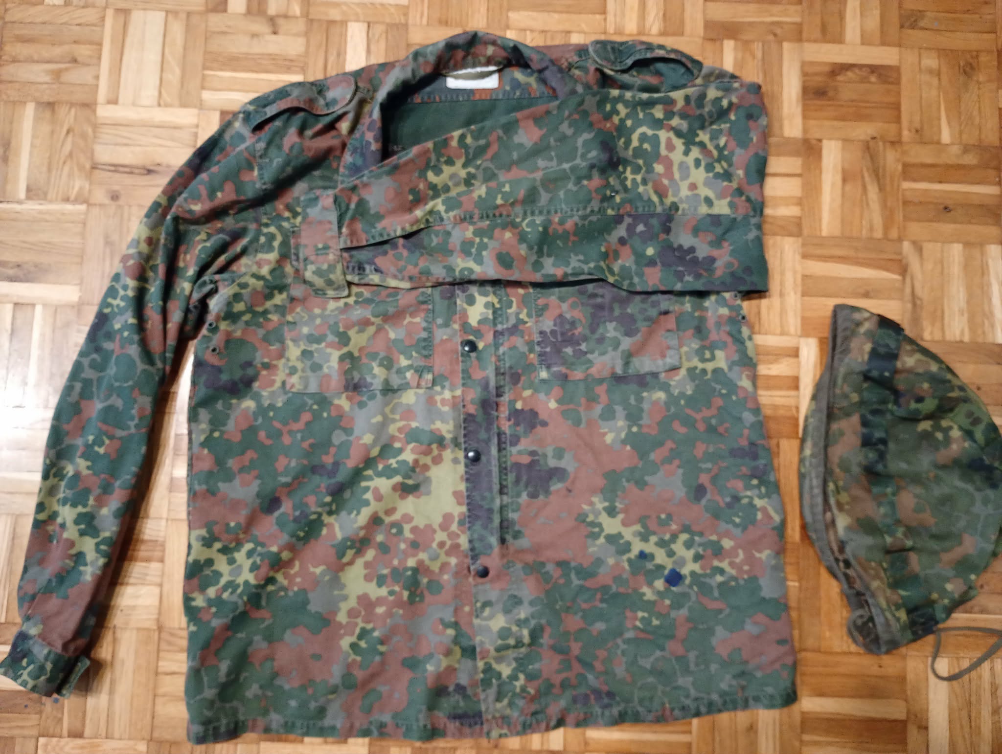 Prawie kompletny mundur we flecktarnie, rozmiar L. Brakuje tylko spodni i rękawiczek, wszystko zadbane, nitki się nigdzie nie ciągną, rzepy się lepią