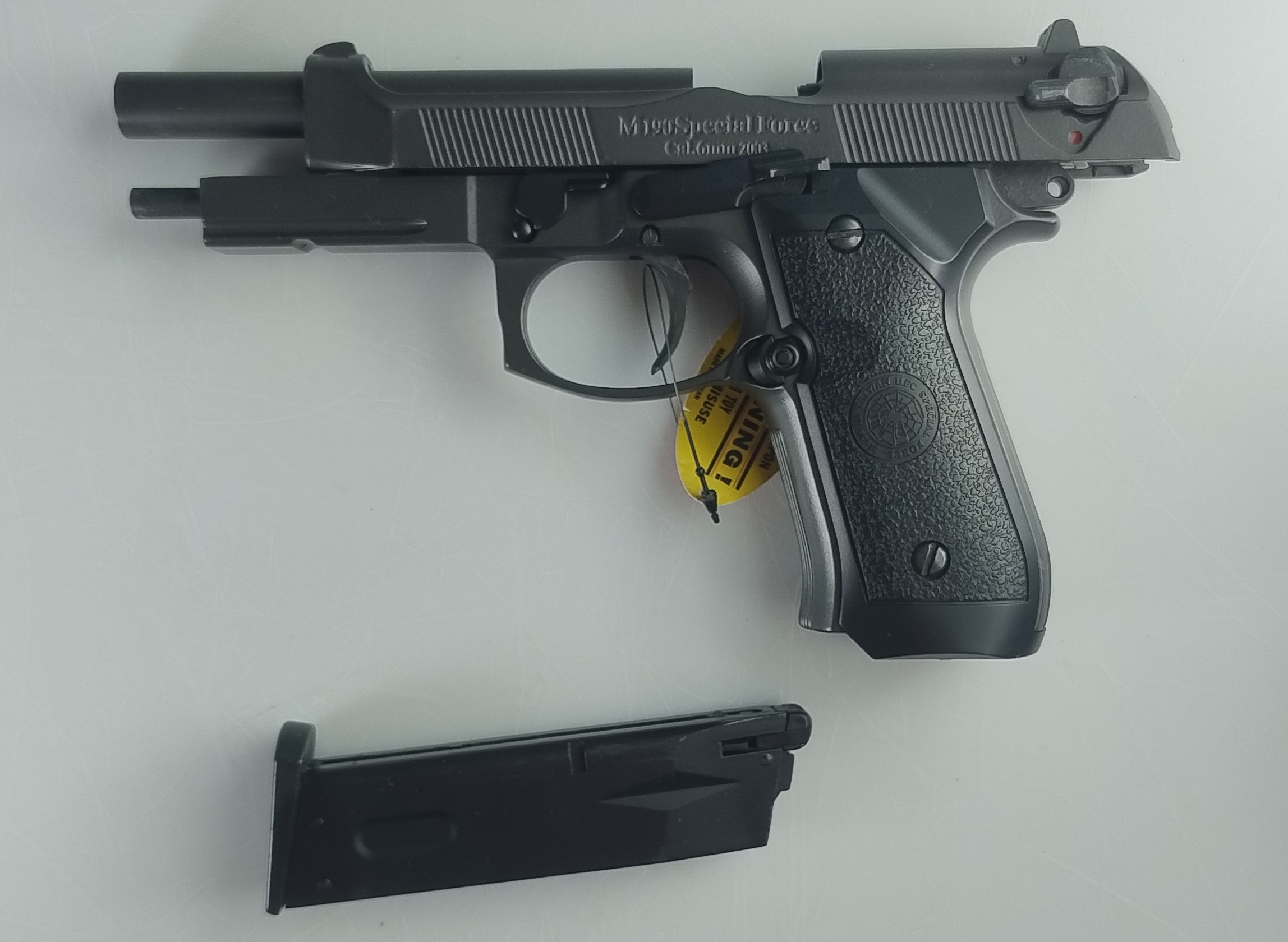 Wizualnie BDB, Strzela. Czasami wymaga dobicia maga, ale potem podaje ładnie. Replika wzorowana na berettcie M9, którejs wersji, bo chyba to nie jest dokładnie M9, M92 ani m92F. W airsofcie się sprawdzi, bo strzela i daje fajne wrażenia ze względu na wykonanie i ciężar. Odbiór osobisty we Wrocławiu, Nysie lub środzie śląskiej. Filmy z działania pod linkiem: https://drive.google.com/drive/folders/1ipv5iLg0zjgHkgCxLOoPb6ltZXVYGqlU?usp=drive_link