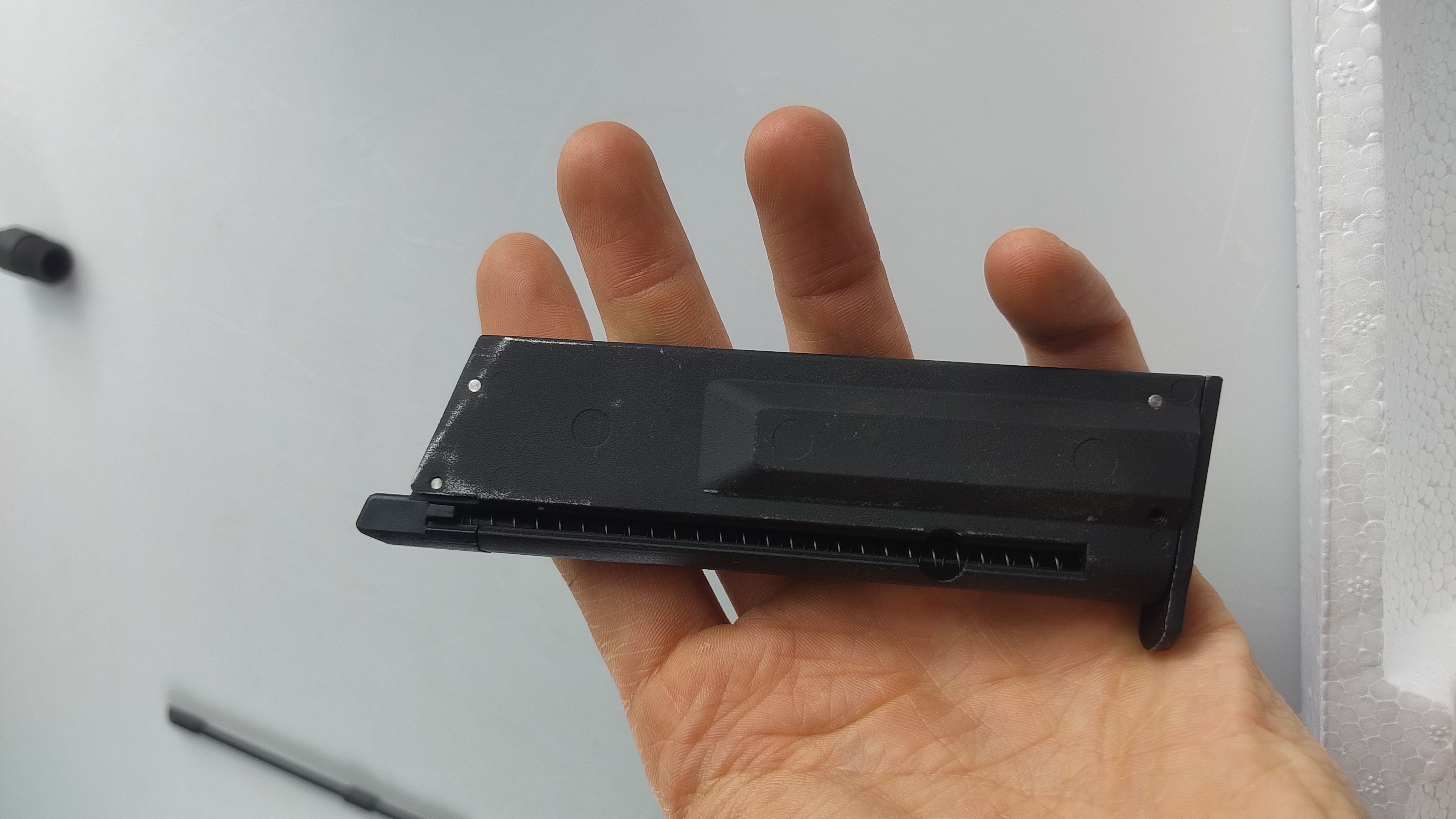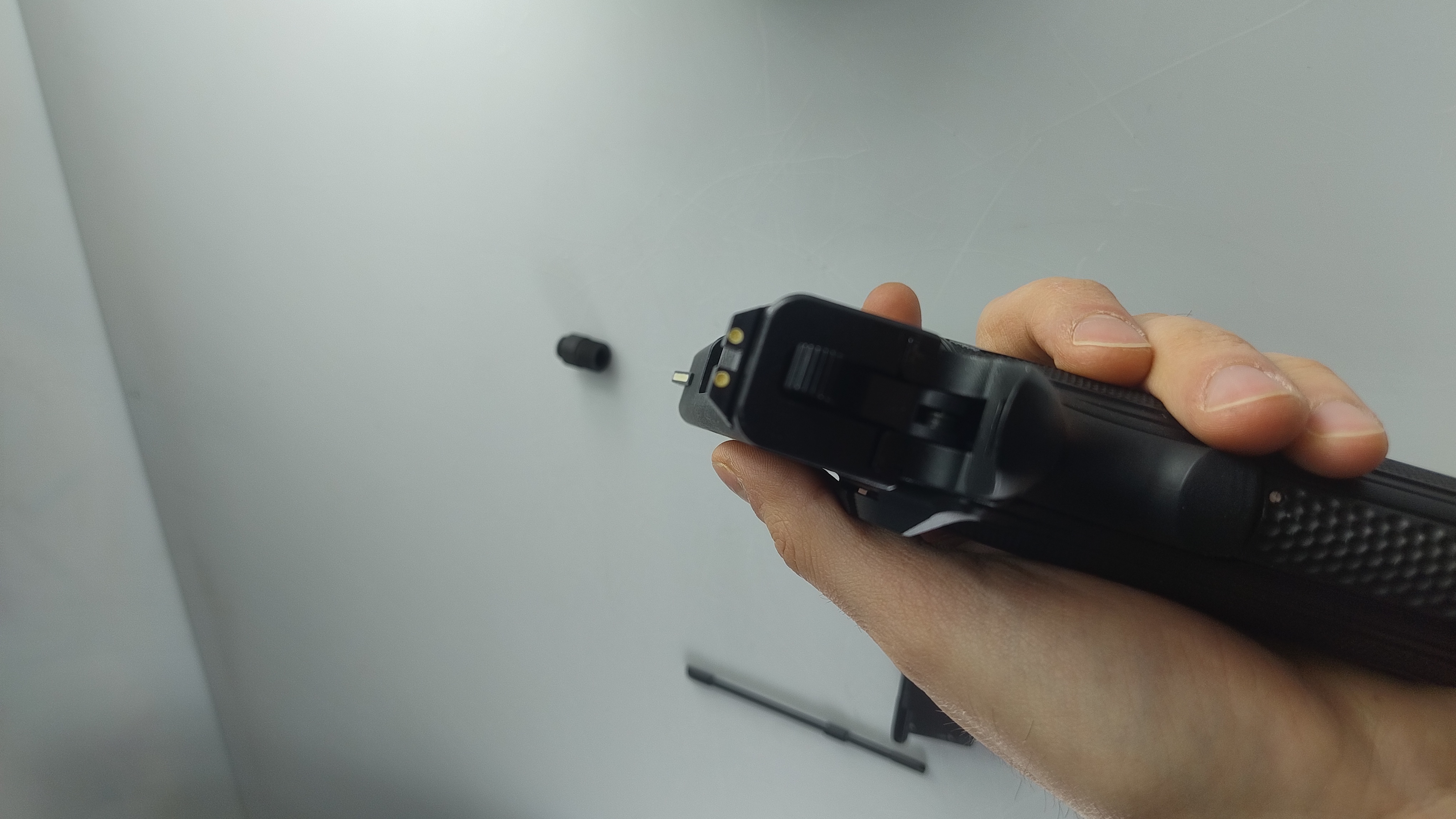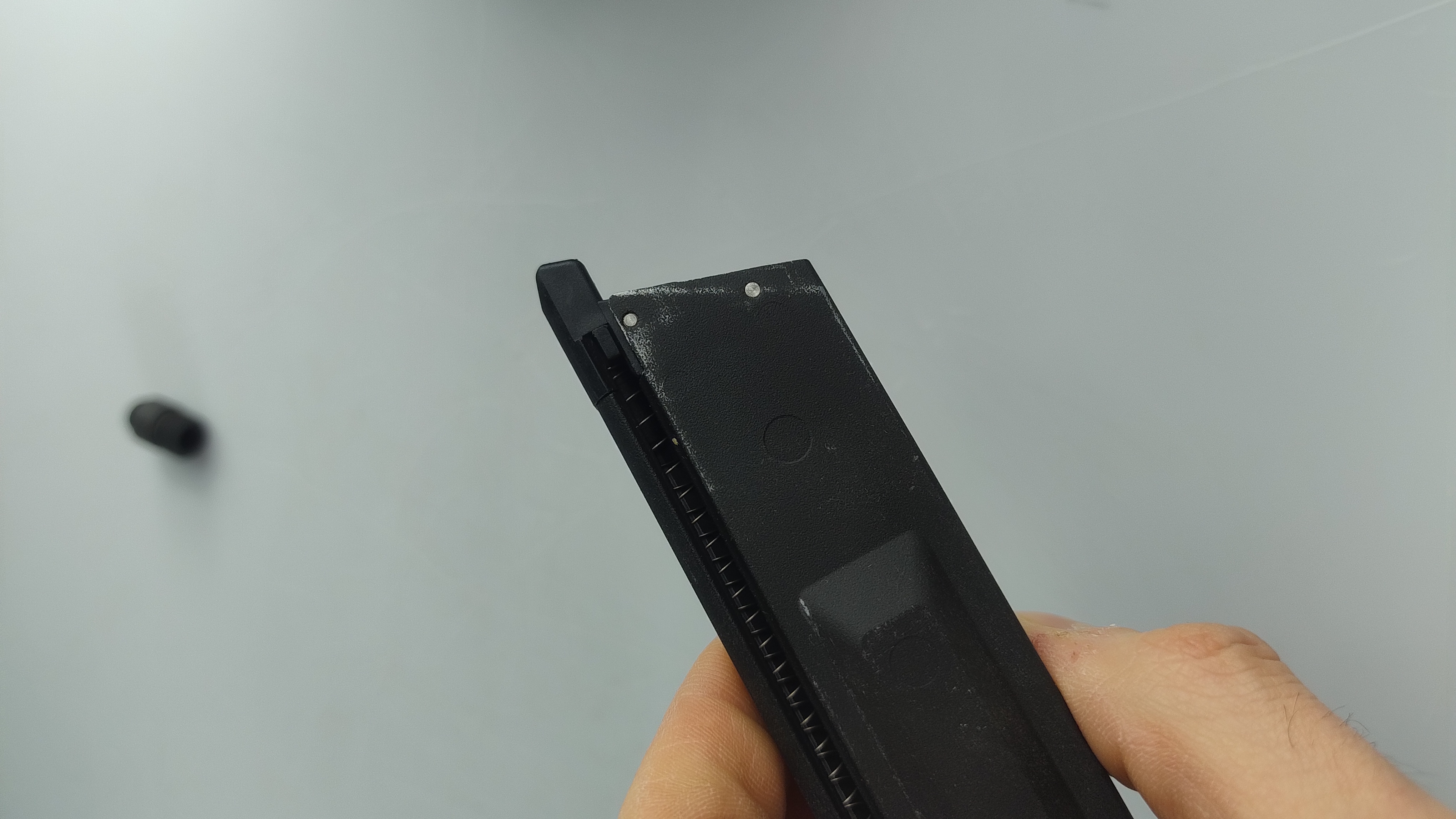 Magazynek szczelny, niska wydajność. Gdzieś może puszczać na połączeniu pistolet - magazynek. Widać na filmie: https://drive.google.com/drive/folders/1micuTrnso8qrH3xD1ncMXTTwxUfZ1oiT?usp=drive_link
