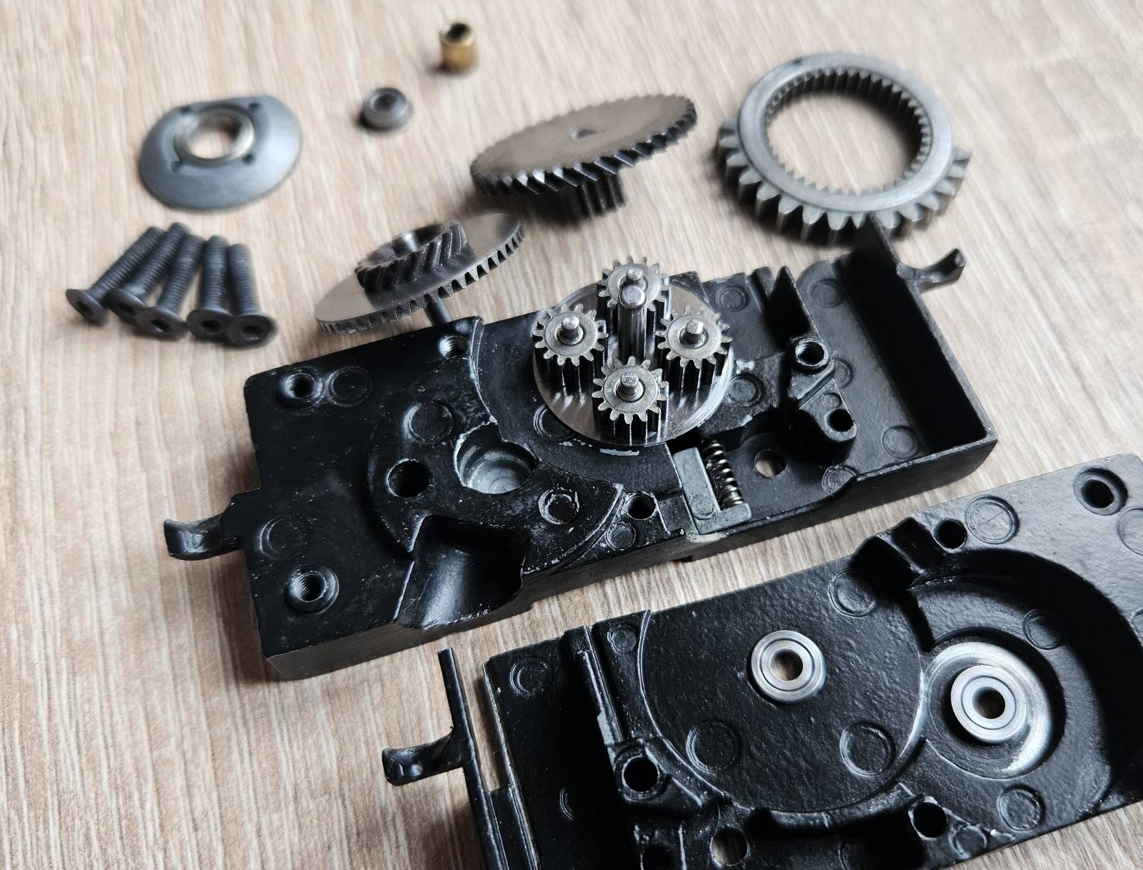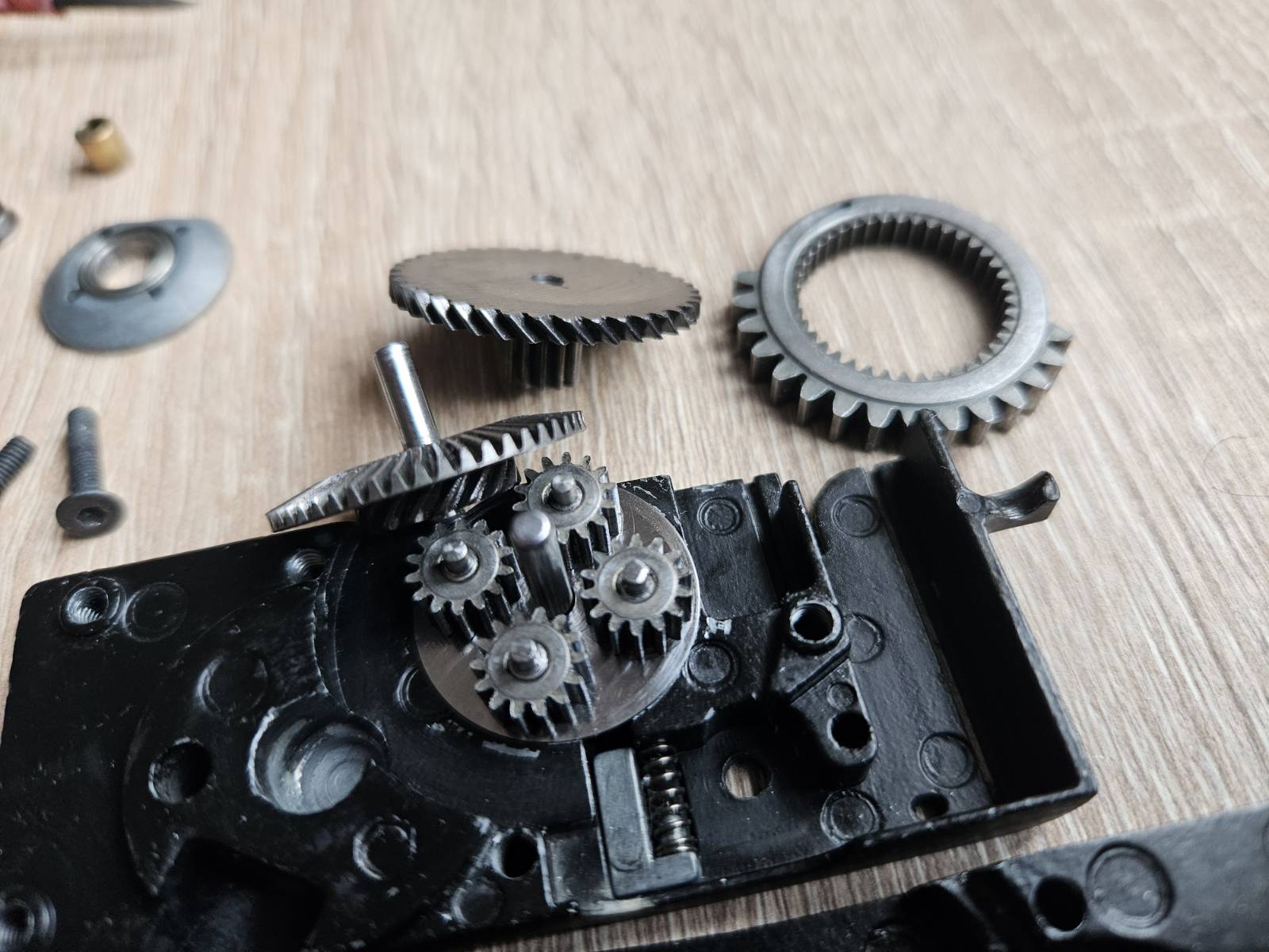 Nie wiem jakiej firmy, stan dobry. Zęby niewytarte, stalowe, solidne, helikalne. Łożysko centralne bdb, pozostałe (te małe na osie) mają już lekkie luzy.